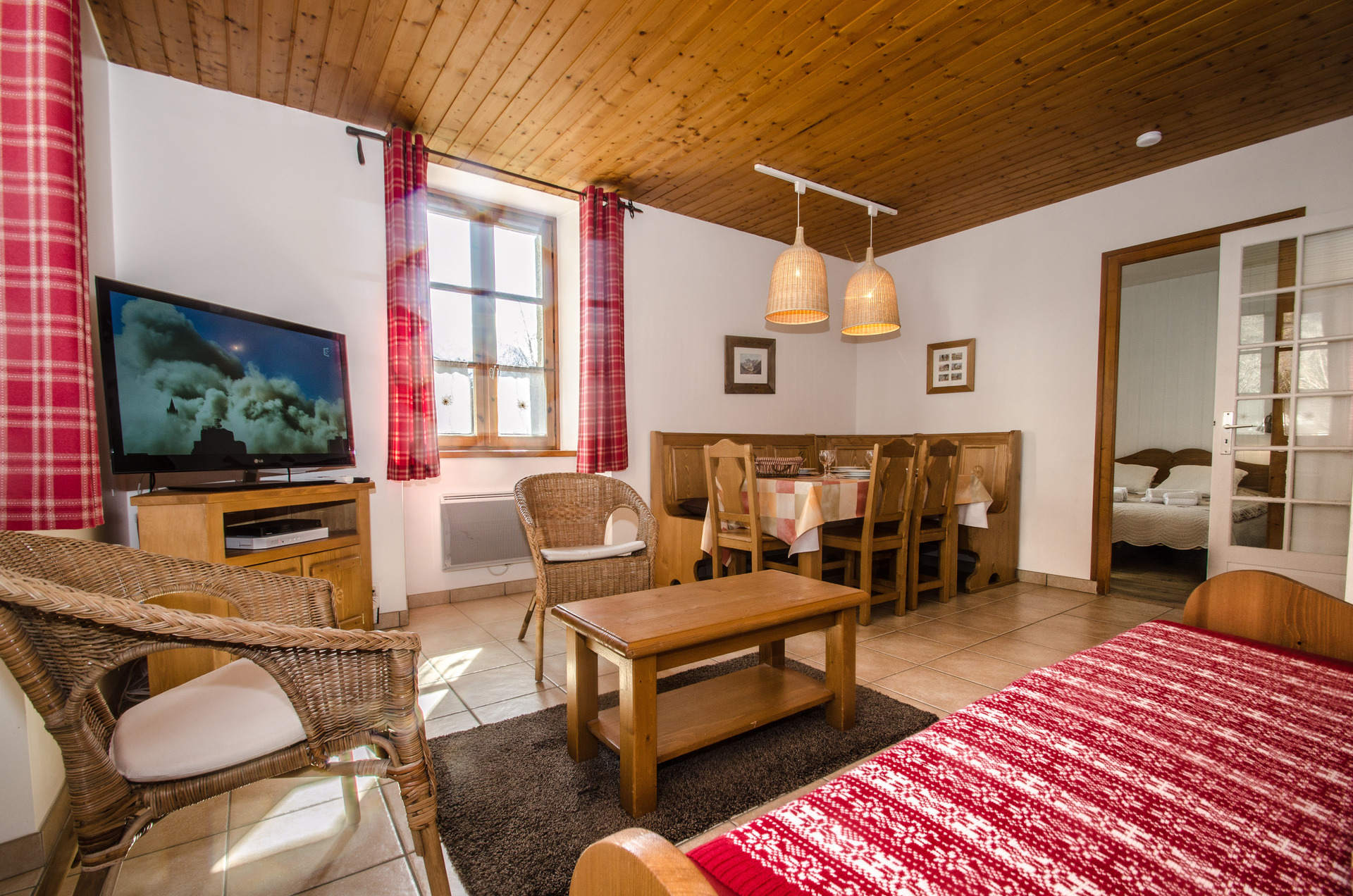 - Salon, salle à manger avec TV et lecteur DVD