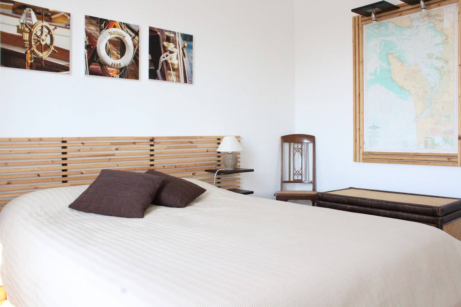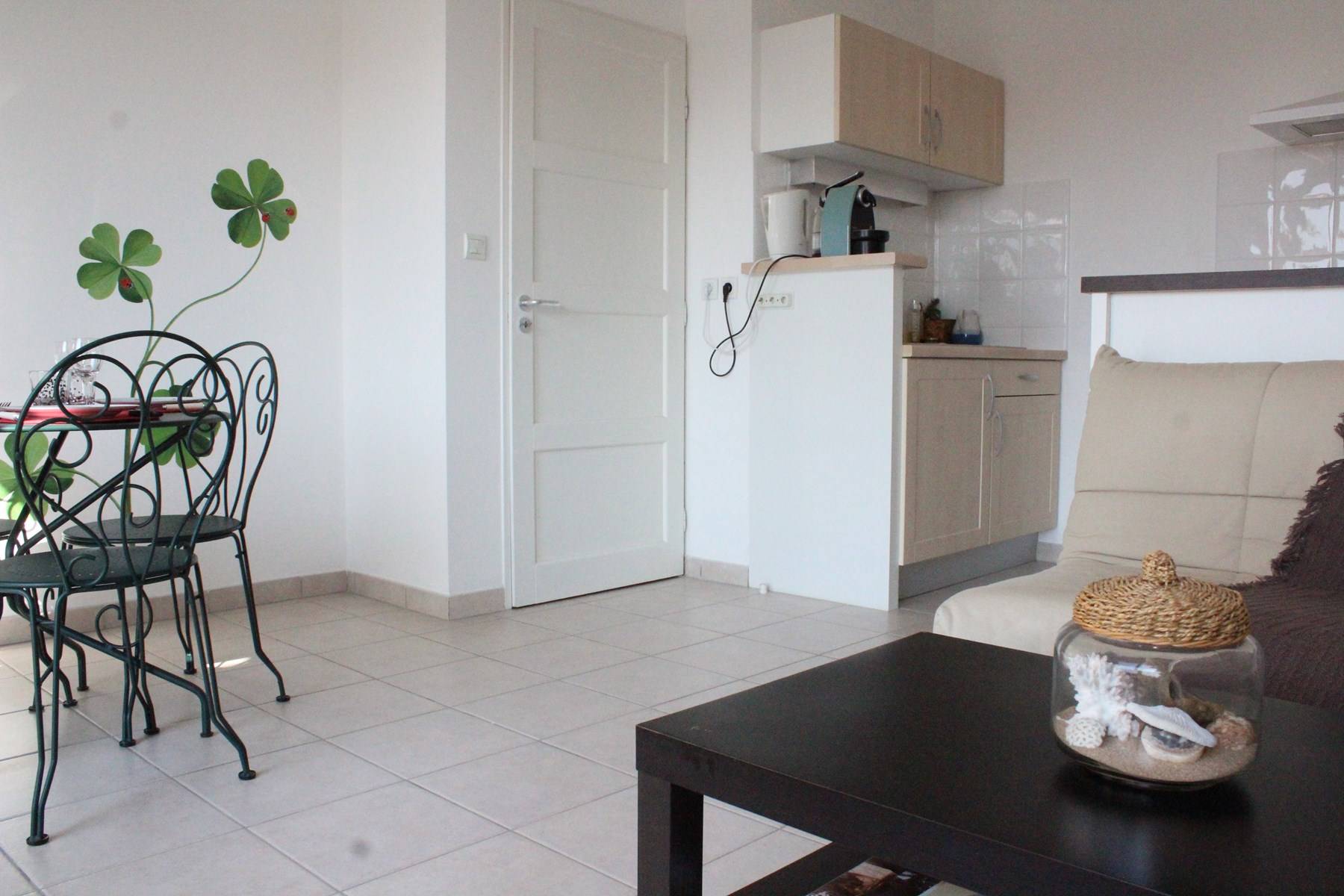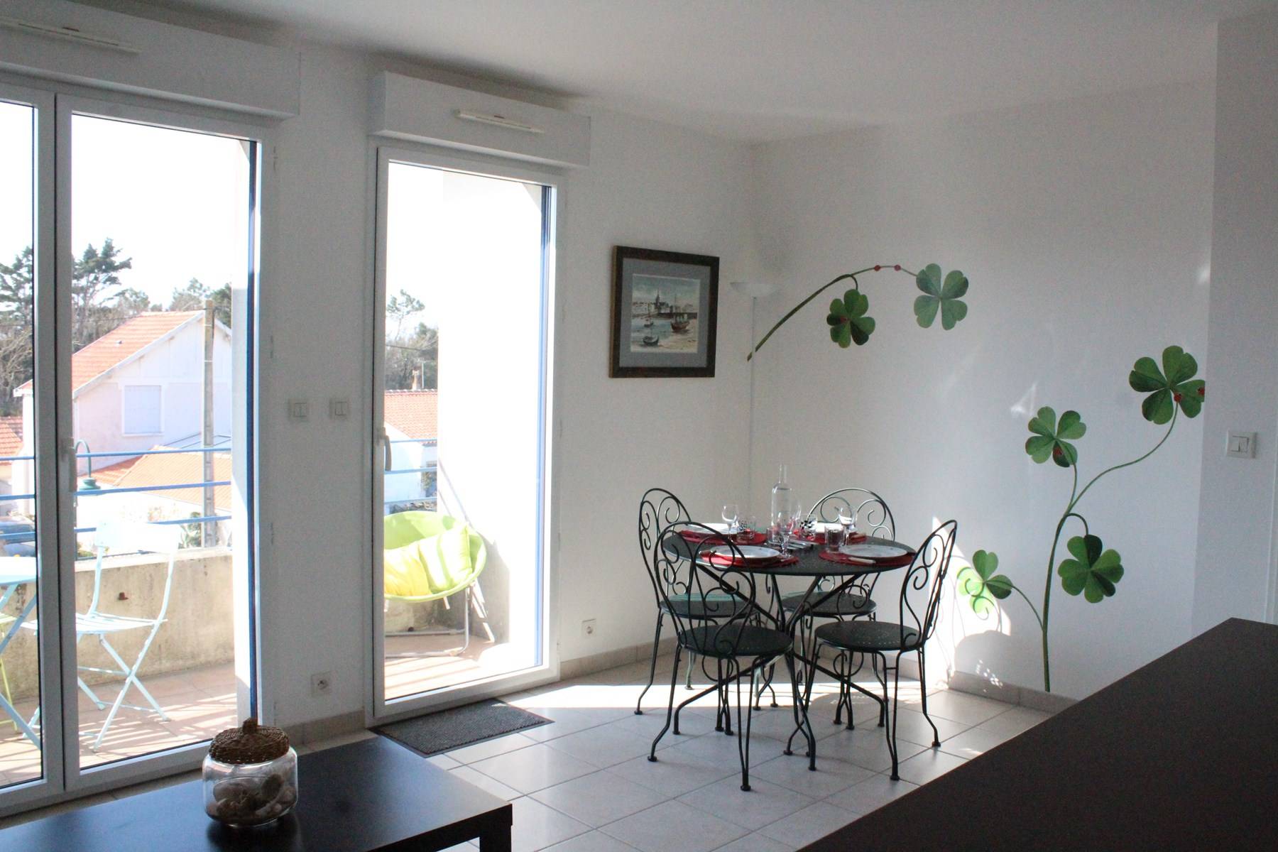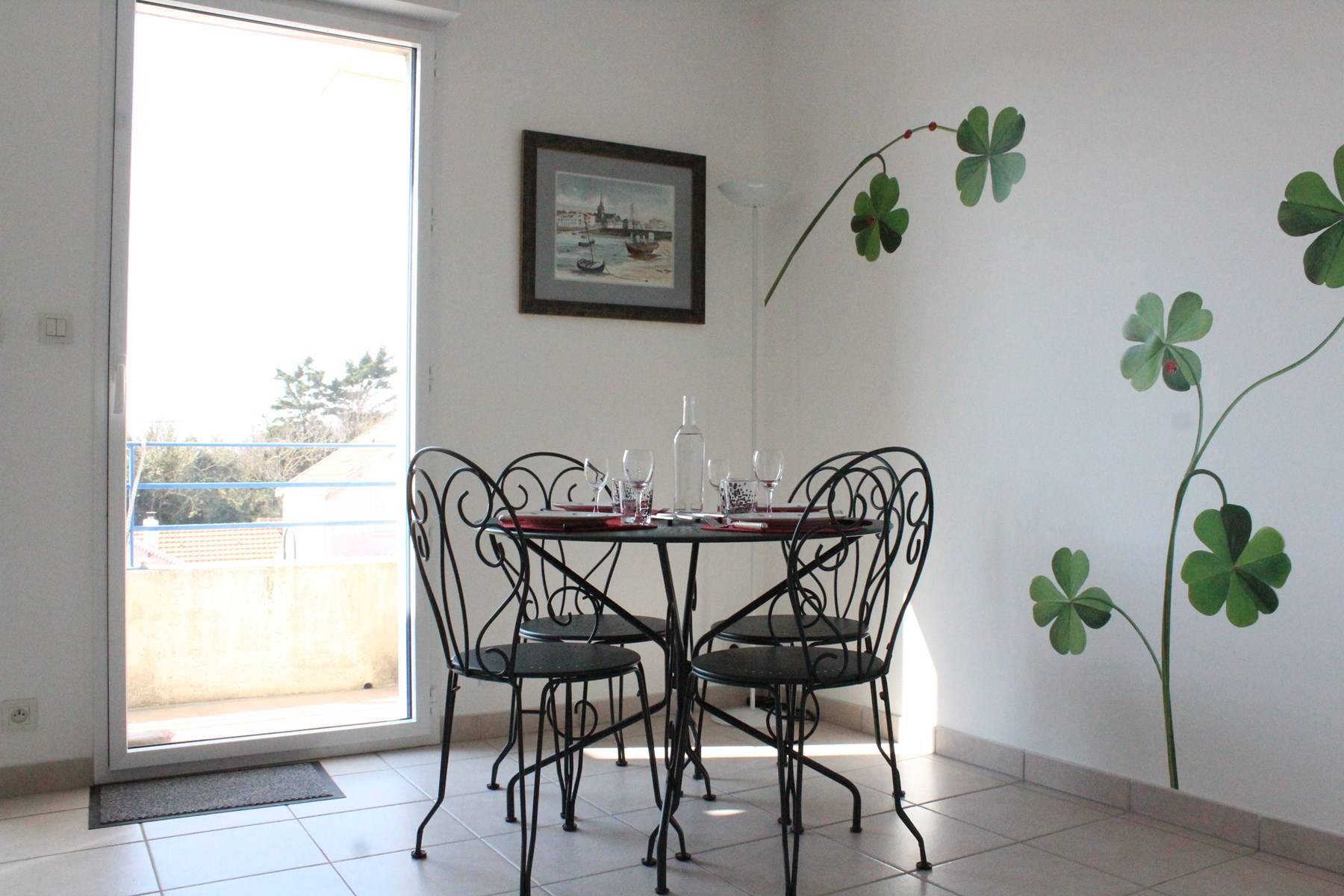 Il est au deuxième étage et se compose d'une entrée avec placards, d'un séjour avec un canapé et télévision, d'un coin cuisine équipé, d'une salle d'eau avec WC et machine à laver, un balcon ensoleillée avec salon de jardin, une chambre avec un lit en 140cm offrant un couchage pour 2 personnes. Remise et retour des clés sur La Rochelle.