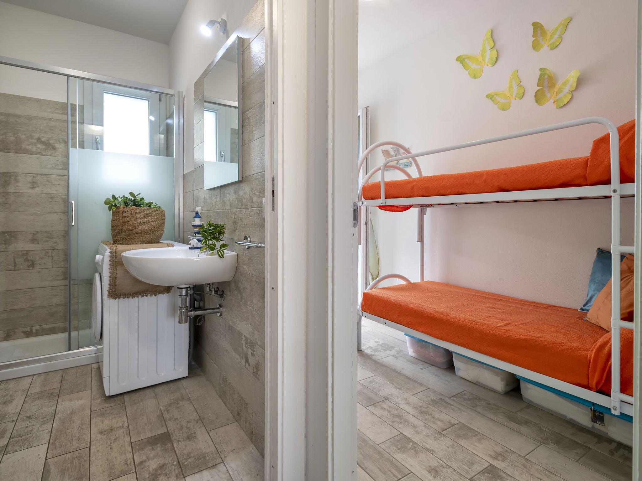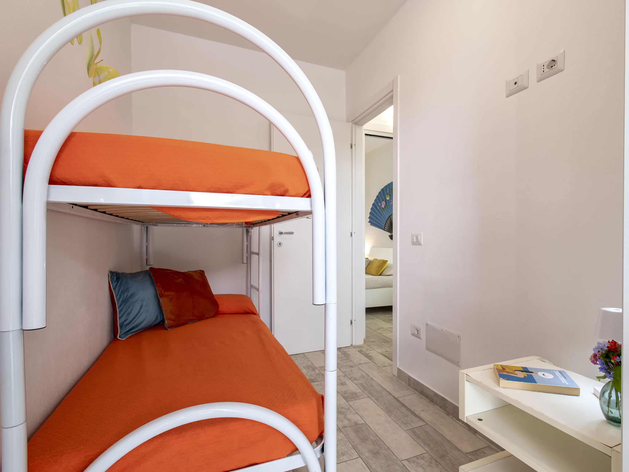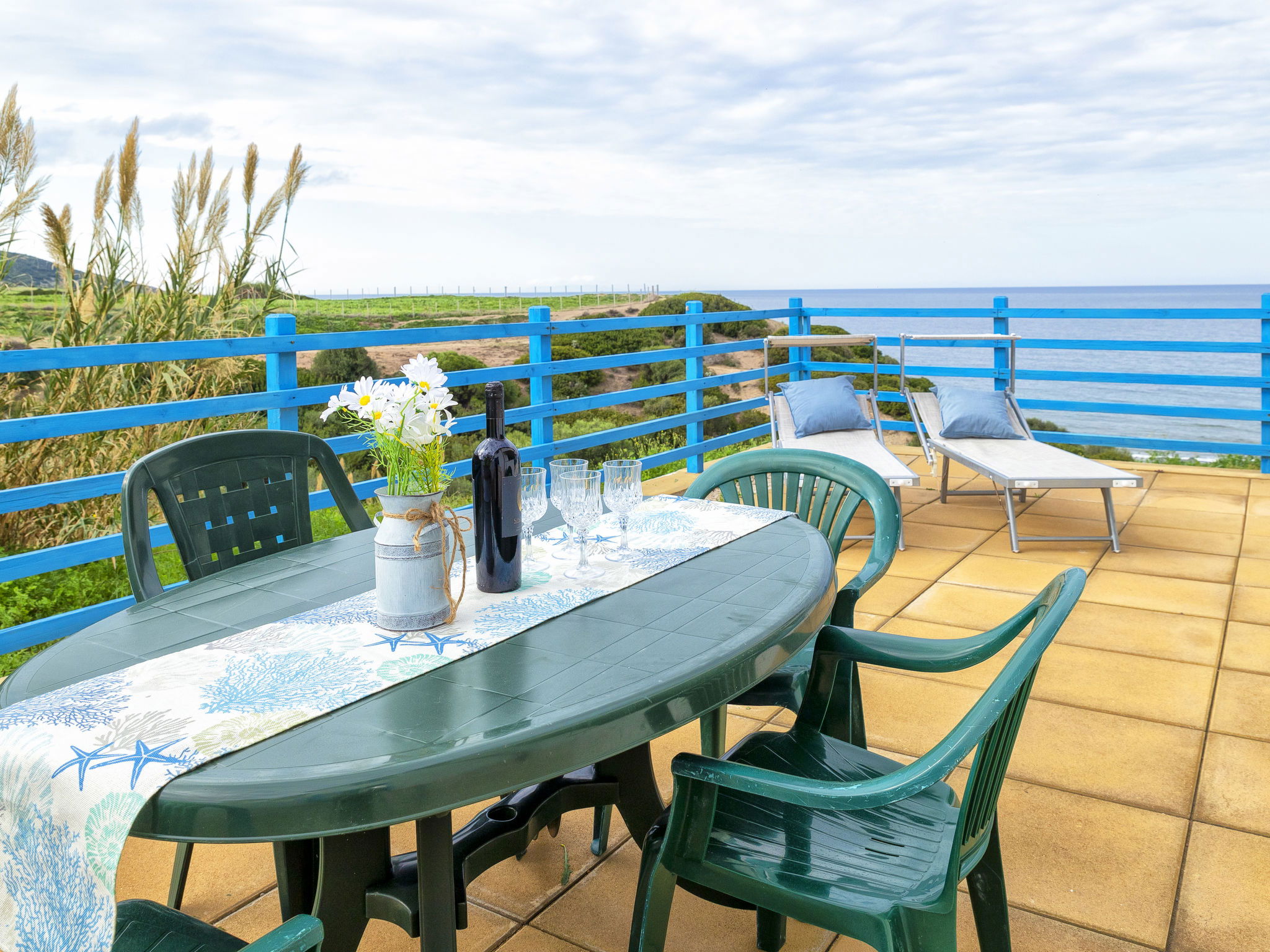 Appartement de 3 pièces 60 m2. Aménagement moderne et plaisant: séjour/salle à manger avec 1 divan-lit et TV (satellite) (écran plat). Sortie sur la terrasse. 1 chambre double. Sortie sur la terrasse. 1 chambre avec 1 x 2 lits superposés. Sortie sur la terrasse. Coin cuisine (4 plaques de cuisson, four, lave-vaisselle, grille-pain). Douche/bidet/WC. Air-conditionné, chauffage à air chaud. Grande terrasse partiellement couverte. Meubles de terrasse, chaises longues, place pour s'asseoir. Très belle vue panoramique sur la mer. A disposition: lave-linge, fer à repasser, sèche-cheveux. Internet (Connexion WIFI, gratuit). Maximum 1 animal/ chien autorisé. IT090079C2000S7881