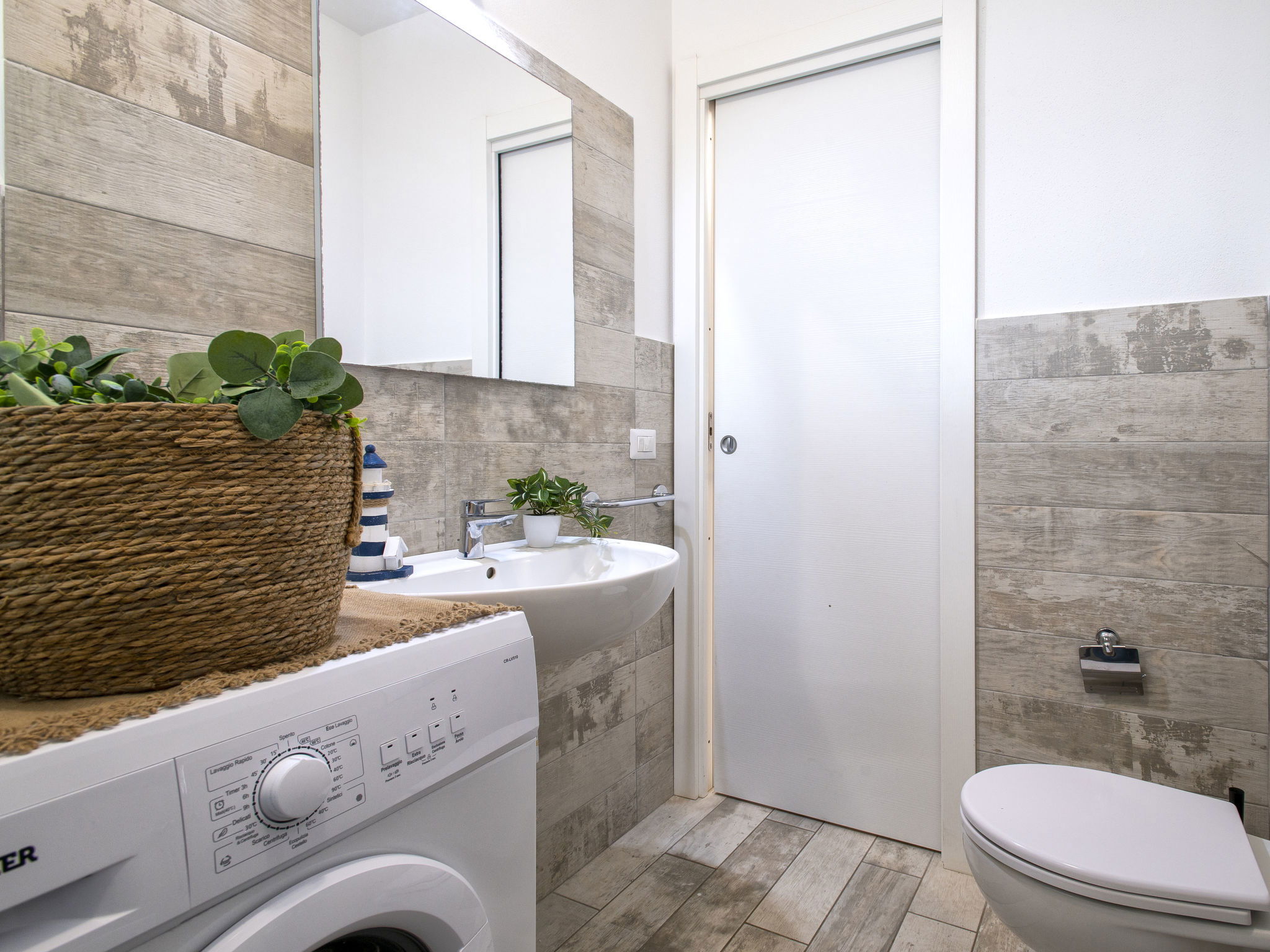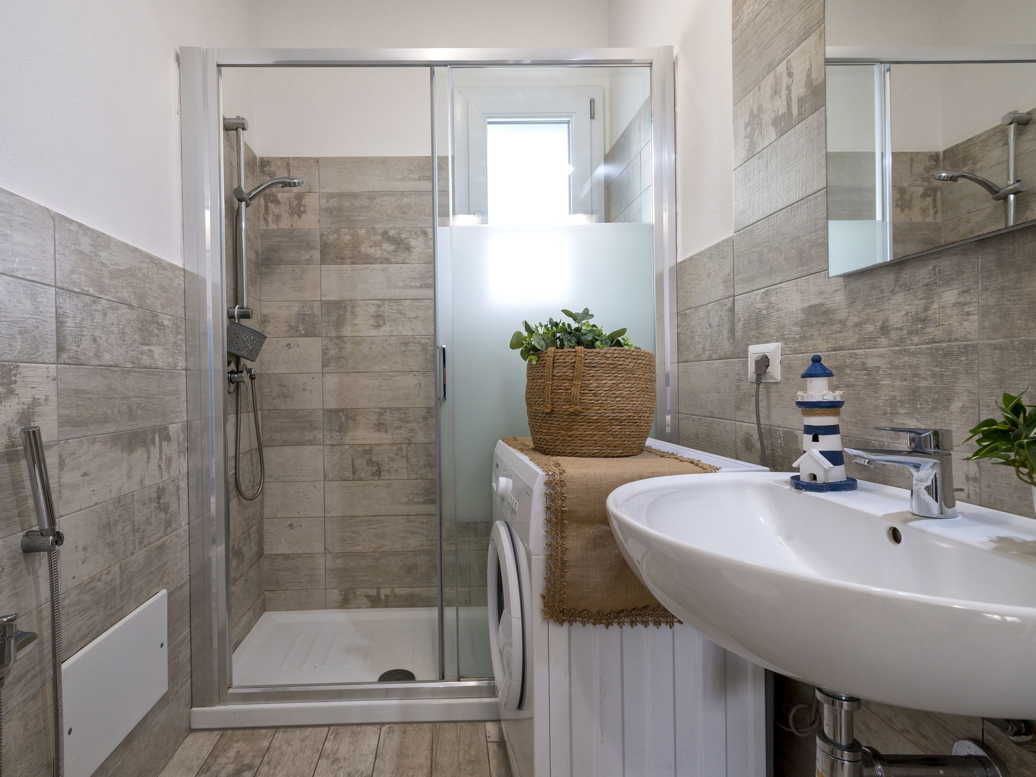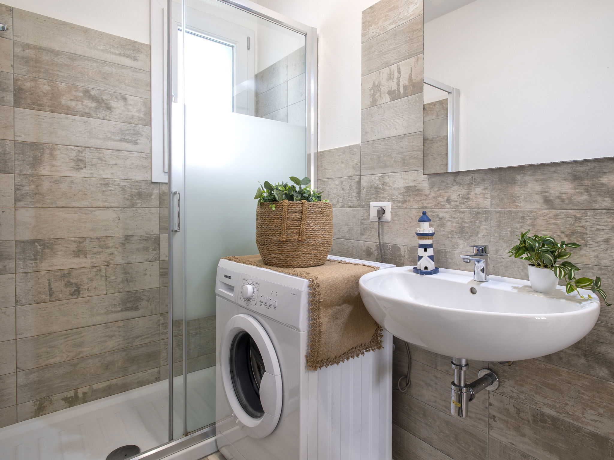 Appartement de 3 pièces 60 m2. Aménagement moderne et plaisant: séjour/salle à manger avec 1 divan-lit et TV (satellite) (écran plat). Sortie sur la terrasse. 1 chambre double. Sortie sur la terrasse. 1 chambre avec 1 x 2 lits superposés. Sortie sur la terrasse. Coin cuisine (4 plaques de cuisson, four, lave-vaisselle, grille-pain). Douche/bidet/WC. Air-conditionné, chauffage à air chaud. Grande terrasse partiellement couverte. Meubles de terrasse, chaises longues, place pour s'asseoir. Très belle vue panoramique sur la mer. A disposition: lave-linge, fer à repasser, sèche-cheveux. Internet (Connexion WIFI, gratuit). Maximum 1 animal/ chien autorisé. IT090079C2000S7881
