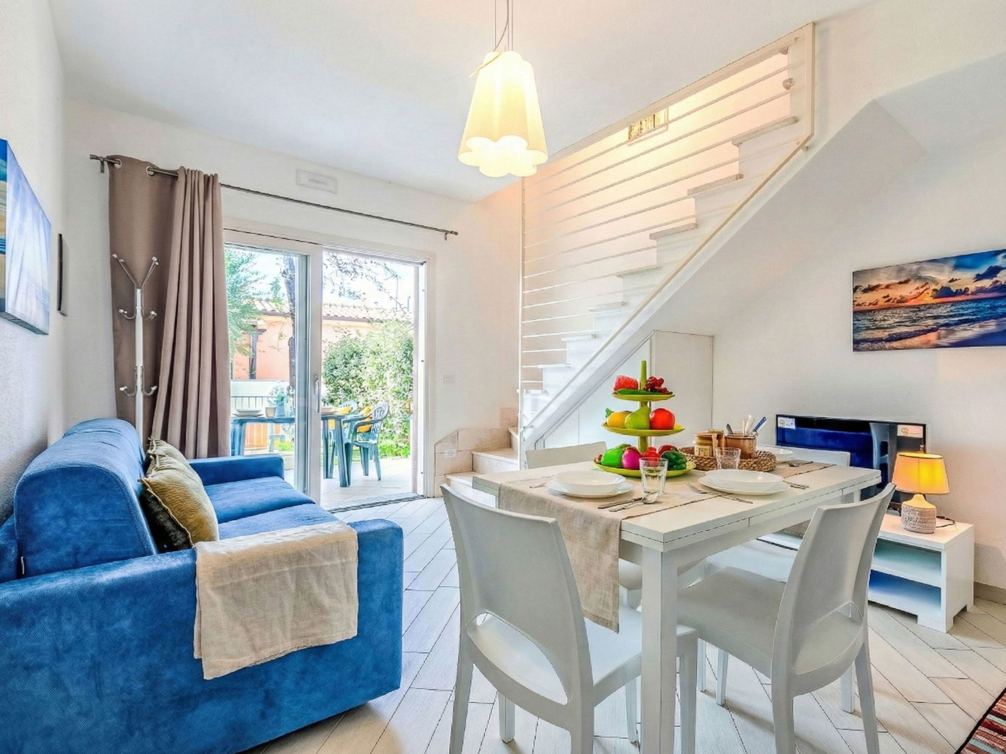 "Spritz Home", Appartement de 2 pièces 47 m2 sur 2 niveaux, au rez-de-chaussée. Aménagement agréable et de bon goût: séjour/salle à manger avec porte coulissante avec 1 divan-lit double et TV (écran plat). Sortie sur le jardin. Coin cuisine (four, 4 plaques à induction, grille-pain, bouilloire électrique, micro-ondes, cafetière électrique). À l'étage supérieur: 1 chambre double avec baie vitrée. Sortie sur le balcon. Douche/bidet/WC. Air-conditionné, chauffe eau. Petite terrasse. Mobilier de balcon. A disposition: lave-linge, fer à repasser, sèche-cheveux. Internet (Connexion WIFI, gratuit). Place de parking No 33. Veuillez noter: adapté(e) aux familles. Maximum 1 animal/ chien de petite taille autorisé. Extincteur. IT090082C2000Q8704