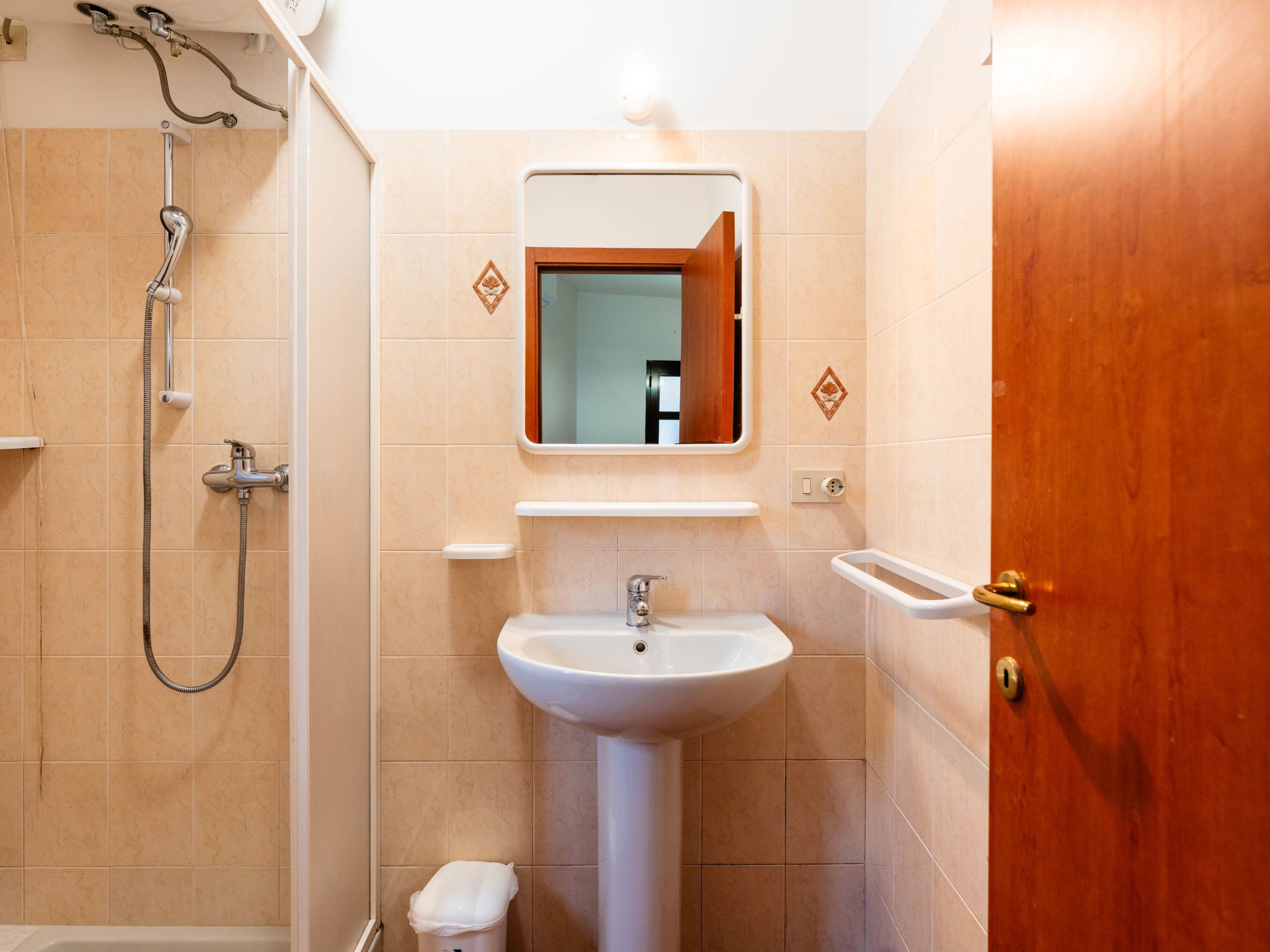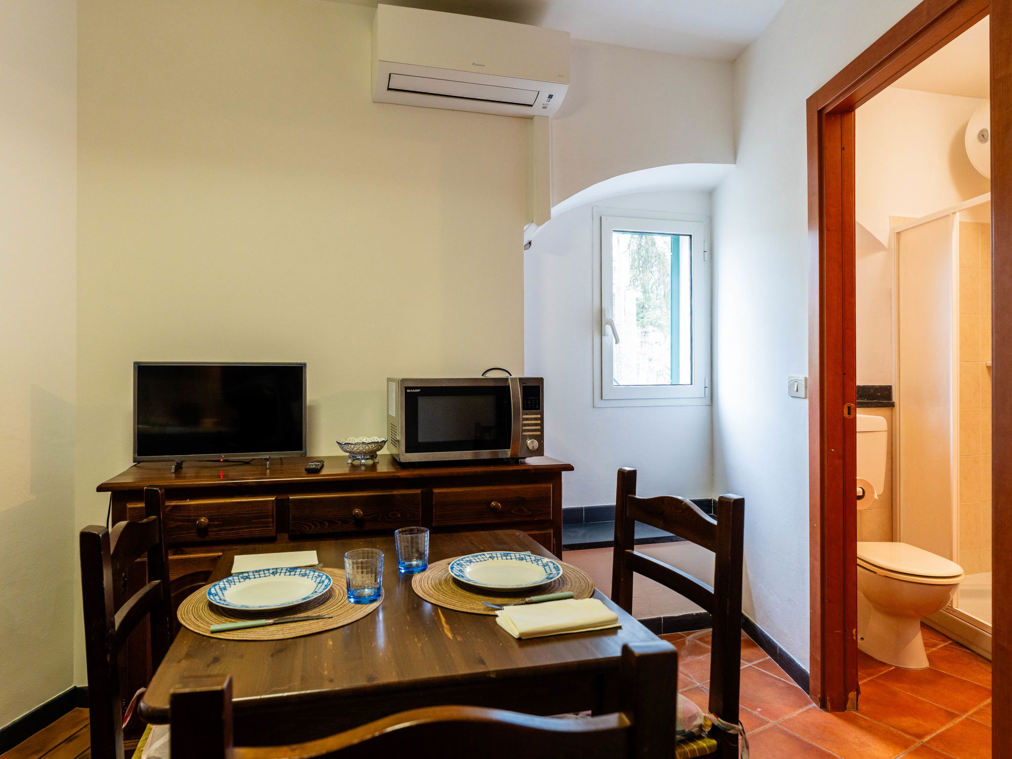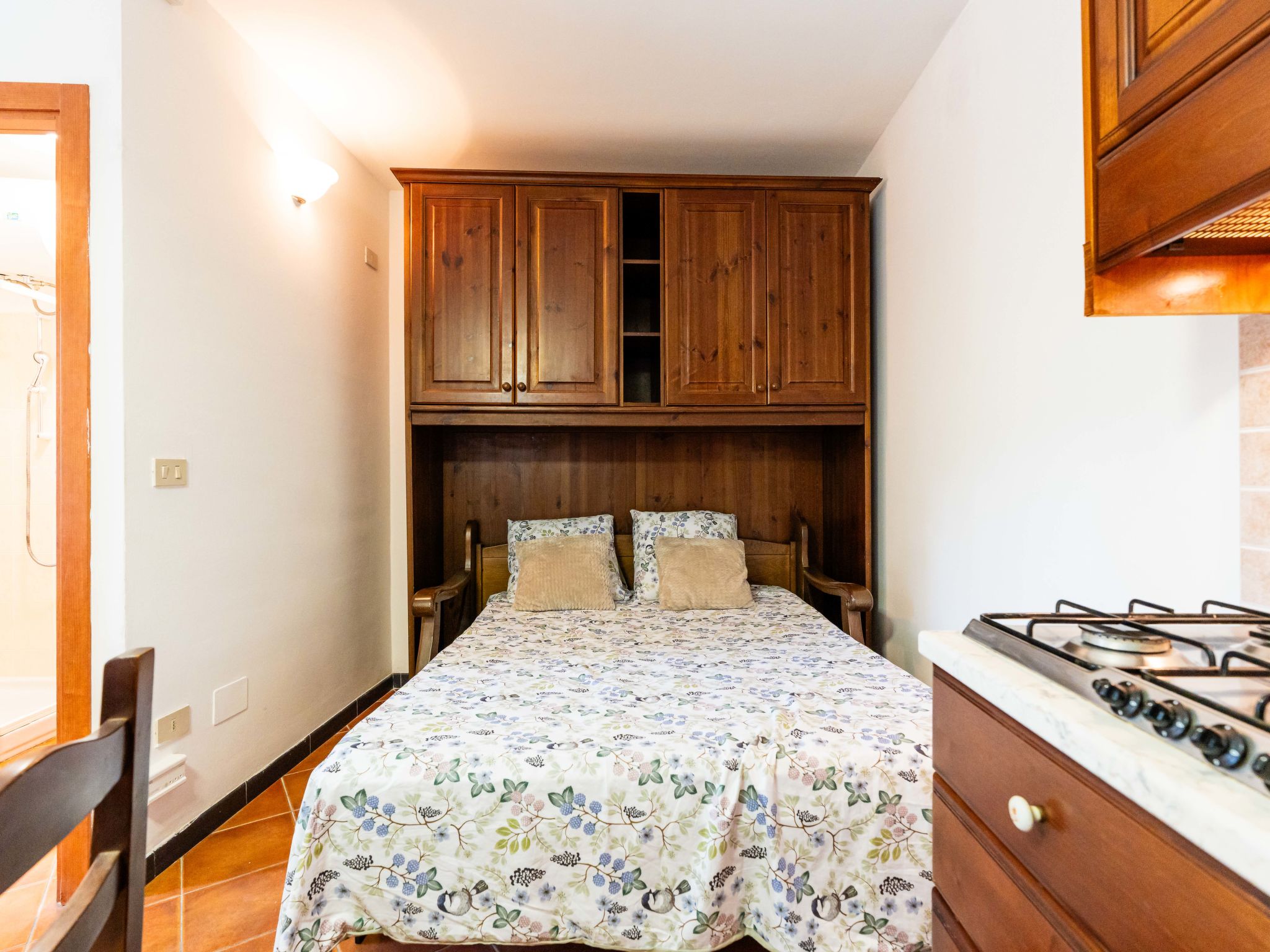 "Piccolina" studio 25 m2, au rez-de-chaussée. Aménagement plaisant: séjour/salle à manger avec 1 divan-lit double (160 cm, longueur 200 cm). Coin cuisine (four, lave-vaisselle, 4 feux, grille-pain, bouilloire électrique). Douche/bidet/WC. Air-conditionné, chauffage à air chaud. Possibilité de chauffage uniquement du 01.11. au 08.04. Vue sur les alentours. A disposition: lave-linge, chaise haute pour enfant, lit bébé jusqu'à 2 ans, sèche-cheveux. Place de parking près de la maison. Veuillez noter: maximum 1 animal/ chien autorisé. Entrée privée. IT008026B53FWFJN55