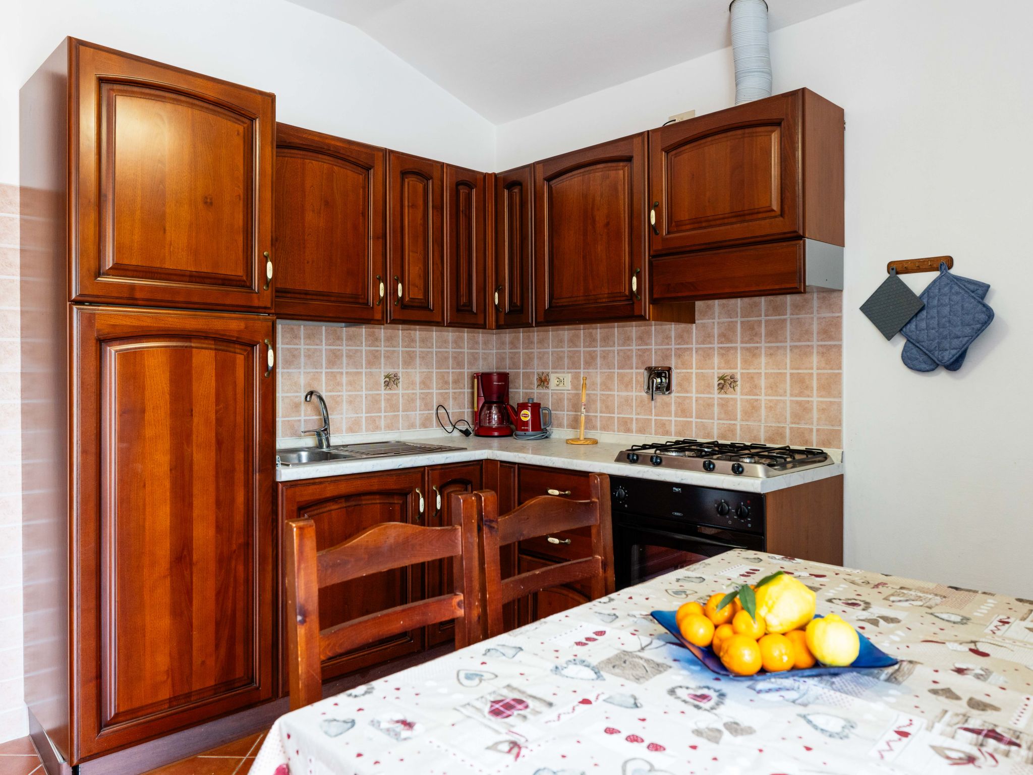 "Il Terrazzo E", Appartement de 2 pièces 50 m2 au 2ème étage. Aménagement rustique: séjour/chambre à coucher mansardé avec 1 divan-lit double et TV (satellite). 1 chambre avec 1 grand-lit (160 cm). Cuisine ouverte (four, 4 feux, grille-pain, bouilloire électrique, congélateur, cafetière électrique) avec table pour les repas. Sortie sur la terrasse. Bain/WC. Chauffage au gaz. Terrasse 20 m2. Meubles de terrasse. A disposition: lave-linge, chaise haute pour enfant, lit bébé. Internet (Connexion WIFI, gratuit). Maximum 1 animal/ chien autorisé. IT008026B53FWFJN55
