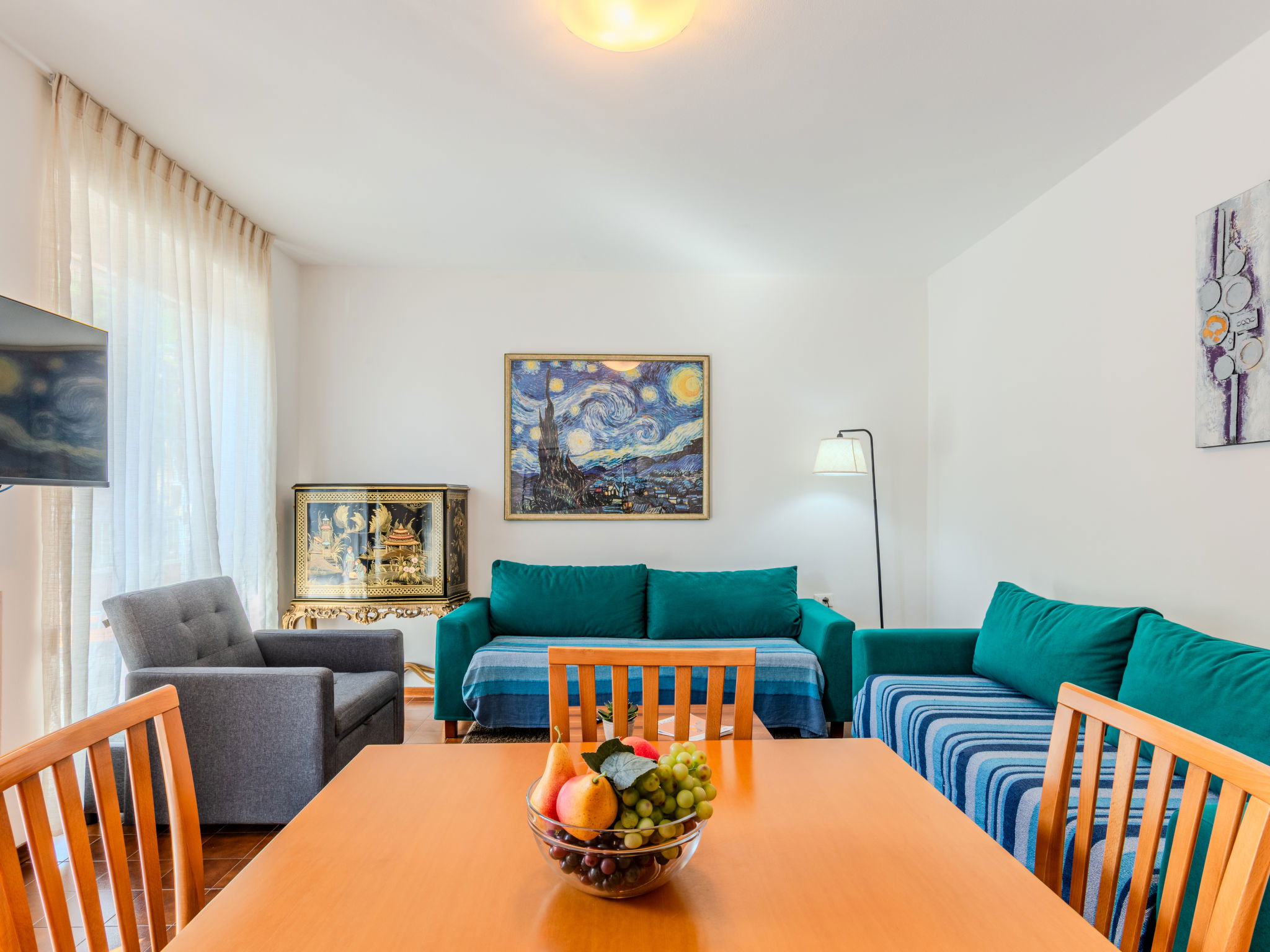 Appartement de 4 pièces 140 m2 au 1er étage. Aménagement confortable: grand séjour/chambre à coucher avec 1 lit gigogne, table pour les repas et TV (satellite). Sortie sur la terrasse. 1 chambre double avec air-conditionné. Sortie sur le balcon. 1 chambre avec 2 lits et air-conditionné. Sortie sur le balcon. 1 chambre avec 3 lits et air-conditionné. Sortie sur la terrasse. Cuisine (four, lave-vaisselle, 4 feux, grille-pain, bouilloire électrique, micro-ondes, cafetière électrique) avec table pour les repas. Sortie sur la terrasse. Douche/bidet/WC, bain/douche/bidet/WC. Chauffage au gaz. Possibilité de chauffage uniquement du 15.10. au 15.04. Balcon, terrasse. Belle vue sur les alentours. A disposition: lave-linge, chaise haute pour enfant, lit bébé jusqu'à 2 ans, sèche-cheveux. Internet (Connexion WIFI, gratuit). Place de parking (2 Voitures). Veuillez noter: logement non-fumeur. Maximum 1 animal/ chien autorisé. Détecteur de fumée, extincteur, sans ascenseur. IT013089C25288FXQD