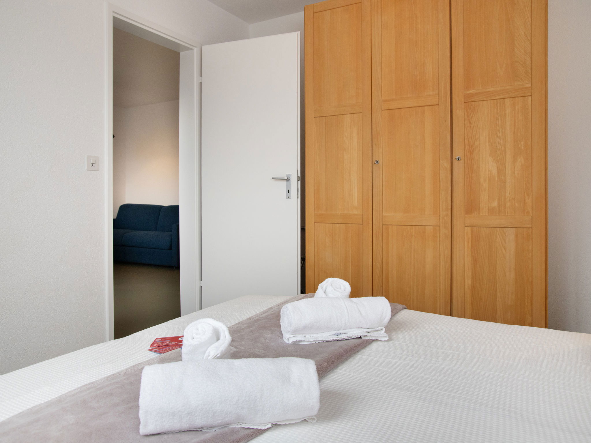 "La Siala Apt.32", Appartement de 2 pièces 34 m2 au 1er étage. Aménagement confortable et plaisant: séjour/salle à manger avec 1 divan-lit double et TV (câblée) (écran plat). Sortie sur le balcon. 1 chambre double. Coin cuisine (3 plaques de cuisson, four, cafetière électrique). Bain/WC. Balcon 8 m2, situation sud. Mobilier de balcon. Belle vue sur les montagnes, la vallée et les alentours. A disposition: sèche-cheveux. Internet (Connexion WIFI, gratuit). Veuillez noter: logement non-fumeur. Maximum 1 animal/ chien autorisé.