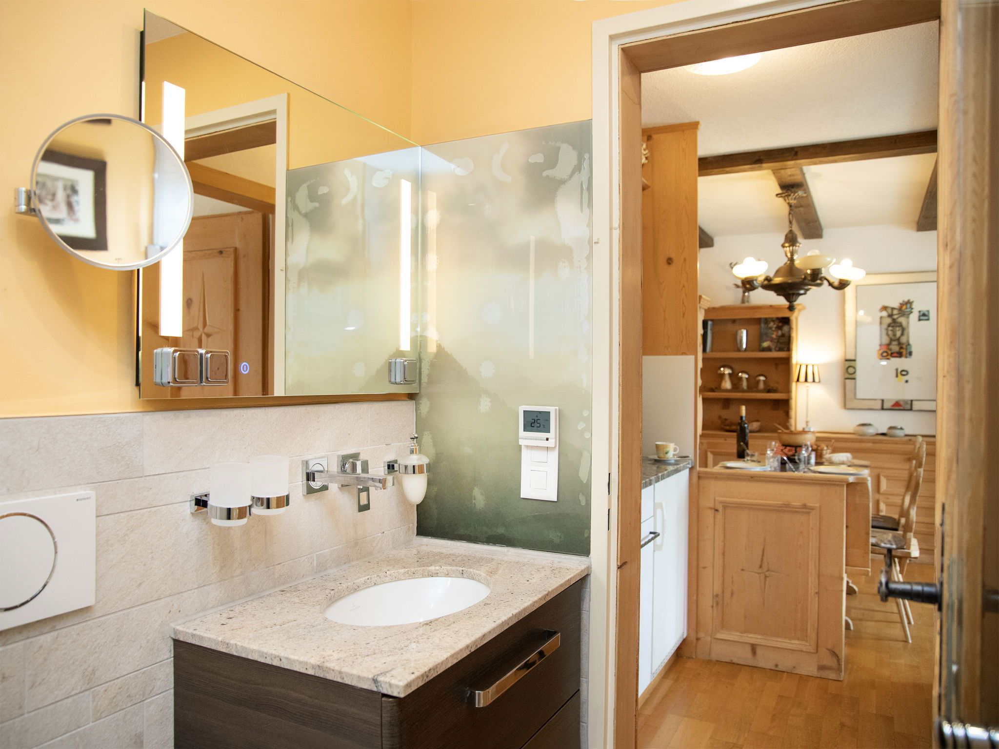 Falera à 2 km de Laax: Résidence accueillante pour les enfants, confortable "La Siala", 1'200 m au dessus du niveau de la mer, rénovée en 2024. En bordure de la localité, situation tranquille, ensoleillée, à 900 m du domaine skiable, orientée sud. En commun: terrain, pré, piscine couverte (disponibilité saisonnière: 01.Jul. - 15.Oct. et 15.Dec. - 31.Mar.). Infrastructures de la Maison: réception, l'hiver, l'utilisation du sauna est incluse, ping-pong, salle de jeux, baby foot, ascenseur, réduit pour bicyclettes, local pour les skis, chauffage central, lave-linge, sèche-linge (en commun, en sus), étendoir à linge. Accès en voiture jusqu'à la maison (route de montagne). En hiver, merci de prévoir des chaînes, en hiver 4x4 recommandé. Parking public 50 m en sus. Borne de recharge électrique. Magasin d'alimentation, restaurant 500 m, arrêt de bus "Falera, Parcadi" 50 m, piscine couverte 2 km, baignade en lac "Laaxer See" 2 km. Terrain de golf (18 trous) 6 km, téléski, télésiège, remontées mécaniques, pistes de ski 900 m. Arrêt du ski-bus 50 m, piste de luge 900 m, ski de fond 6 km, patinoire, jeux pour enfants 500 m. Attractions à proximité: Ruinalta/Rheinschlucht 6 km, Baumwipfelpfad Laax 2 km. Les domaines skiables de renommée sont facilement accessibles: Weisse Arena Flims/Laax 900 m. Les lacs connus sont facilement accessibles: Caumasee 6 km. Région de randonnées: Unesco Welterbe Sardona, Ruinalta/Rheinschlucht, Planetenlehrpfad Falera-Laax-Falera.