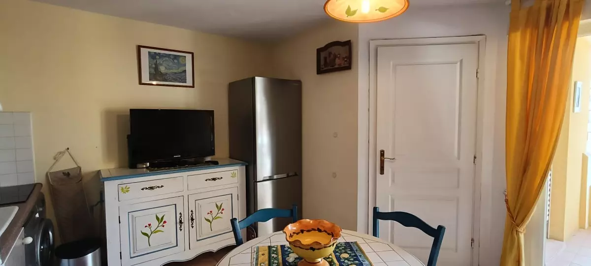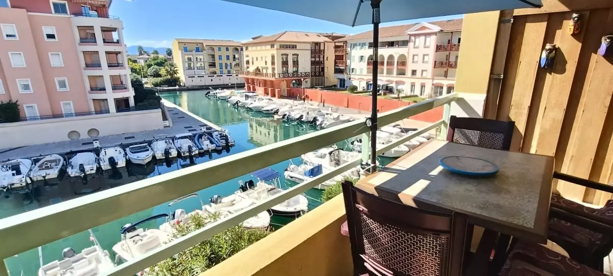 Situé au 2ème étage sans ascenseur, cet appartement lumineux bénéficie d’une orientation Sud-Ouest et d’une belle vue. Il comprend une chambre avec un lit double de taille 160 x 200, une cuisine entièrement équipée, et une salle de douche fonctionnelle. L’espace repas est idéal pour vos repas, avec une table et des chaises, tandis que le salon confortable dispose d’un canapé convertible de taille 140 x 190, parfait pour accueillir des invités supplémentaires. Vous pourrez également profiter d’un balcon et d’une grande terrasse avec vue directe sur les bateaux en bas.