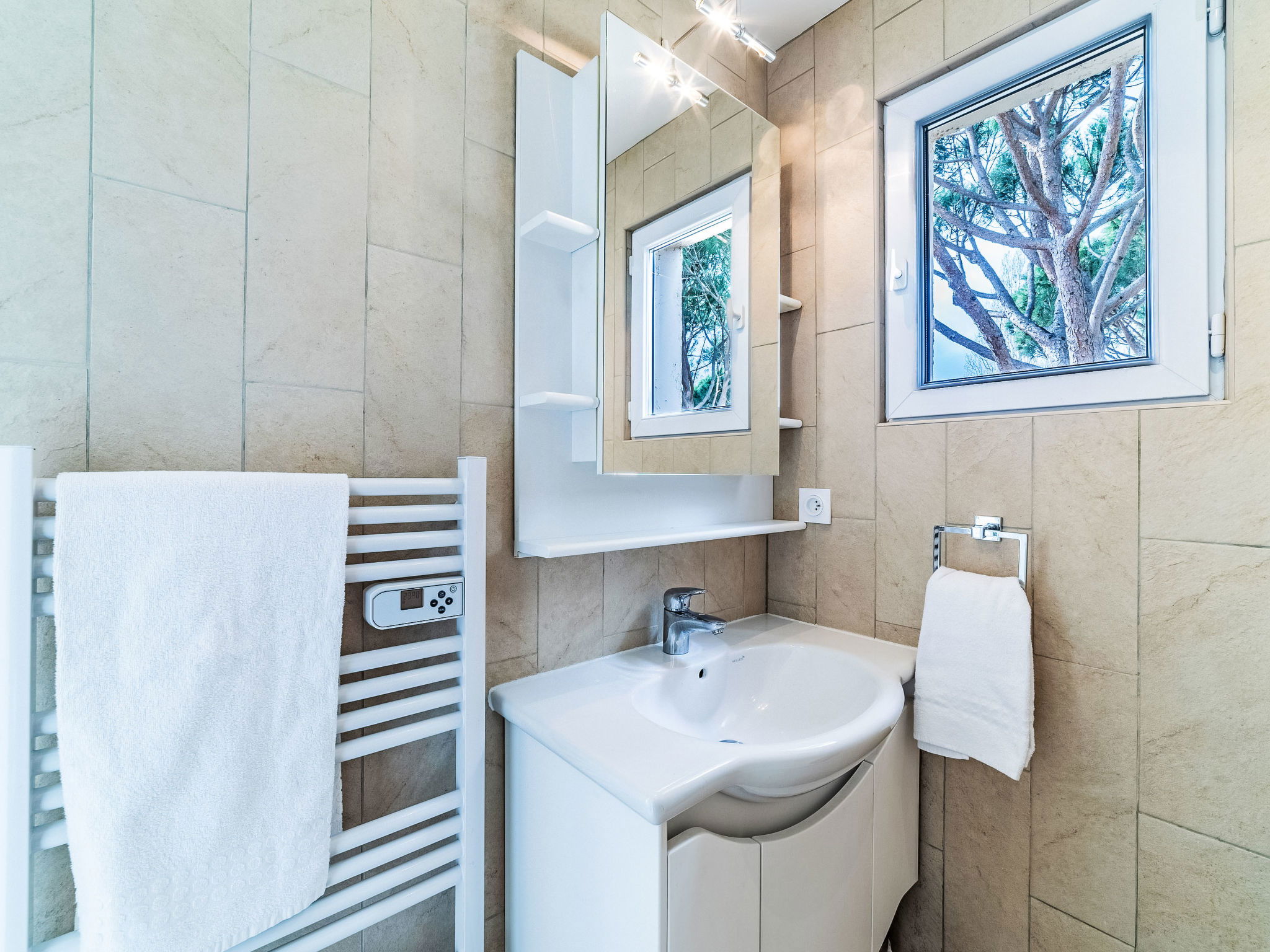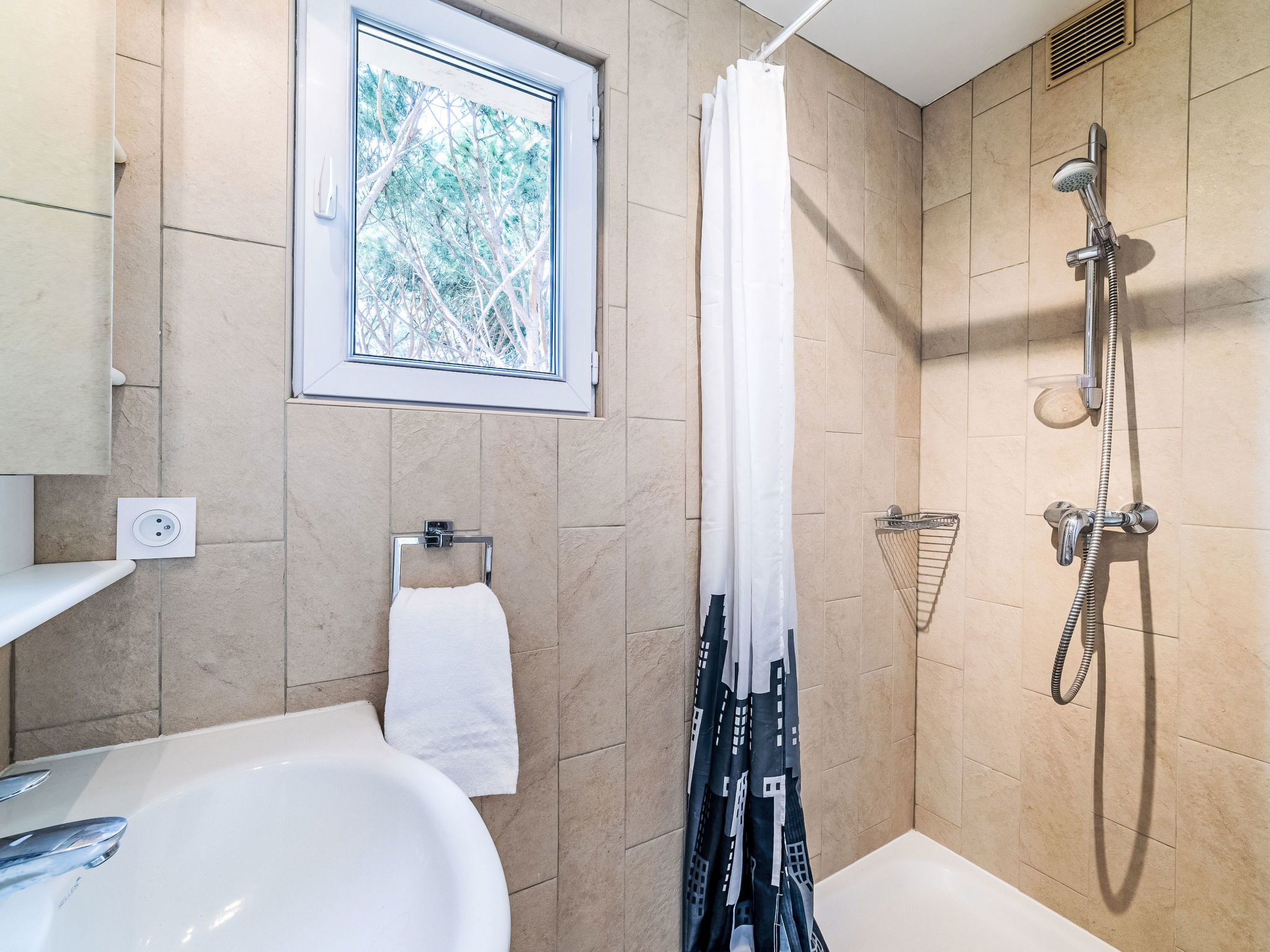 Marines de Gassin à 3 km de Saint-Tropez: Résidence "Les Marines". À 100 m de la mer, à 100 m de la plage. En commun: parc, piscine (650 m2, disponibilité saisonnière: 01.Jun. - 30.Sep.). Bassin pour les enfants, tennis, ping-pong, espace de jeux pour les enfants. Infrastructures de la résidence: ascenseur. Parking public. Magasins 200 m, magasin d'alimentation 1 km, supermarché 1 km, restaurant, bar 250 m, arrêt de bus "Marines de Gassin" 450 m, plage de sable "Les Marines de Gassin" 100 m. Port plaisance 200 m, ecole de voile 150 m, golf miniature 1 km, piste cyclable 10 km. Attractions à proximité: Parc d'attractions Azur Park 1 km, Saint Tropez 3 km, Sainte Maxime 10 km, Cannes 84 km, Nice 110 km. Les lacs connus sont facilement accessibles: Le Lac de Sainte Croix 89 km. Région de randonnées: Massif de l'Esterel 50 km. Veuillez noter: D’autres appartements sont également proposés à la location dans cette maison de vacances.