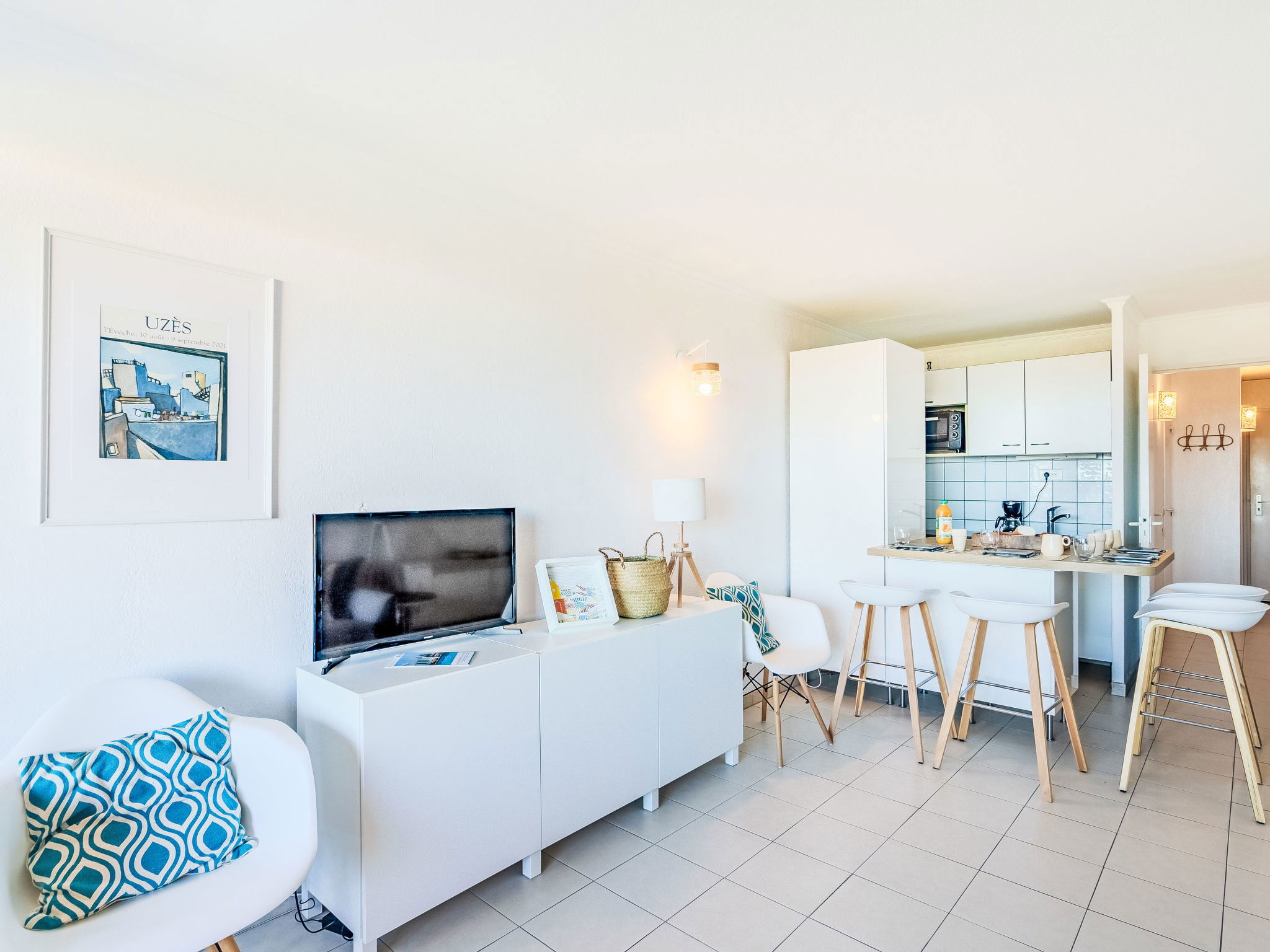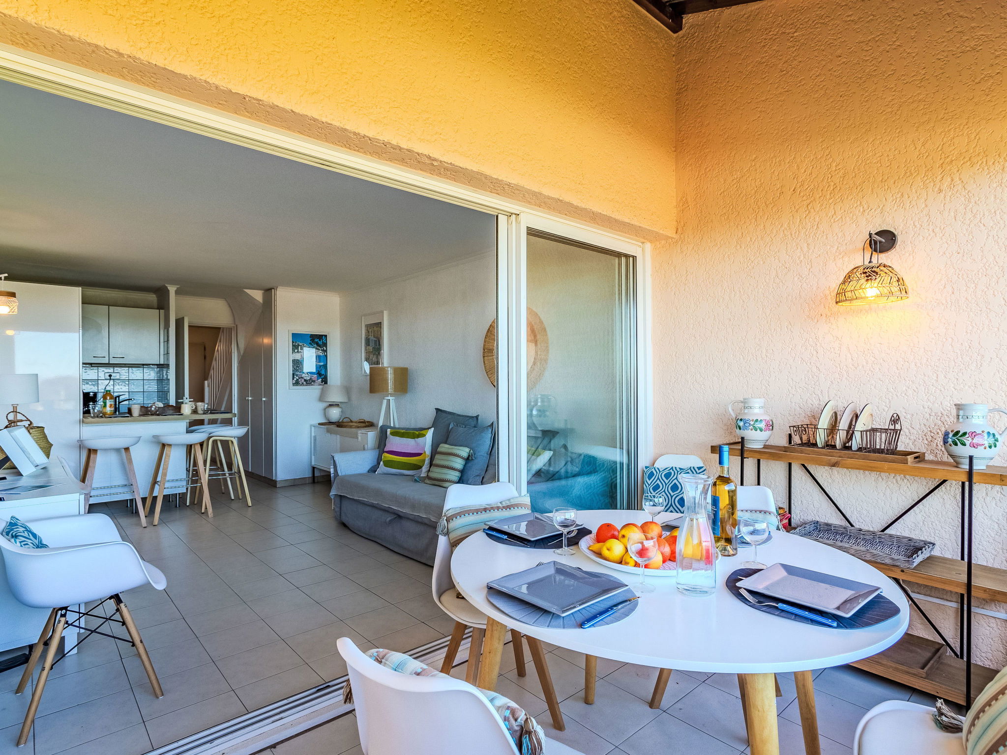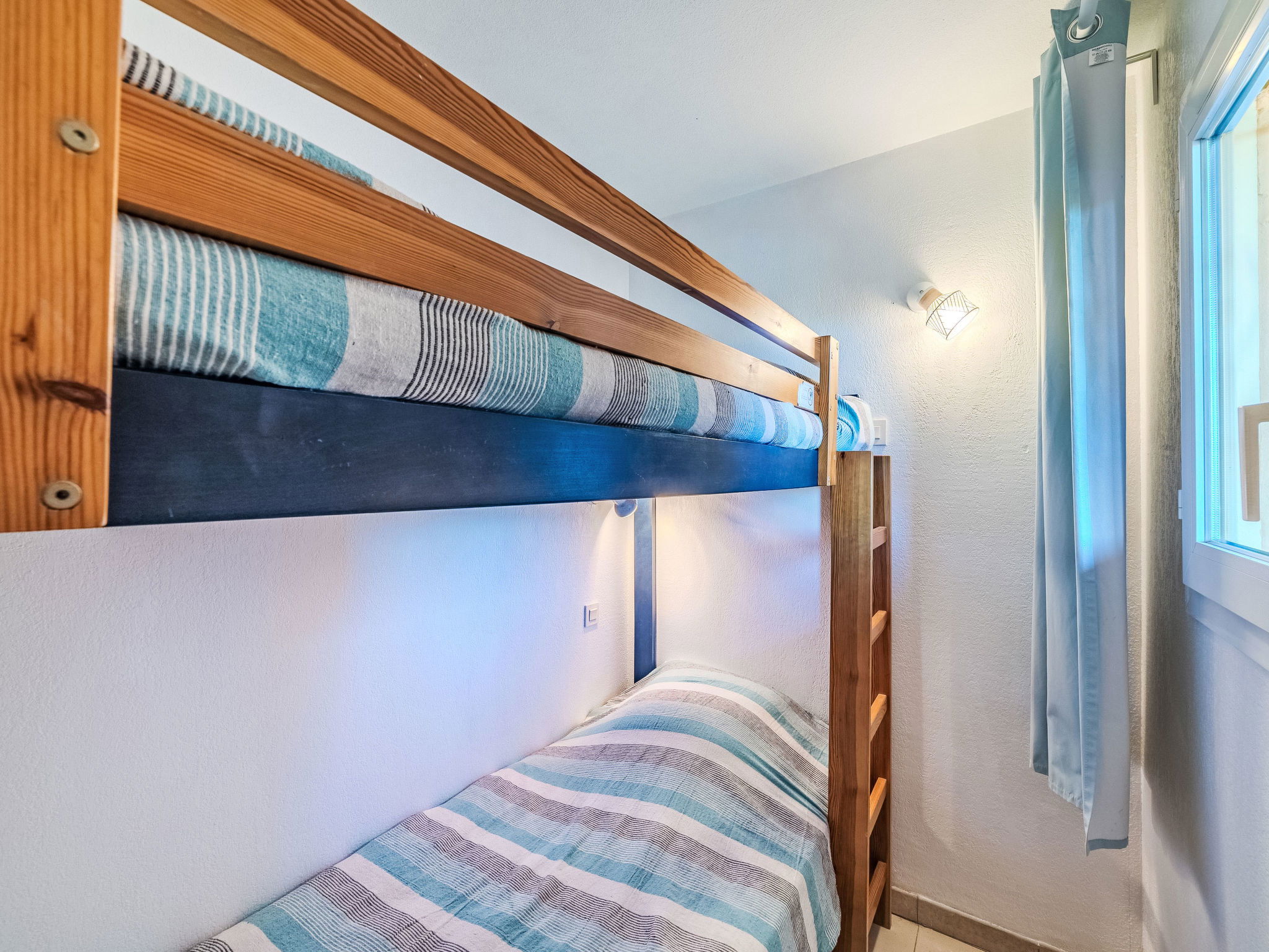 "Les Marines de Gassin 14", appartement sur 2 niveaux 3 pièces 45 m2 au 3ème étage. Partiellement rénové en 2022, aménagement plaisant: séjour/salle à manger avec TV (écran plat). Sortie sur la terrasse. 1 petite chambre avec 1 x 2 lits superposés (80 cm, longueur 190 cm). Coin cuisine (mini-four, lave-vaisselle, 4 plaques vitrocéramiques, grille-pain, bouilloire électrique, cafetière électrique, Capsules pour machine à café (Nespresso) (NON INCLUSES)). Salle de bains, WC séparé. À l'étage supérieur: 1 chambre avec 1 grand-lit (140 cm, longueur 200 cm). Douche, WC séparé. Chauffage électrique. 2 terrasses 16 m2, situation est. Meubles de terrasse. Belle vue sur la mer. A disposition: lave-linge, fer à repasser, sèche-cheveux. Internet (Connexion WIFI, en sus). Place de parking No 294. Veuillez noter: logement non-fumeur. 1 animal/ chien de petite taille autorisé. Détecteur de fumée. Annonce d'un particulier (art 155, IV du CGI). 83065000695JM