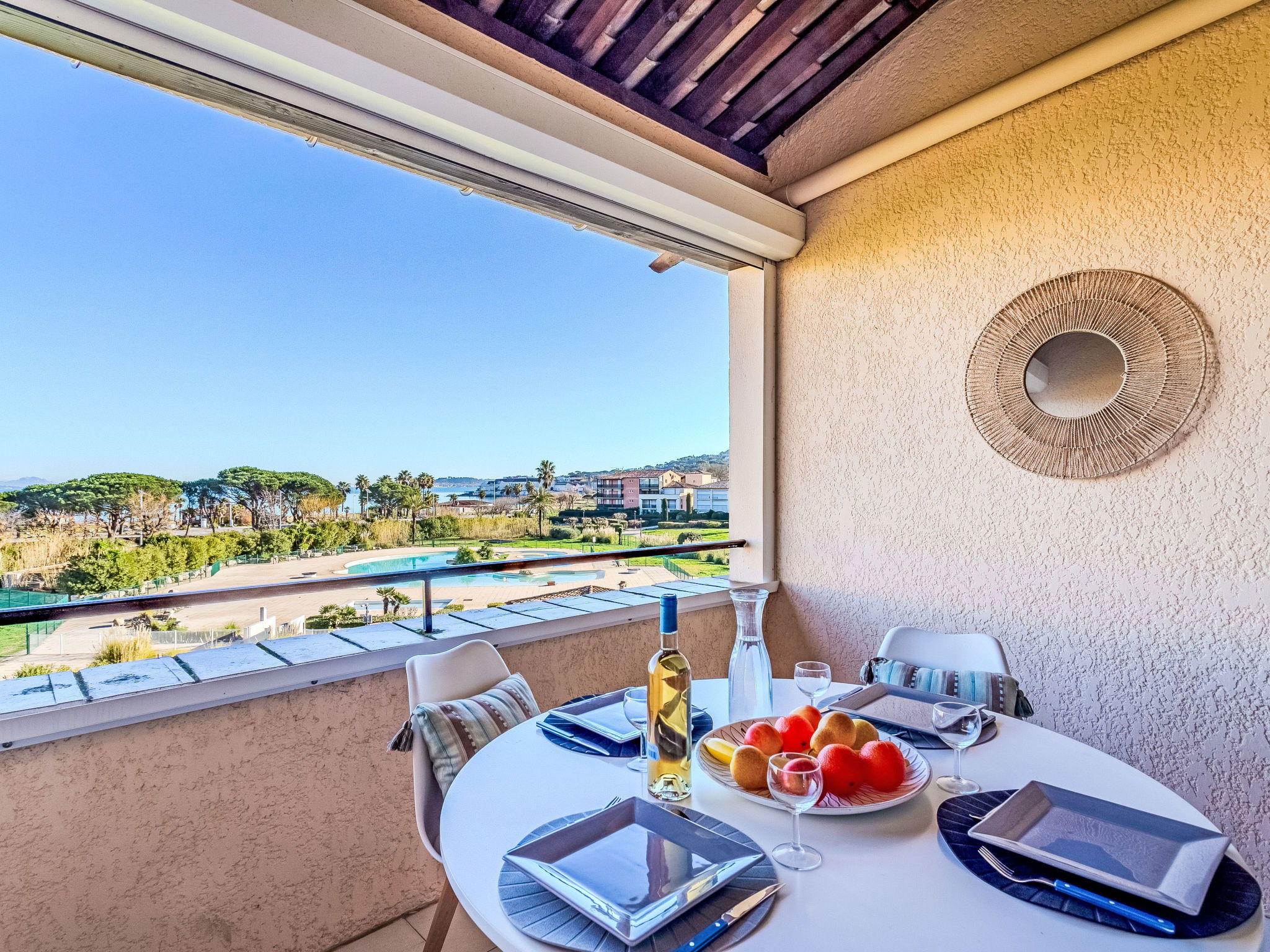 Marines de Gassin à 3 km de Saint-Tropez: Résidence "Les Marines". À 100 m de la mer, à 100 m de la plage. En commun: parc, piscine (650 m2, disponibilité saisonnière: 01.Jun. - 30.Sep.). Bassin pour les enfants, tennis, ping-pong, espace de jeux pour les enfants. Infrastructures de la résidence: ascenseur. Parking public. Magasins 200 m, magasin d'alimentation 1 km, supermarché 1 km, restaurant, bar 250 m, arrêt de bus "Marines de Gassin" 450 m, plage de sable "Les Marines de Gassin" 100 m. Port plaisance 200 m, ecole de voile 150 m, golf miniature 1 km, piste cyclable 10 km. Attractions à proximité: Parc d'attractions Azur Park 1 km, Saint Tropez 3 km, Sainte Maxime 10 km, Cannes 84 km, Nice 110 km. Les lacs connus sont facilement accessibles: Le Lac de Sainte Croix 89 km. Région de randonnées: Massif de l'Esterel 50 km. Veuillez noter: D’autres appartements sont également proposés à la location dans cette maison de vacances.
