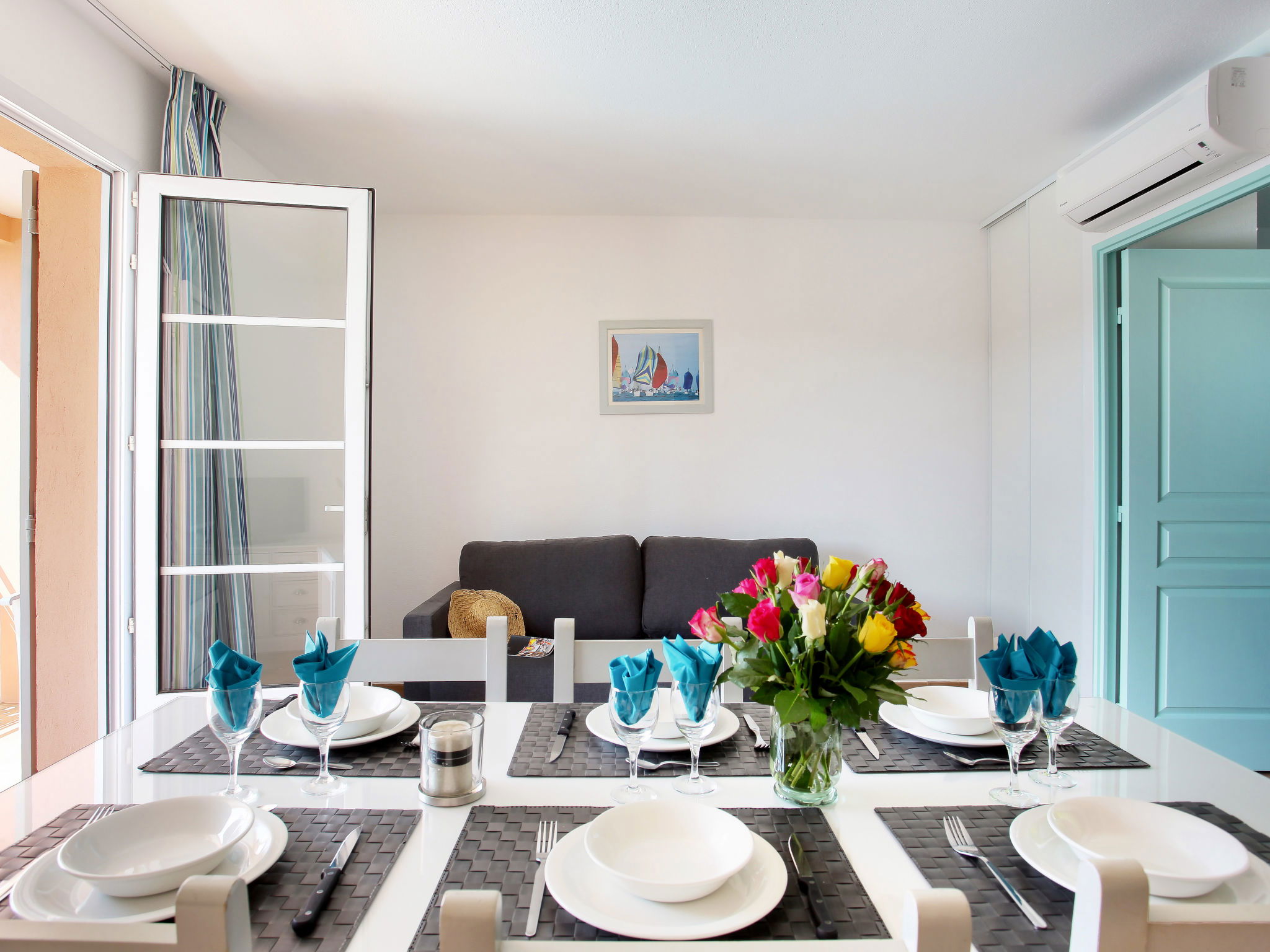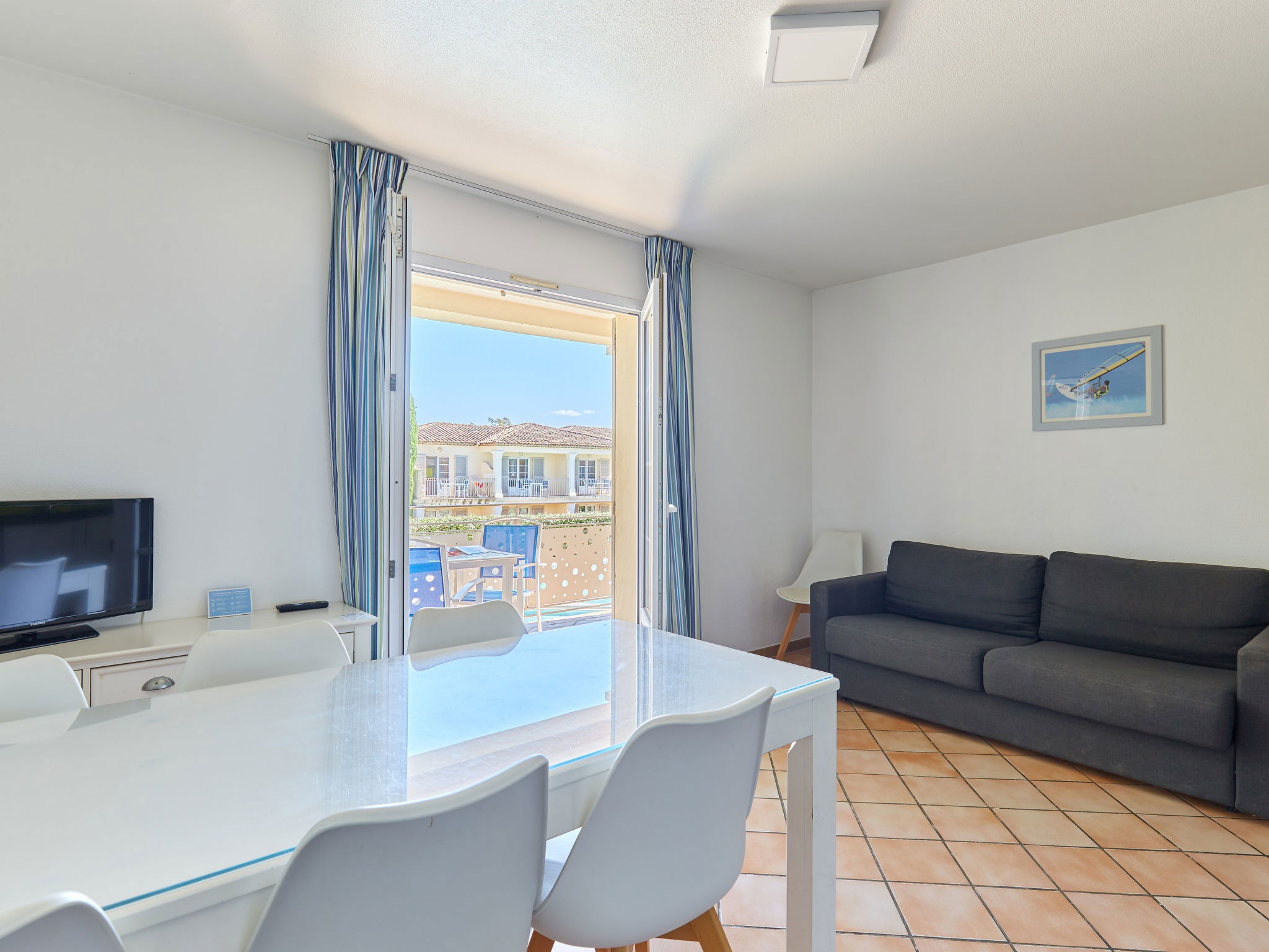"Résidence Odalys Référence La Palmeraie", Appartement de 2 pièces 37 m2. Clair, aménagement fonctionnel: séjour/chambre à coucher avec 1 divan-lit double, table pour les repas et TV. 1 chambre avec 2 couchages. Entrée avec 1 x 2 lits superposés. Coin cuisine (lave-vaisselle, 2 plaques vitrocéramiques, micro-ondes, congélateur, cafetière électrique). Salle de bains, WC séparé. Chauffage électrique, air-conditionné. Balcon ou terrasse. Meubles de terrasse, mobilier de balcon. A disposition: chaise haute pour enfant, lit bébé. Internet (Connexion WIFI, gratuit). Veuillez noter: logement non-fumeur. Maximum 1 animal/ chien autorisé. Détecteur de fumée, extincteur.