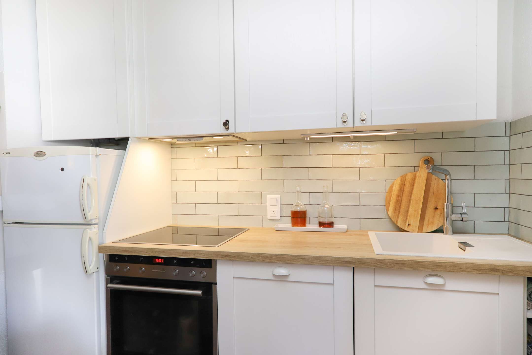 L'appartement se compose d'une entrée avec cuisine et séjour ouverte donnant accès à une terrasse couverte et au jardin, d'une chambre à coucher avec salle de bains et d'un toilette.