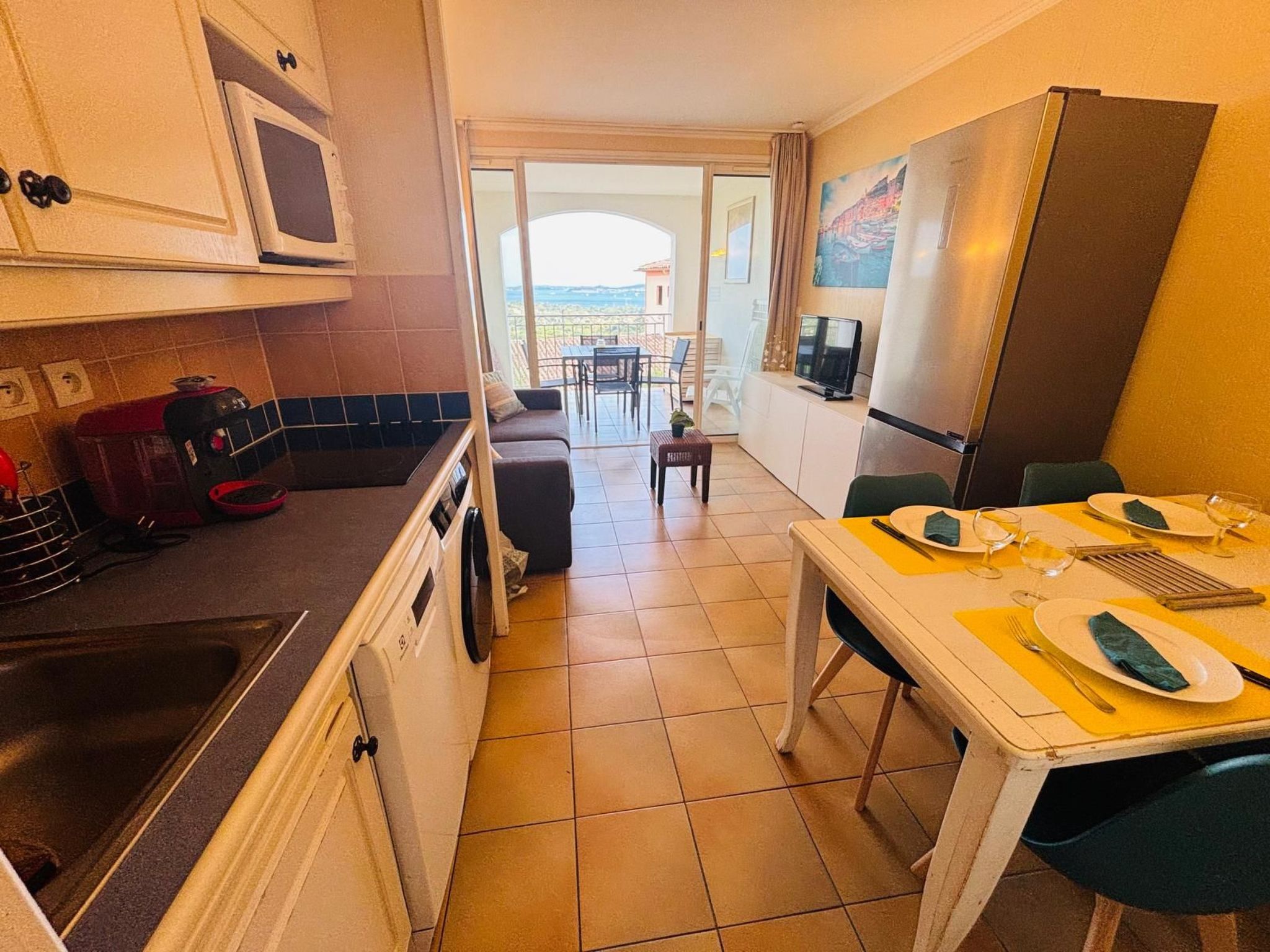 A louer T 2 à la semaine du samedi au samedi 2 pièces 5 personnes 28m², Climatisé. Terrasse couverte de 11 m² avec une vue imprenable sur le golf de saintTropez. 1 place de parking dans garage intérieur privatisé gratuite proche de l'appartement Situé dans une résidence de vacances , parc de 25 hectares avec espace aquatique (vagues, toboggans), jacuzzi, une piscine chauffée, aire de jeux, tables de ping pong.., tennis , football. Nombreuses animations gratuites Aquagym, Aquadance, cours de Pilates, zumba, soirées à thèmes, clubs enfants, ado ( payant). L'appartement est composé d' 1 chambre avec un lit double, une SDB avec baignoire, un WC séparé, un salon/salle à manger avec kitchenette équipée. Le canapé convertible permet d'obtenir 4 couchages. Situé à 1 km des plages . La cuisine est équipée d'un gros frigo congelateur, lave vaisselle, lave linge , plaque chauffante, micro ondes, four ,cafetière Tassimo, bouilloire , grille pain etc.... Vaisselle fournie . Salon équipé d'une télévision. Résidence fermée et sécurisée 24h / 24. Aucun vis à vis . Deux restaurants et une supérette sur place l'été. laverie dans la résidence. Saint Tropez et saint Maxime à 6 kms. Pas de frais de dossiers. L'appartement doit être laissé dans l'état où vous l'avez trouvé. possibilité de location de draps et serviettes de toilette. Caution obligatoire.