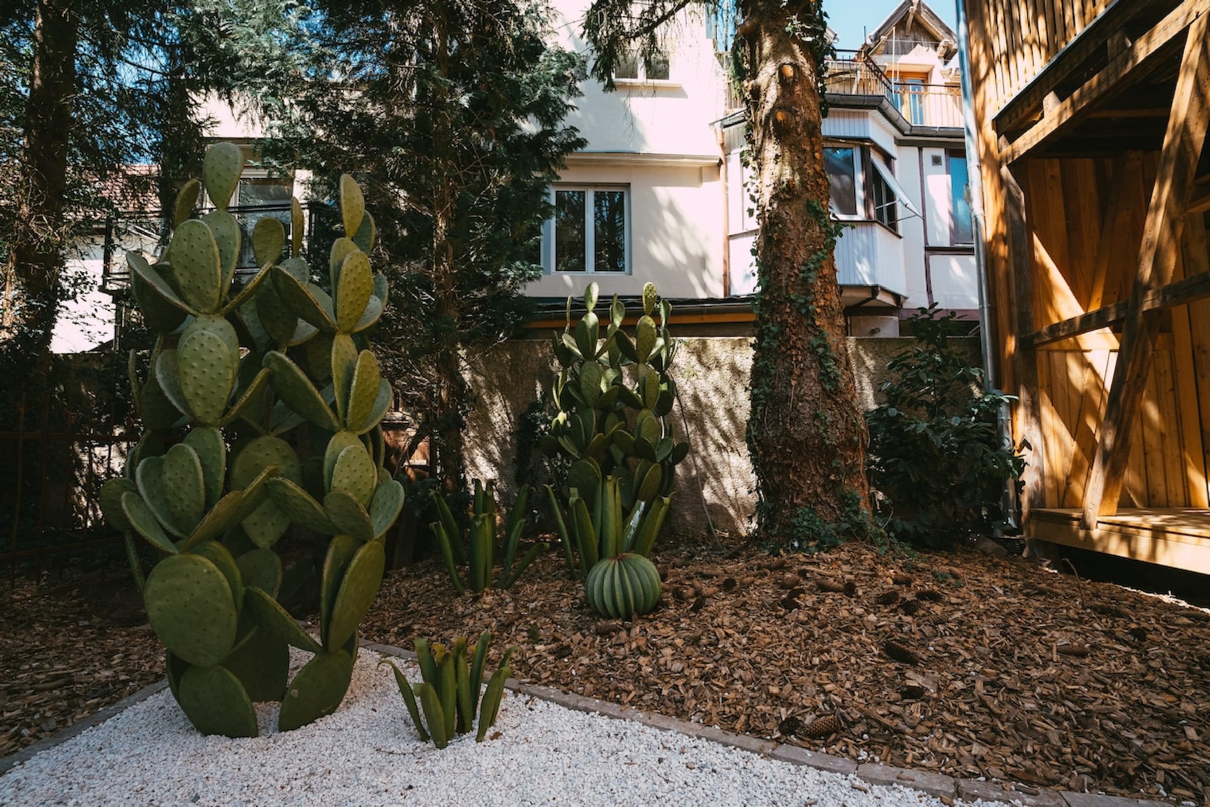 Le + : Accès à un espace extérieur donnant sur un joli jardin avec mobilier.