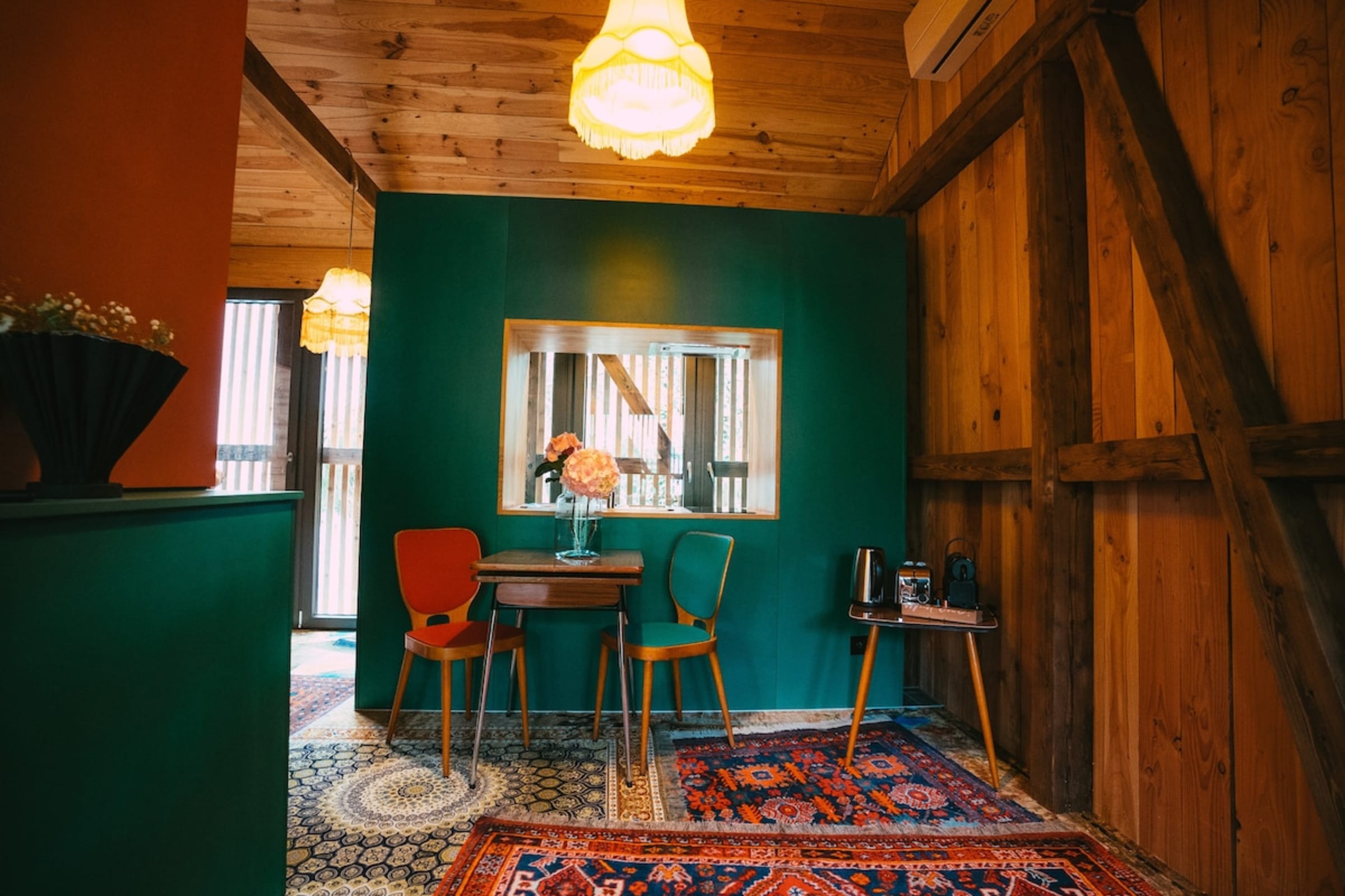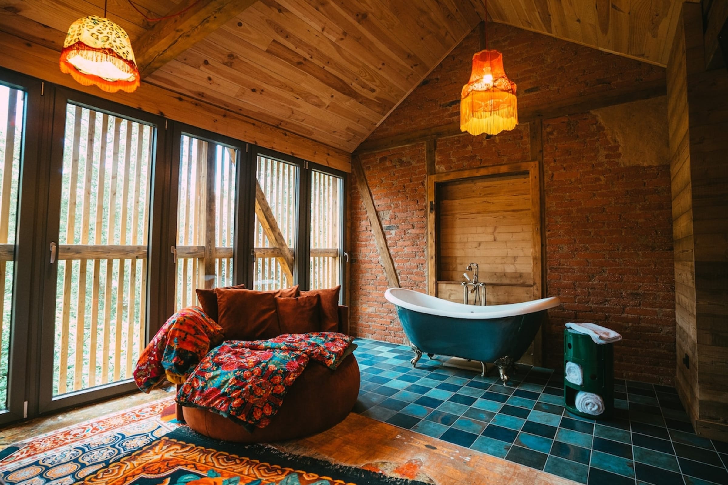 Faites vos valises et prenez la route ! Venez découvrir un endroit hors du commun " La Bohème ". Ici, tout a été fait dans les moindres détails pour vous faire voyager sans avoir besoin d'aller au bout du monde ! Moquettes dessinées par nos soins, meubles sur mesure et décoration vintage chinée ici et là pour une ambiance chaleureuse, chic et décontractée ... rien n'a été laissé au hasard. Venez vous ressourcer dans un environnement haut en couleur avec beaucoup de petites attentions et de positive touch ! L'ensemble du loft est composé de grande fenêtre protégées par des brises vues afin de vous offrir un maximum de luminosité et une impression de vivre au milieu de la nature ...