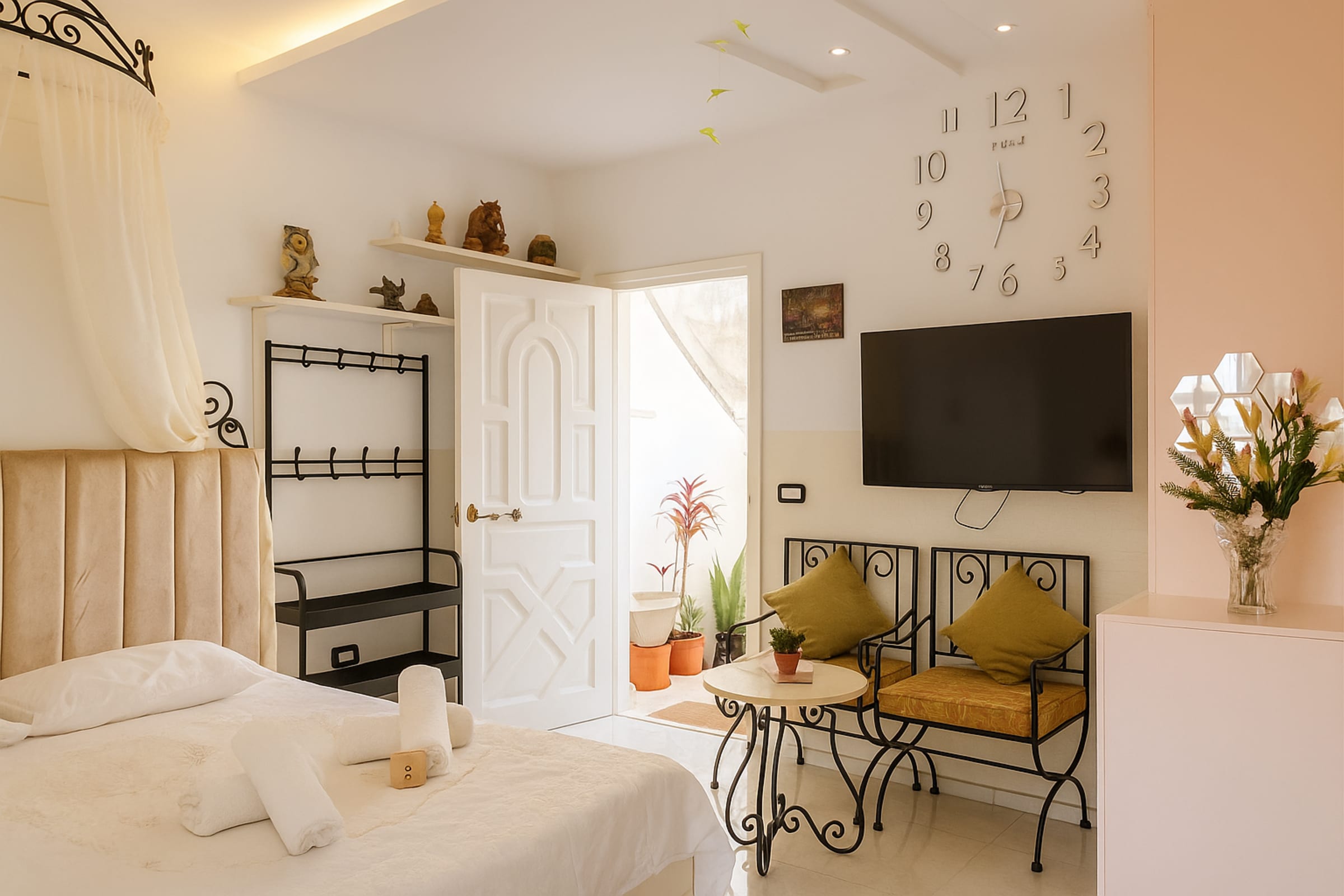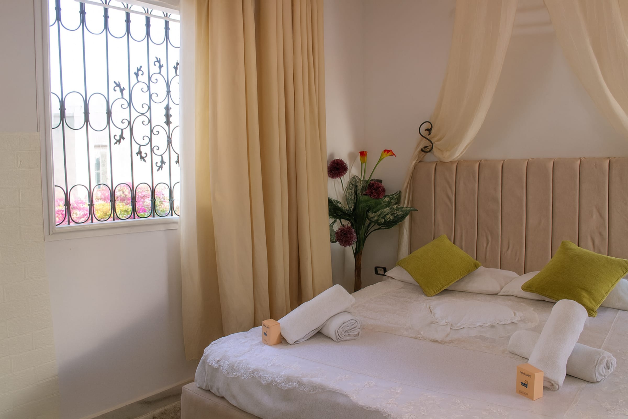Bienvenue dans notre charmant appartement, situé en plein cœur de Hammamet, au premier étage. À votre arrivée, vous trouverez une chambre entièrement équipée, avec un lit double confortable pour deux voyageurs, une smart TV avec toutes les applications nécessaires, ainsi que du linge premium inclus (draps, serviettes et oreillers de qualité) pour un confort optimal. L’appartement est lumineux toute la journée et très calme le soir. Il dispose du chauffage en hiver et de la climatisation en été pour votre bien-être.