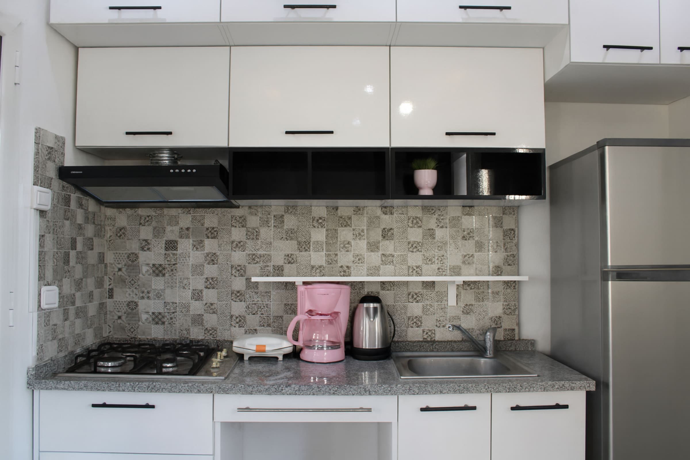Vous profiterez également d’une kitchenette entièrement équipée pour préparer vos plats préférés, ainsi qu’une table à manger pour deux personnes. Une salle d’eau avec WC et douche est disponible à l’intérieur. À l’extérieur, un espace détente avec machine à laver vous est réservé pour plus de praticité. Récemment rénové, l’appartement offre une atmosphère agréable, moderne et apaisante.