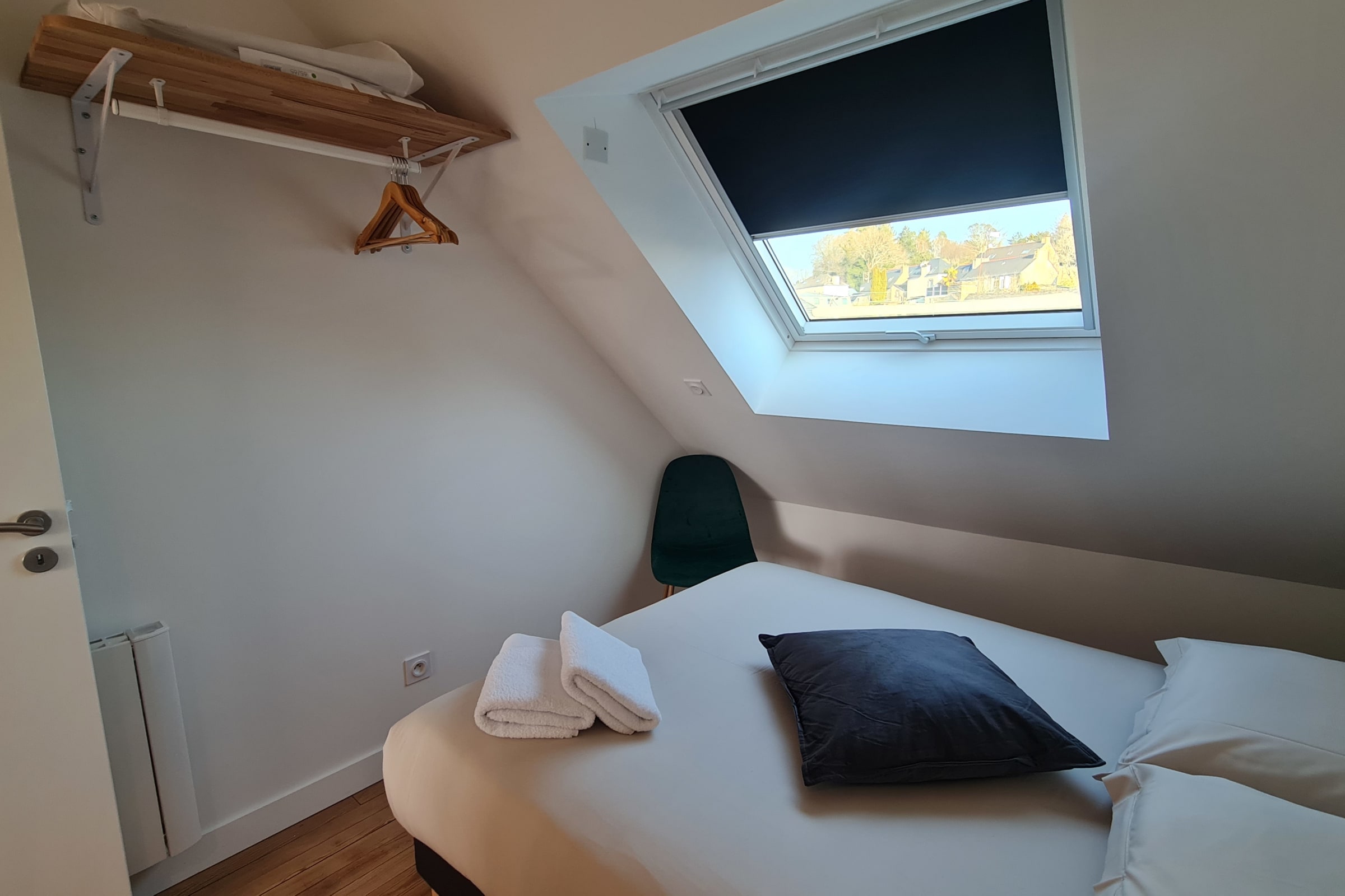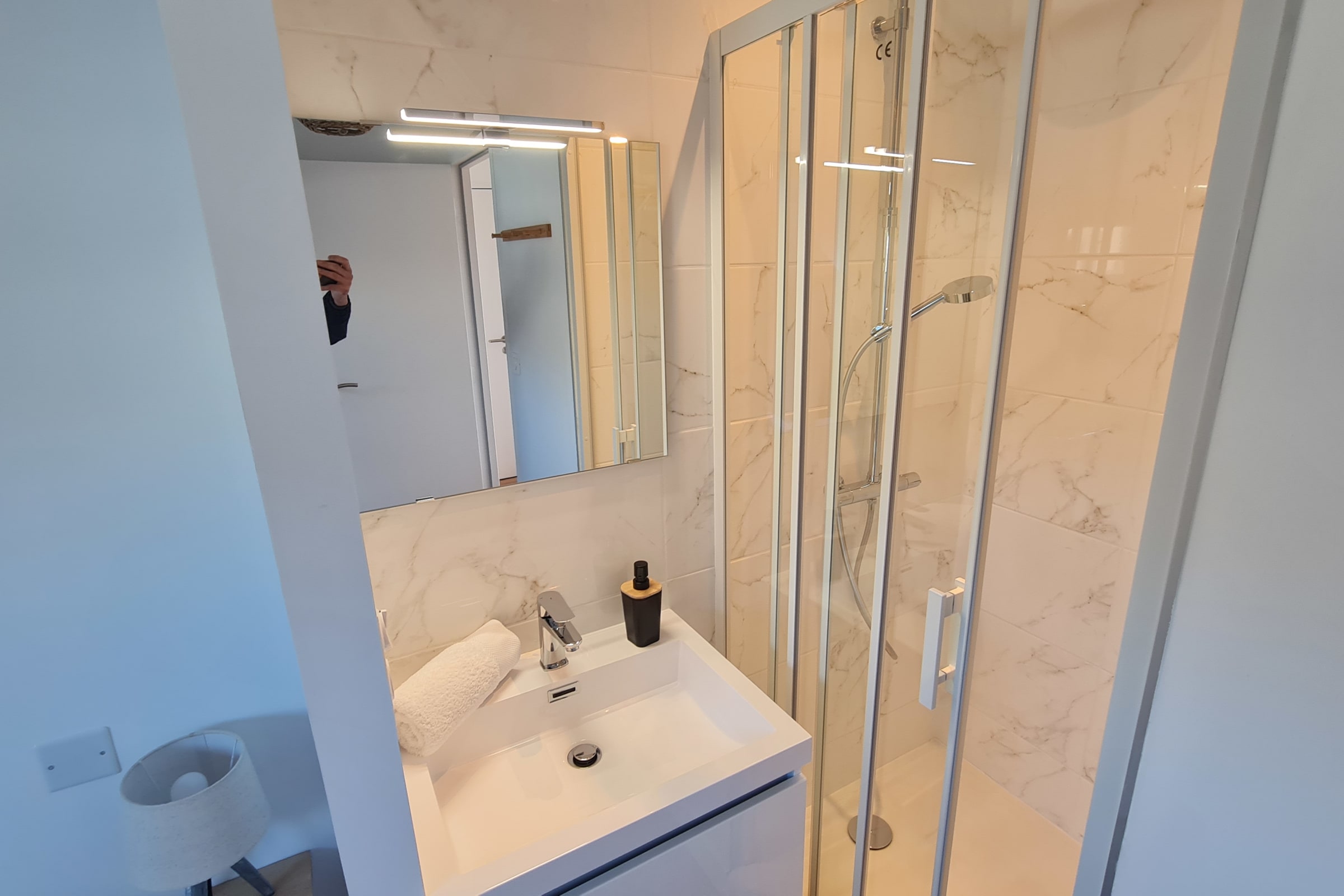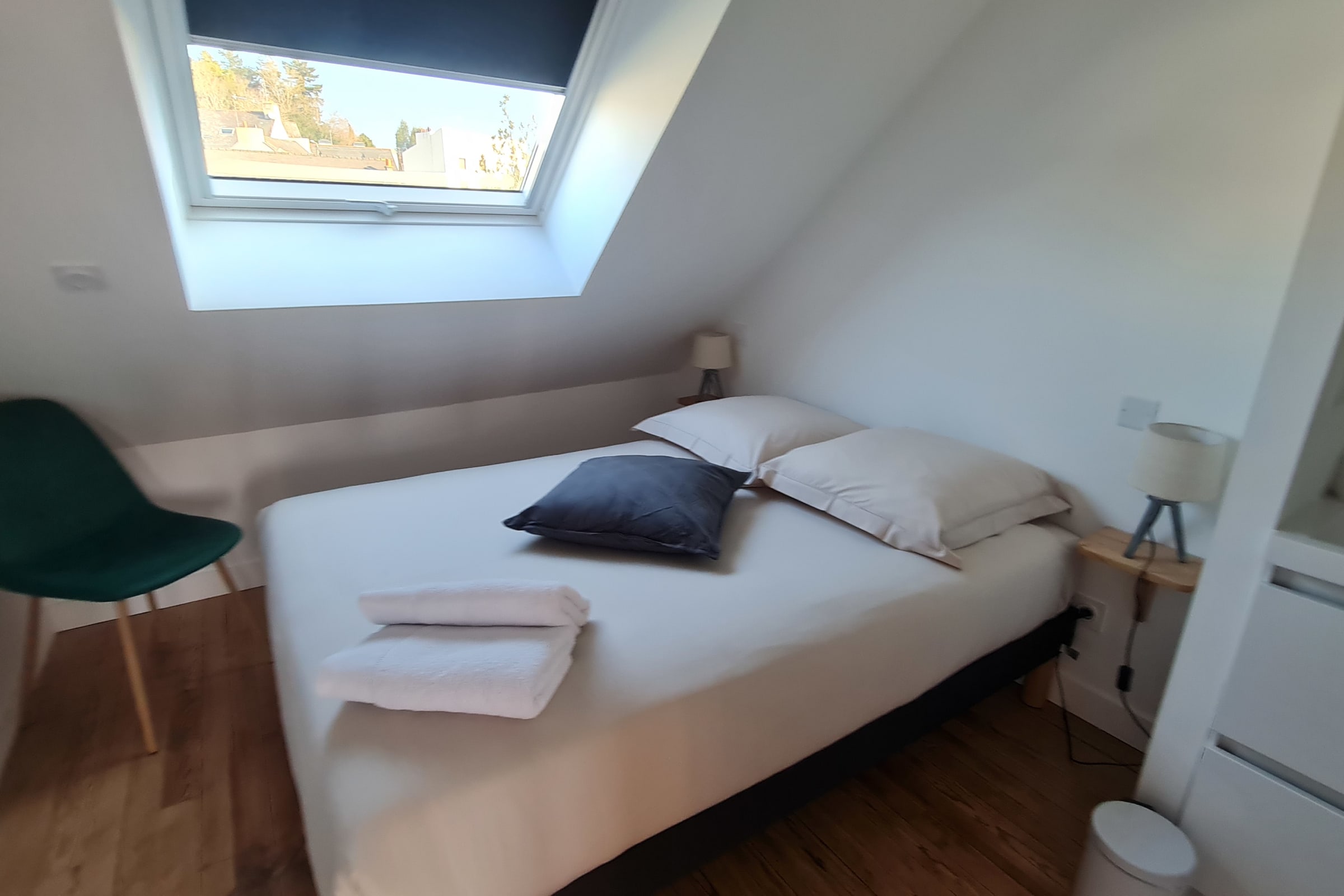- Une chambre avec un 140x190 Labélisée confort et coin salle de douche