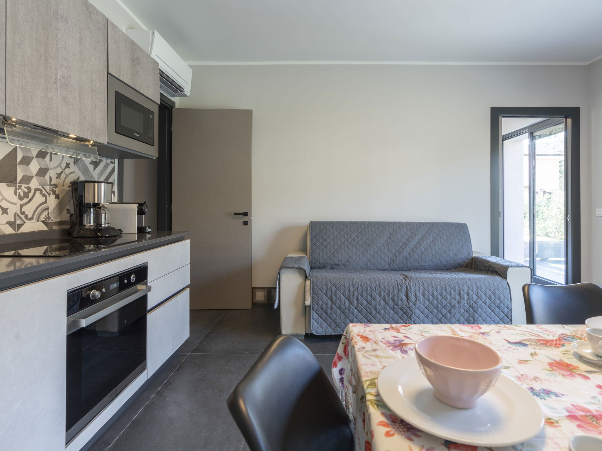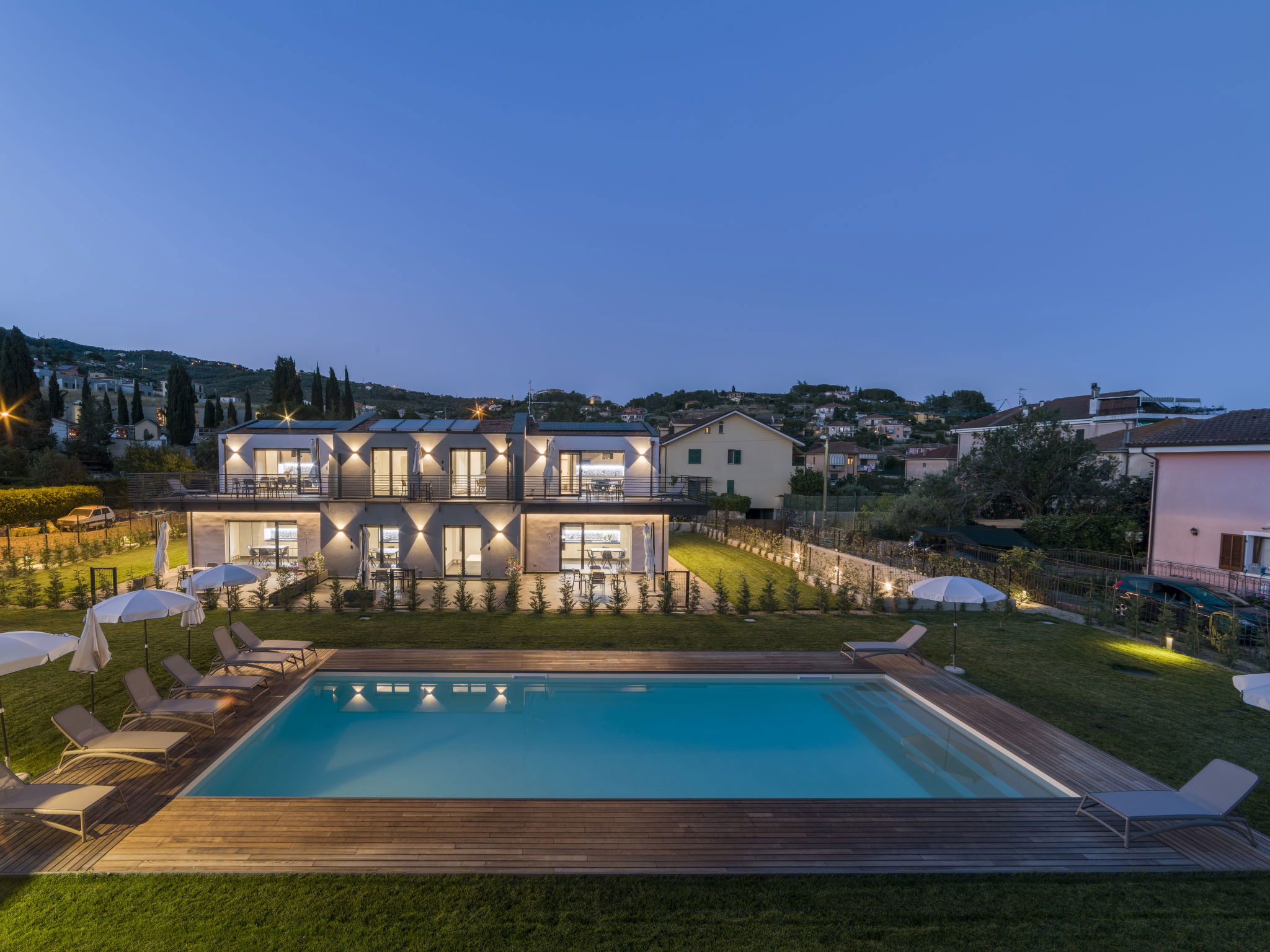 Résidence moderne, confortable "Al Bistrot dei Vinai", de 2 étages, année de construction 2022. 6 appartements dans la résidence. Dans le quartier de Caramagna, à 1.5 km du centre d'Imperia, à 25 km du centre de San Remo, à 90 km du centre de Nizza, situation ensoleillée dans un quartier résidentiel, à 1.5 km de la mer. En commun: grand jardin entretenu, 1'000 m2 (clôturé) avec pelouse et fleurs, pré, piscine (5 x 15 m, profondeur 140 cm, disponibilité saisonnière: 12.Avr. - 30.Sep.). Douche extérieure, meubles de jardin, barbecue, espace de jeux pour les enfants (toboggan), entretien de la piscine par le propriétaire/jardinier. Infrastructures de la Maison: ascenseur, réduit pour bicyclettes, air-conditionné, lave-linge, sèche-linge (en commun), location de bicyclettes. Nettoyage possible (en sus). Débarras disponible. Accès en voiture jusqu'à la maison. Place de parking (pour 6 voitures) sur le terrain, garage en commun. Magasins, magasin d'alimentation 600 m, supermarché 1 km, centre commercial 1 km, restaurant 2 km, bar 1 km, boulangerie 600 m, café 2 km, location de bicyclettes 2 km, arrêt de bus 100 m, gare ferroviaire "Imperia Oneglia" 6 km, plage de sable "Borgo Marina" 3 km plage de graviers "Borgo Prino" 2 km, baignade en lac "Laghetti di Lecchiore" 7 km. Piste cyclable 2 km. Attractions à proximité: Dolcedo Mountainbiken am Monte Faudo 7 km, Küstenradweg von Imperia bis Ospedaletti 2 km, Valloria das Dorf mit 150 bemalten Türen 10 km, Triora Hexendorf 45 km, Monte Carlo 75 km, San Remo 25 km. Région de randonnées: Monte Faudo (1149 m) Mountainbike Trails. Veuillez noter: voiture recommandée. Équipement pour bébés (inclus). D’autres appartements sont également proposés à la location dans cette maison de vacances.