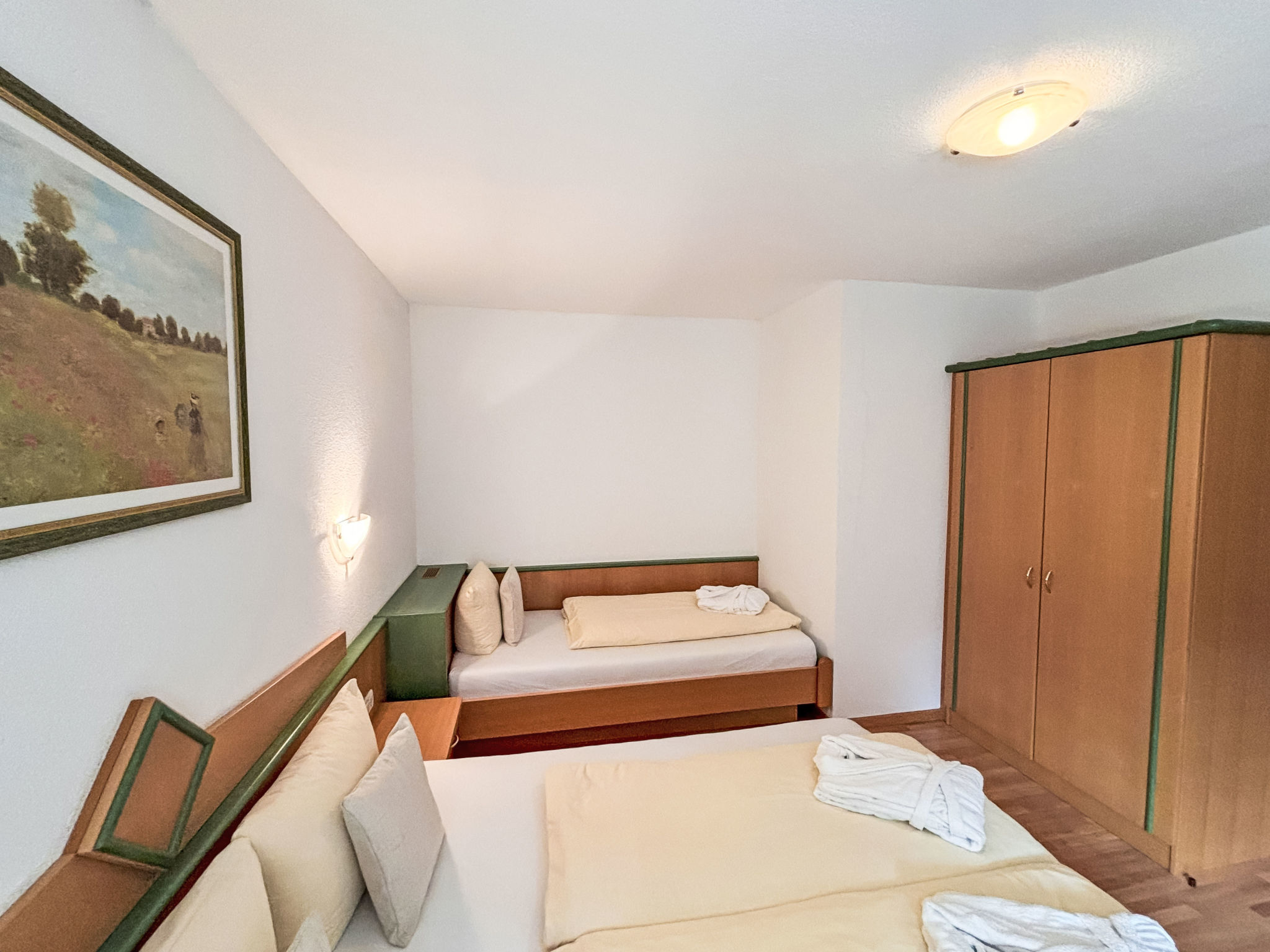 "Apart Edi", Appartement de 4 pièces 90 m2, au rez-de-chaussée. Aménagement plaisant: 2 chambres, chaque chambre avec: 1 lit double (180 cm, longueur 200 cm), TV (écran plat). 1 chambre avec 1 lit (90 cm, longueur 200 cm), 1 lit double (180 cm, longueur 200 cm), TV (écran plat). Cuisine/séjour (four, lave-vaisselle, 4 plaques vitrocéramiques, grille-pain, bouilloire électrique, micro-ondes, congélateur, cafetière électrique). Douche, douche/WC, WC séparé. Chauffage par énergie solaire, chauffage au fuel. Terrasse. Meubles de terrasse. Belle vue sur les montagnes. A disposition: sèche-cheveux. Internet (Connexion WIFI, gratuit). Veuillez noter: logement non-fumeur. Maximum 1 animal/ chien autorisé. Détecteur de fumée.
