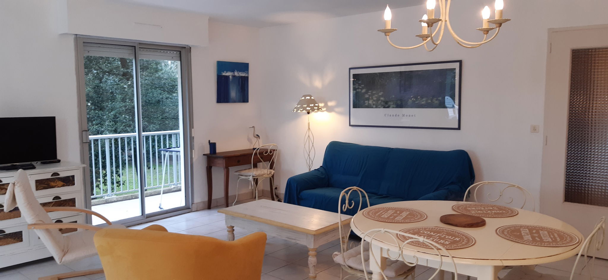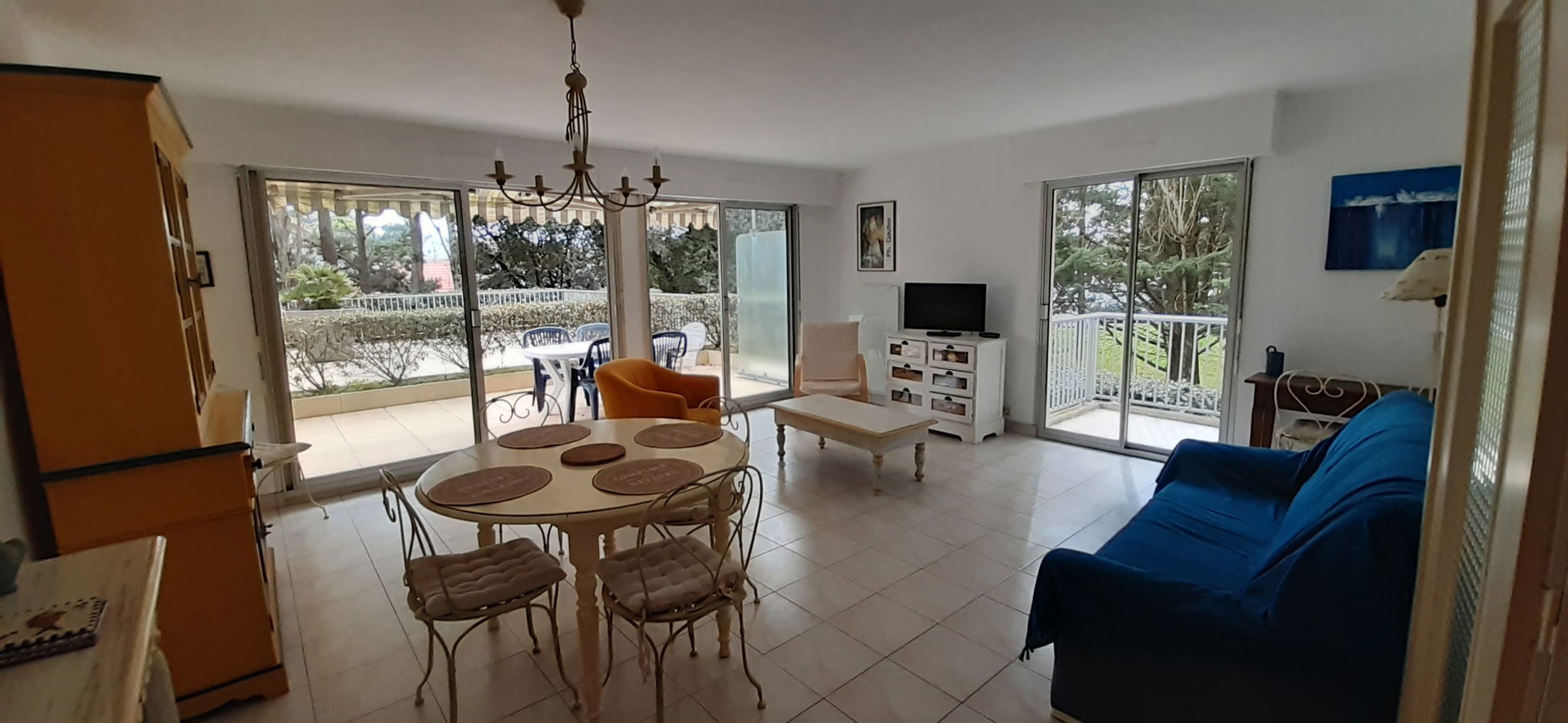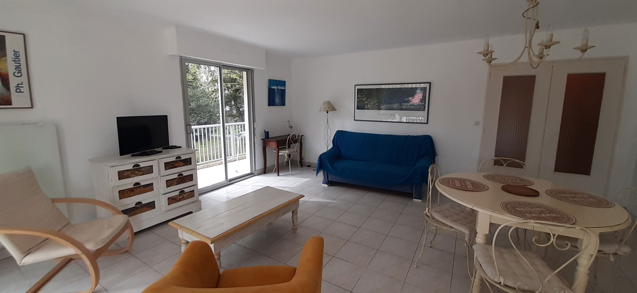 - Salon/Séjour (canapé lit en 140/190 + TV écran plat) ouvert sur belle terrasse Sud/Ouest (29m2)