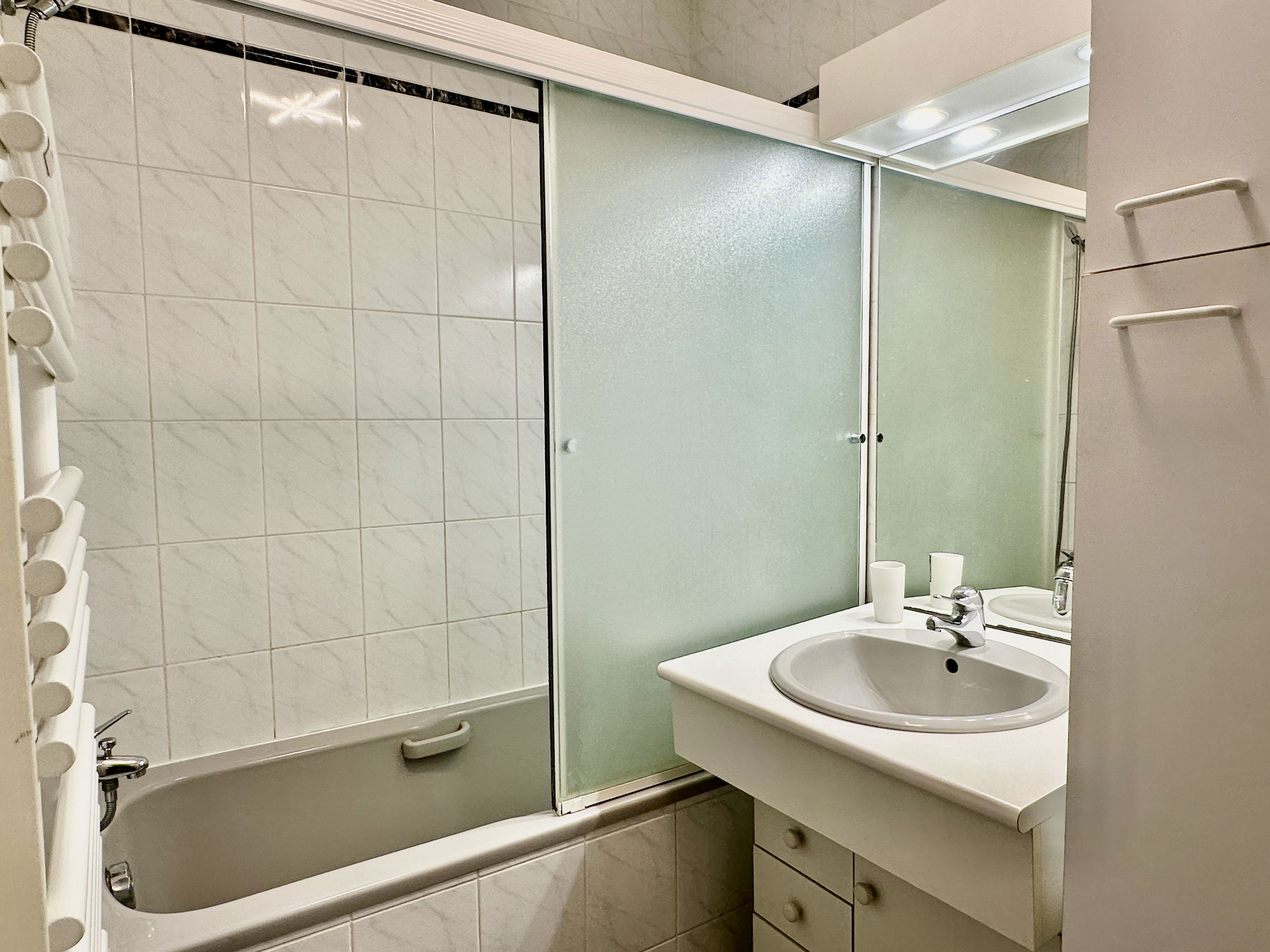 Entrée avec placard/penderie sur Pièce de vie avec télévision ouverte sur terrasse (avec mobilier extérieur + Chiliennes + Store Banne) avec Cuisine ouverte A/E (lave-vaisselle, réfrigérateur avec freezer, micro-ondes, plaque vitrocéramique 4 feux - Hotte - Four - Cafetière filtre - Canapé-lit 140/190) - Chambre avec lit 140/190 et placard/penderie sur terrasse - Salle de bain - WC. Parking privatif en sous-sol.