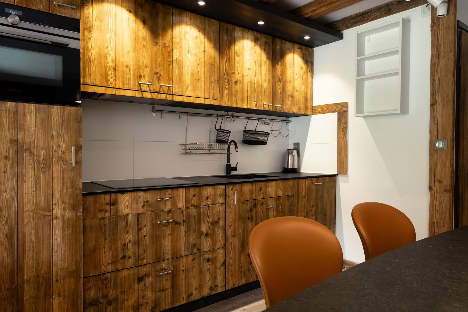 Équipements : Plaques à induction, four combiné micro-ondes, lave-vaisselle, réfrigérateur, cafetière Nespresso, appareils à fondue et raclette.
