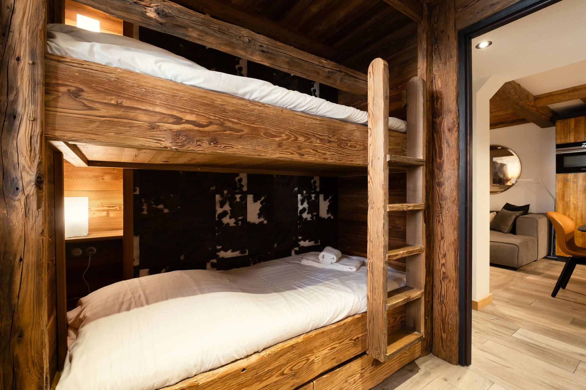 L’espace nuit comprend une chambre double (160 cm) avec accès direct à la terrasse, ainsi qu’une chambre équipée de deux lits simples (80 cm) et d’une salle d’eau attenante avec douche. Une chambre, doté de lits superposés (80 cm), accueille idéalement les enfants. Ces deux dernières pièces sont orientées vers la rue.