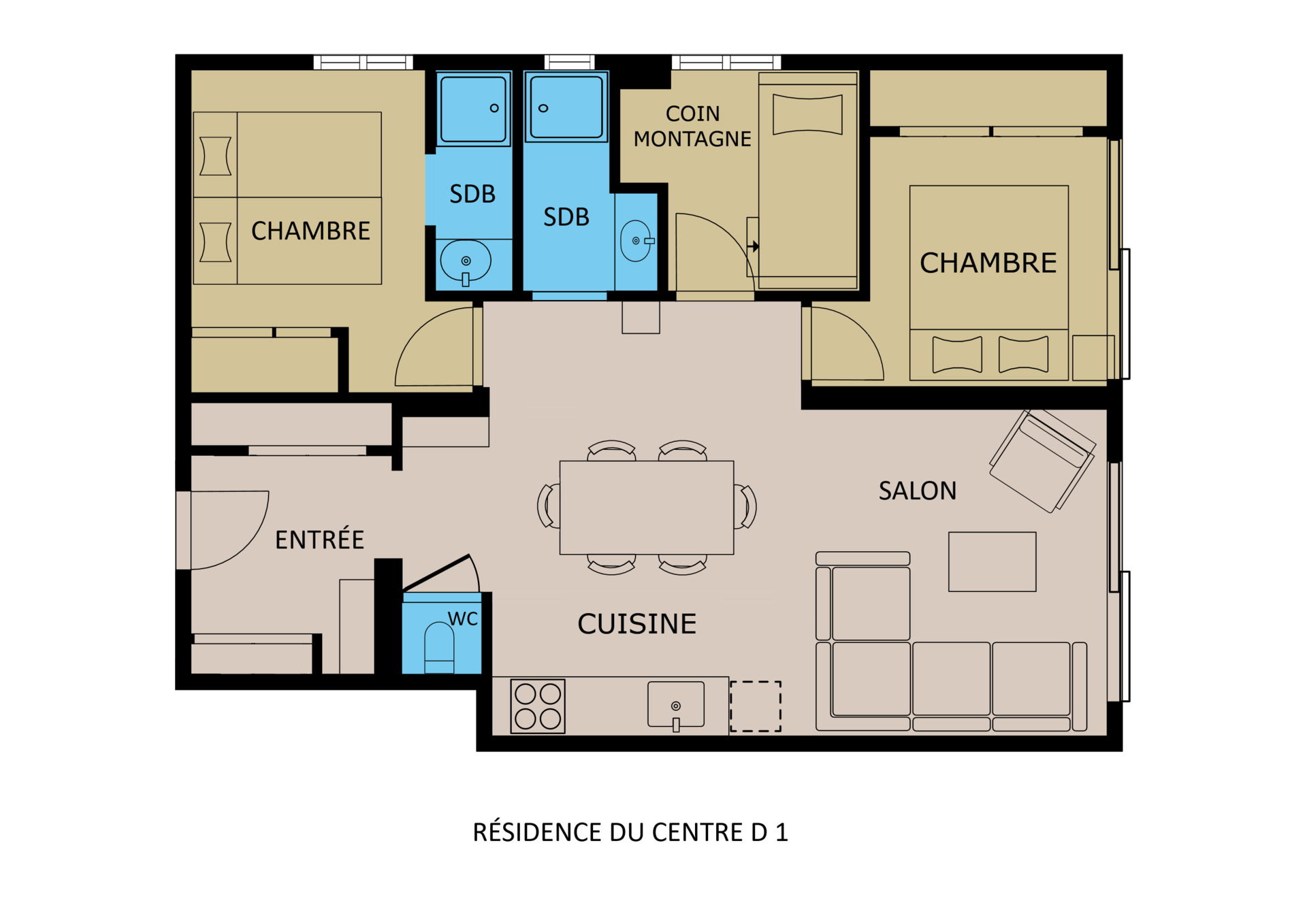 Idéalement situé en plein cœur du village de La Clusaz, l’appartement Résidence du Centre D n°1*** bénéficie d’un emplacement exceptionnel, à la fois calme et tout proche des pistes. À seulement 50 m des pistes, il offre un accès direct à toutes les activités sans avoir besoin de la voiture. Classé 3 étoiles et pouvant accueillir jusqu’à 6 voyageurs, cet appartement de 54 m², dispose de 3 chambres, alliant confort moderne, luminosité et ambiance chaleureuse, pour des vacances à la montagne tout simplement idéales.