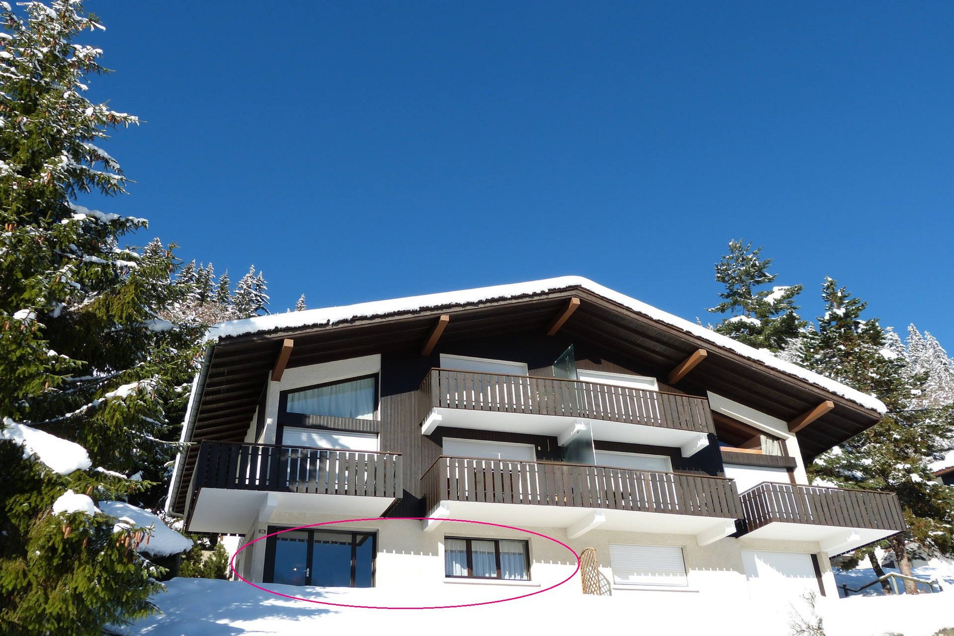 Accès à la résidence : L’accès se fait par un escalier extérieur (18 marches en été et 50 marches en hiver).