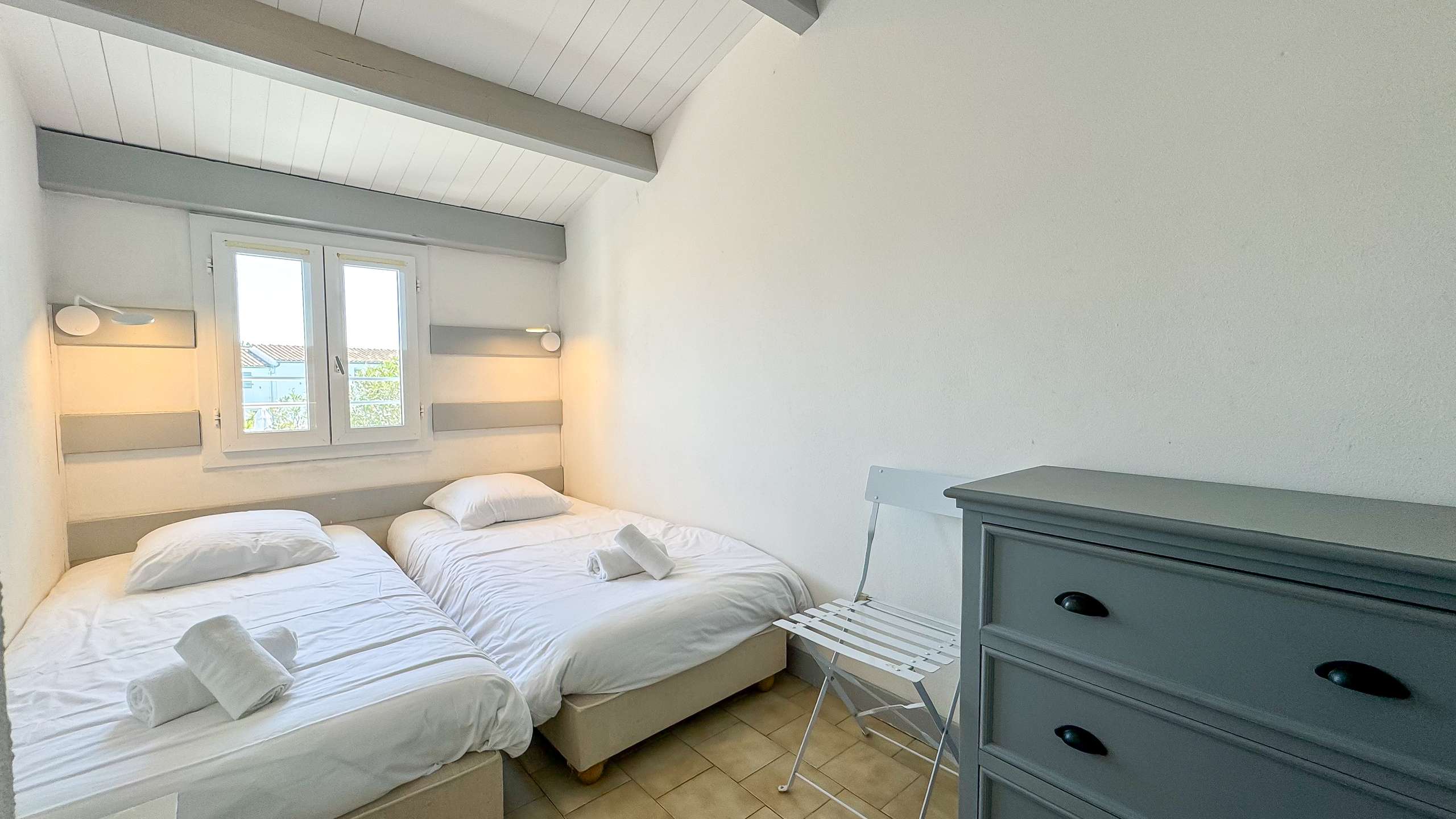CHAMBRE 2: (sud est) 5.60m² avec 2 lits de 80, commode.