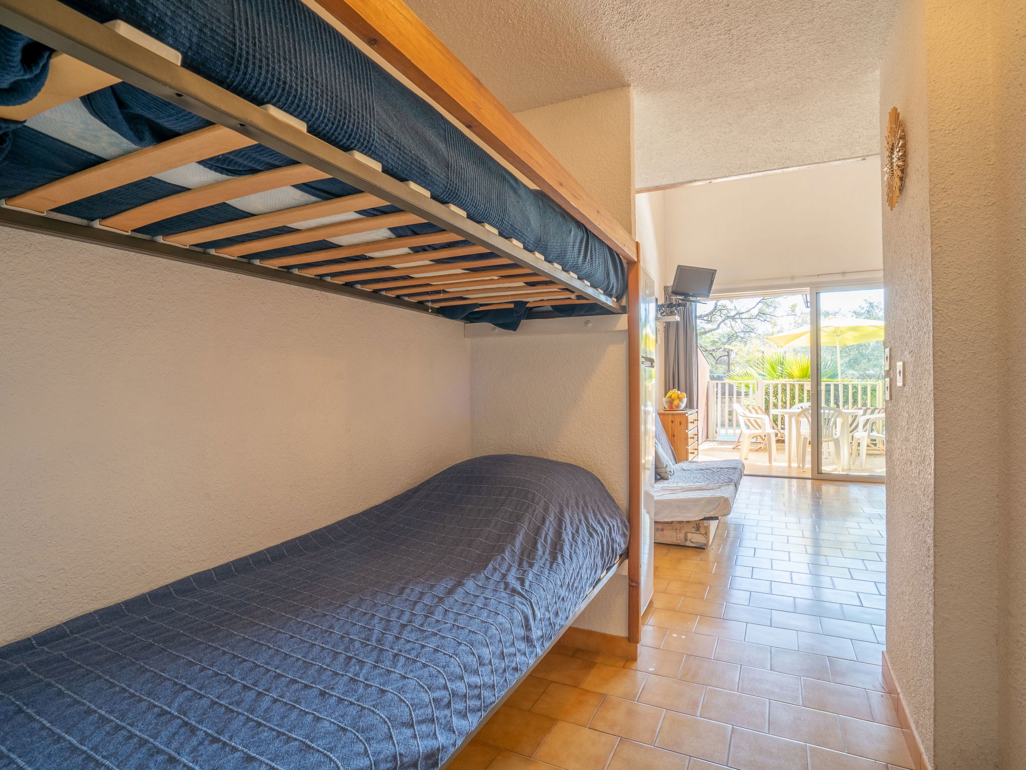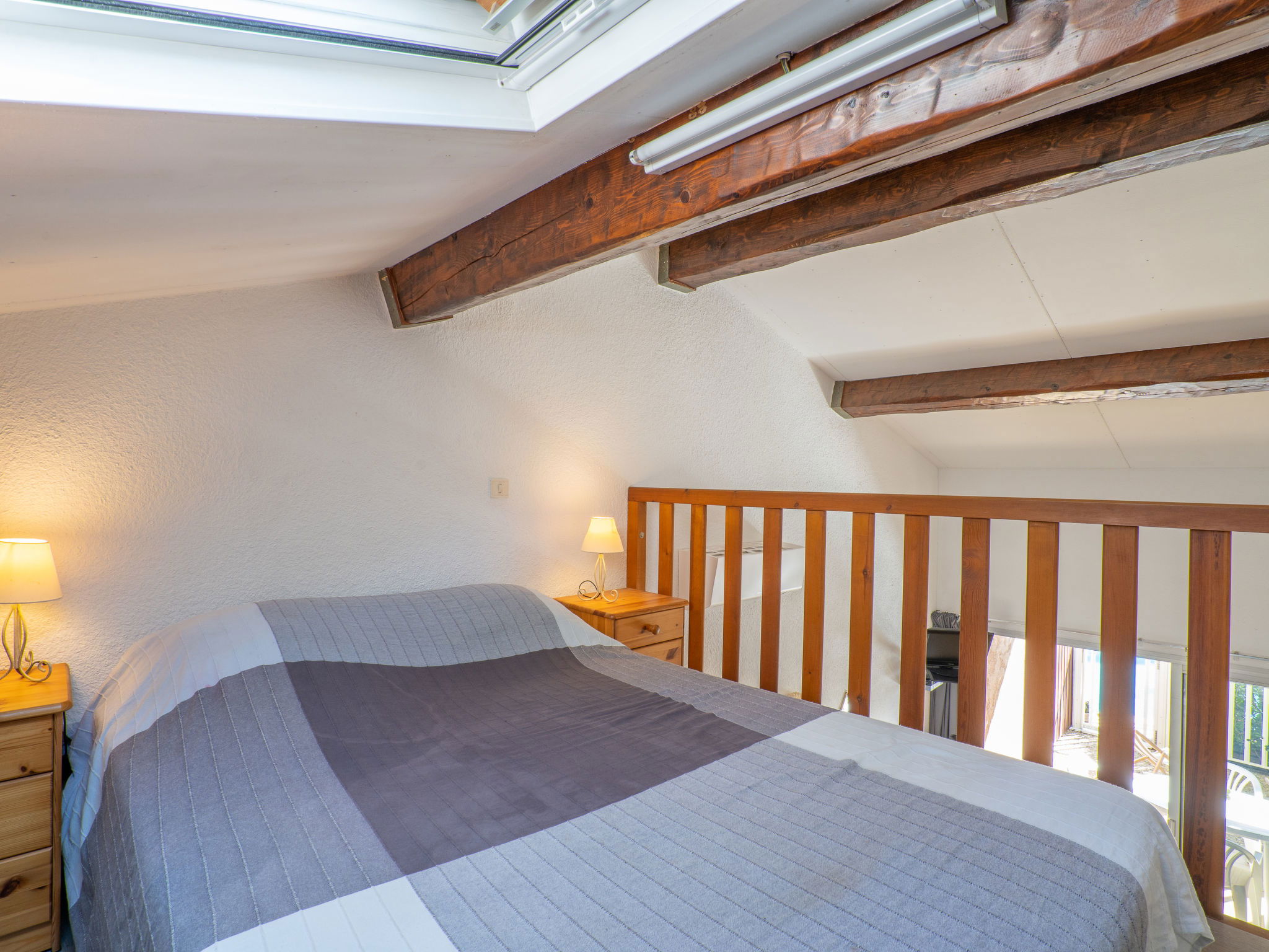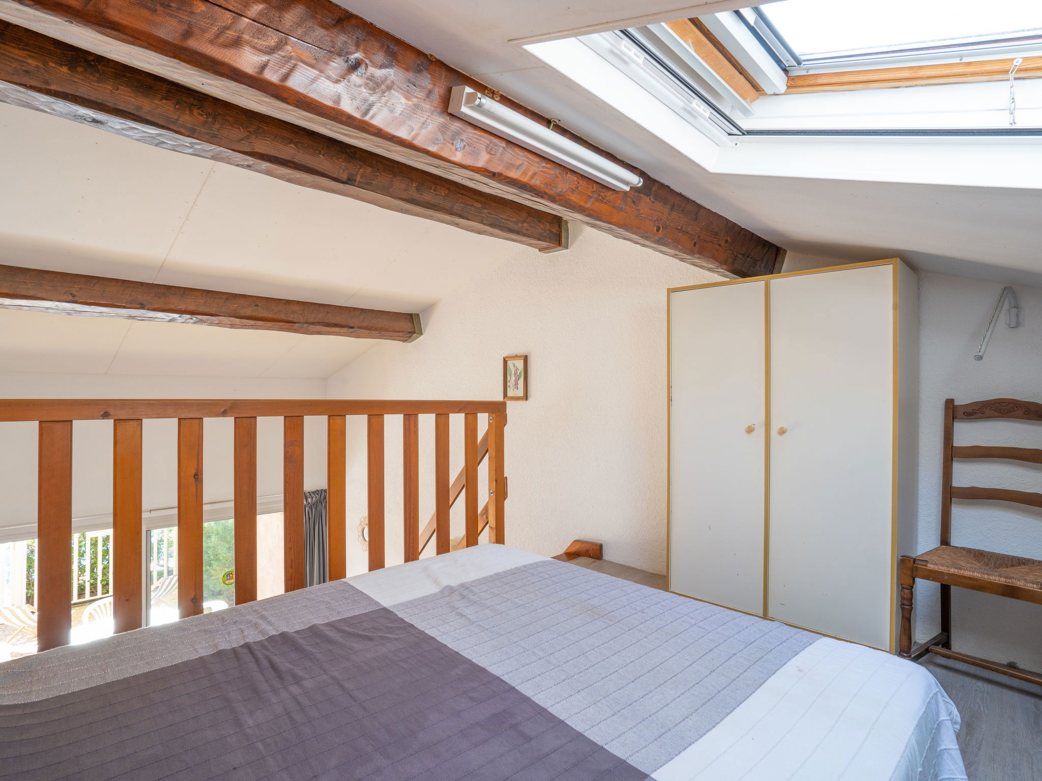 "Le Pin" studio 32 m2 sur 2 niveaux. Logement idéal pour 2 adultes + 2 enfants. Aménagement simple et fonctionnel: séjour/salle à manger avec table pour les repas et TV (satellite). Sortie sur la terrasse. Alcôve ouverte avec 1 x 2 lits superposés (70 cm, longueur 180 cm). Galerie mansardée avec 1 grand-lit. Coin cuisine (2 plaques de cuisson, four, lave-vaisselle, grille-pain, bouilloire électrique, micro-ondes, congélateur, cafetière électrique). Bain/WC. Chauffage électrique, air-conditionné. Balcon ou terrasse. Mobilier de balcon, chaises longues. A disposition: chaise haute pour enfant, lit bébé. Internet (Connexion WIFI). Veuillez noter: maximum 1 animal/ chien autorisé. Détecteur de fumée. Cette location est un exemple de location / d'appartement. Au lieu d'une chambre fermée, des espaces de couchage sont situés dans une zone ouverte (galerie, alcôve...). 8304800075301