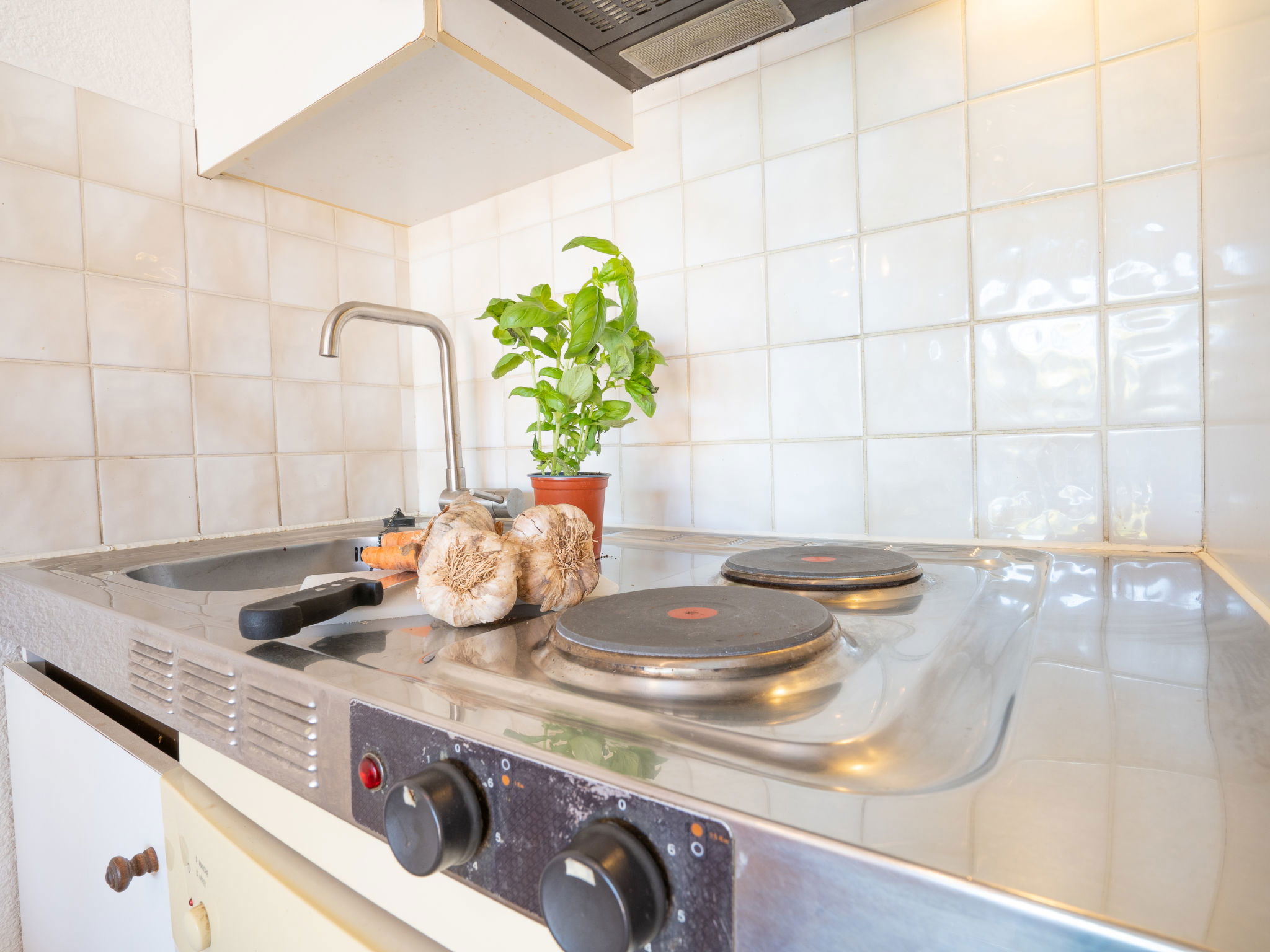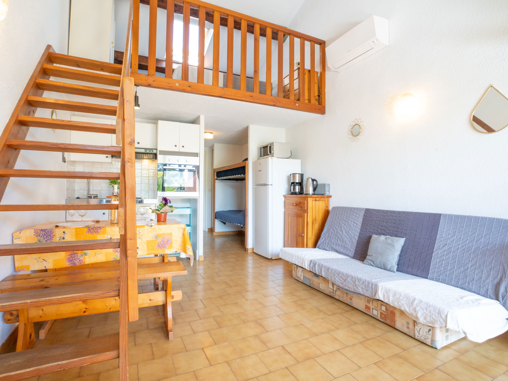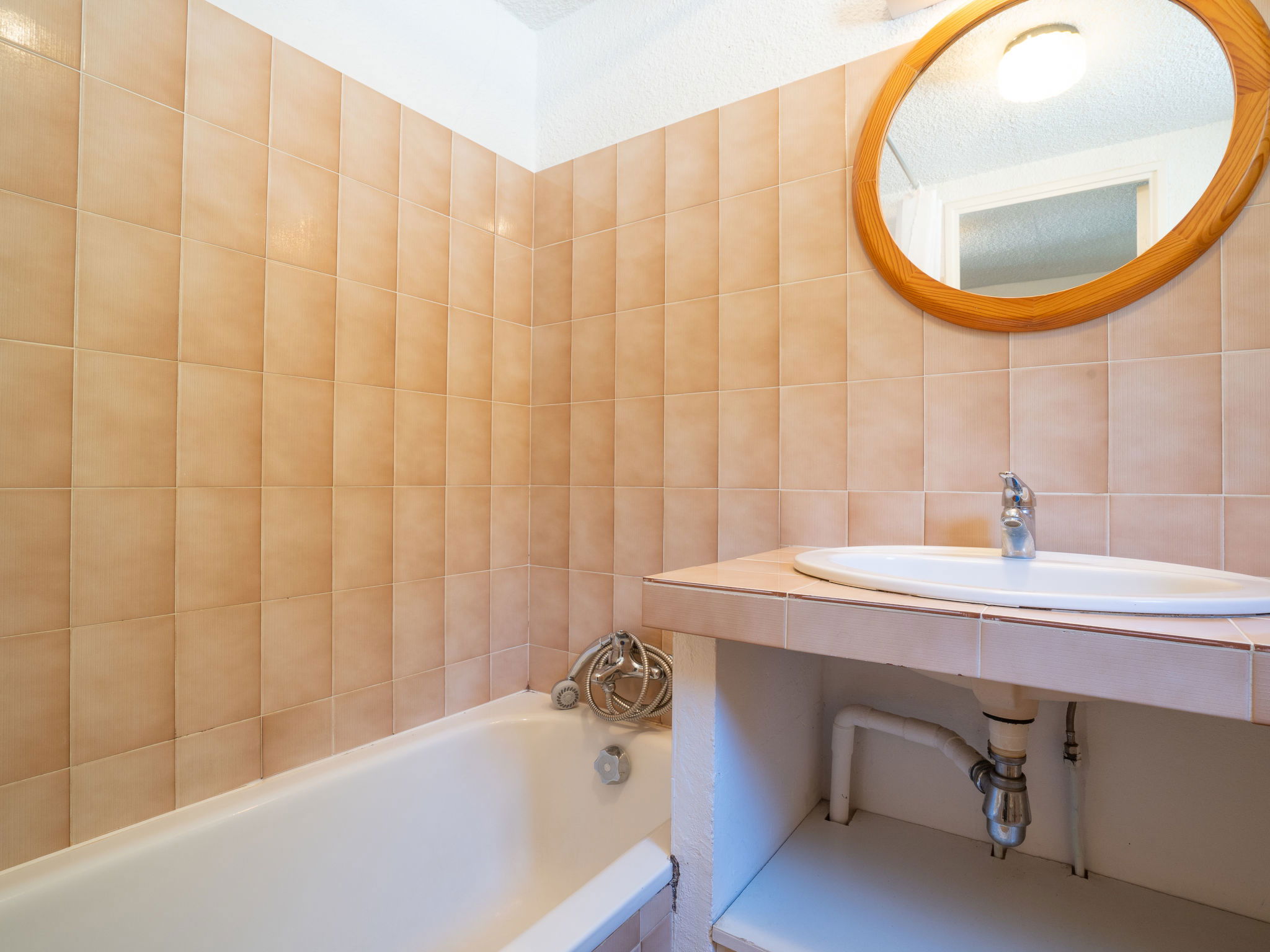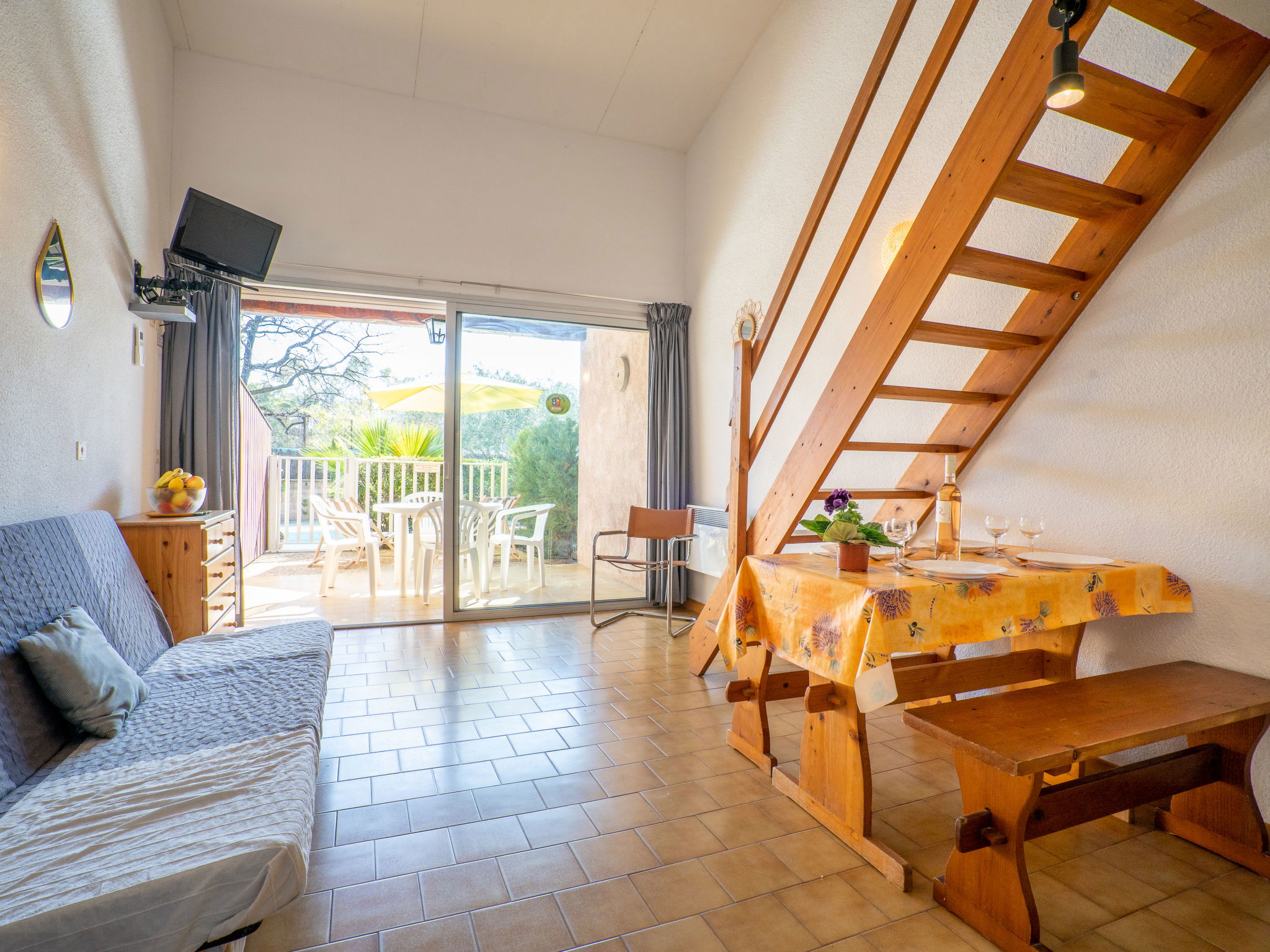 "Le Pin" studio 32 m2 sur 2 niveaux. Logement idéal pour 2 adultes + 2 enfants. Aménagement simple et fonctionnel: séjour/salle à manger avec table pour les repas et TV (satellite). Sortie sur la terrasse. Alcôve ouverte avec 1 x 2 lits superposés (70 cm, longueur 180 cm). Galerie mansardée avec 1 grand-lit. Coin cuisine (2 plaques de cuisson, four, lave-vaisselle, grille-pain, bouilloire électrique, micro-ondes, congélateur, cafetière électrique). Bain/WC. Chauffage électrique, air-conditionné. Balcon ou terrasse. Mobilier de balcon, chaises longues. A disposition: chaise haute pour enfant, lit bébé. Internet (Connexion WIFI). Veuillez noter: maximum 1 animal/ chien autorisé. Détecteur de fumée. Cette location est un exemple de location / d'appartement. Au lieu d'une chambre fermée, des espaces de couchage sont situés dans une zone ouverte (galerie, alcôve...). 8304800075301