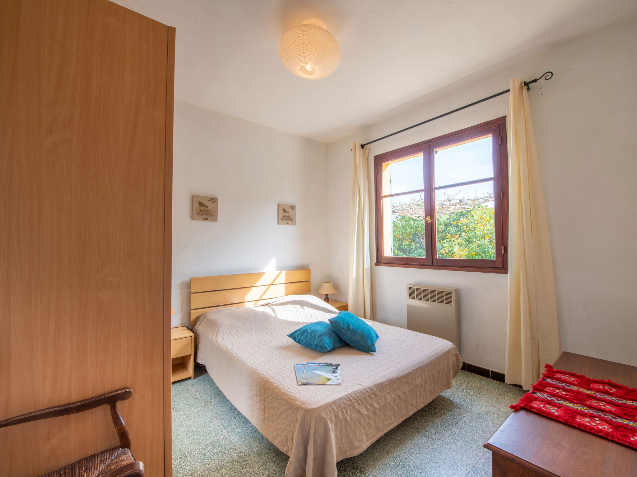 Appartement de 4 pièces 75 m2, au rez-de-chaussée. Aménagement agréable: séjour/salle à manger avec table pour les repas et TV (écran plat), air-conditionné. Sortie sur le jardin. 1 chambre avec 1 grand-lit (140 cm, longueur 190 cm), air-conditionné. 1 chambre avec 1 grand-lit (135 cm, longueur 190 cm), air-conditionné. 1 chambre avec 2 lits (90 cm, longueur 190 cm), air-conditionné. Cuisine (four, lave-vaisselle, 4 feux, grille-pain, bouilloire électrique, micro-ondes, congélateur, cafetière électrique). Douche, WC séparé. Chauffage électrique. Grand jardin, situation sud. Meubles de terrasse, chaises longues (4). Belle vue sur le jardin et les vignes. A disposition: fer à repasser, chaise haute pour enfant, lit bébé jusqu'à 2 ans, sèche-cheveux. Internet (Connexion WIFI, gratuit). Place de parking (cloturée, 3 Voitures). Veuillez noter: maximum 1 animal/ chien autorisé. Détecteur de fumée. 8304800075213