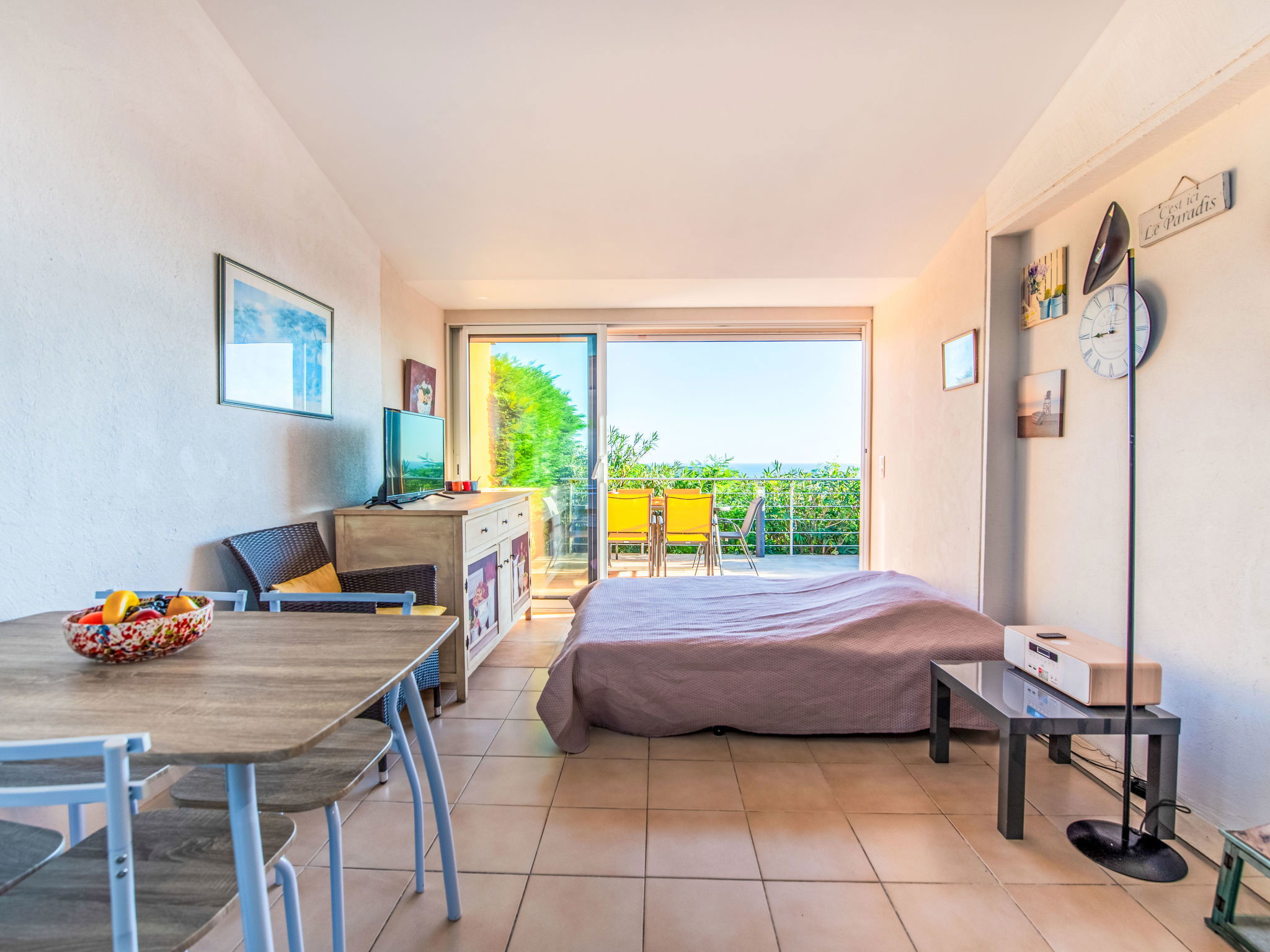 La piscine se trouve à environ 500 mètres de l'appartement. Résidence accueillante, confortable "Colline Valmer". Dans la localité, à 1.8 km du centre de La Croix Valmer, situation ensoleillée sur une colline, à 3.5 km de la mer, à 3.5 km de la plage. En commun: piscine rectangulaire (25 x 10 m, profondeur 130 - 250 cm, disponibilité saisonnière: 01.Jun. - 30.Sep.). Bassin pour les enfants, tennis. Magasins 300 m, magasin d'alimentation 150 m, supermarché 850 m, centre commercial 7.1 km, restaurant 100 m, bar, boulangerie 150 m, arrêt de bus "ROND POINT DU DABARQUEMENT" 3.7 km, plage de sable "Plage de Gigaro" 3.5 km, parc "Aqualand" 17.9 km, piscine 500 m. Port plaisance 5.6 km, ecole de voile 5.3 km, tennis 500 m, golf miniature 7.6 km, centre équestre 5.7 km. Attractions à proximité: Azur Park, Paint-ball 7 km, Bowling à Port-Grimaud 9.7 km, St-Tropez 12 km, St-Maxime 15.8 km. Région de randonnées: Sentier du Fenouillet 8 km, Sentier du littoral 2.8 km, Toulon 67.3 km. La remise des clés a lieu à l’agence de Cavalaire, 6 km.