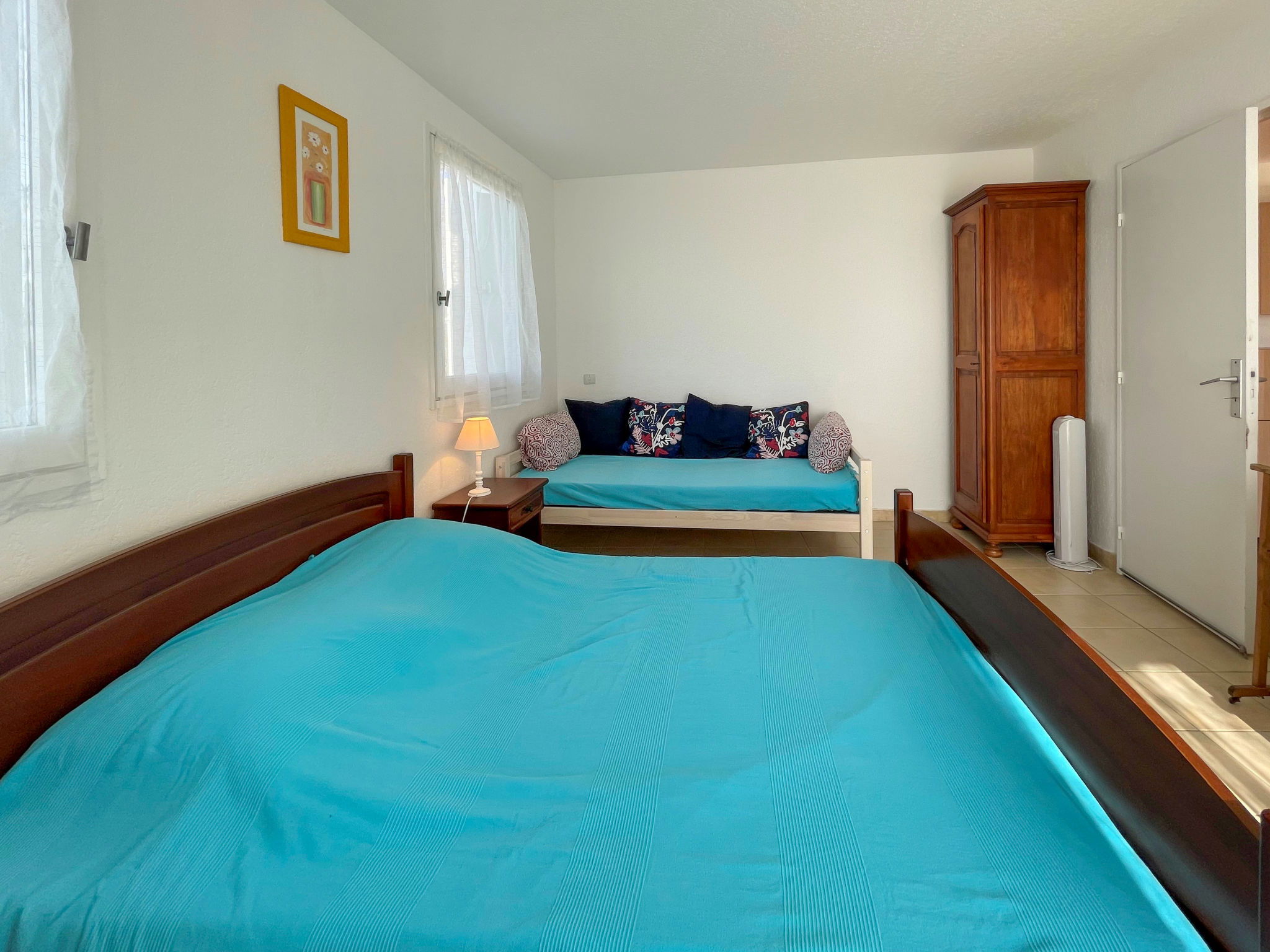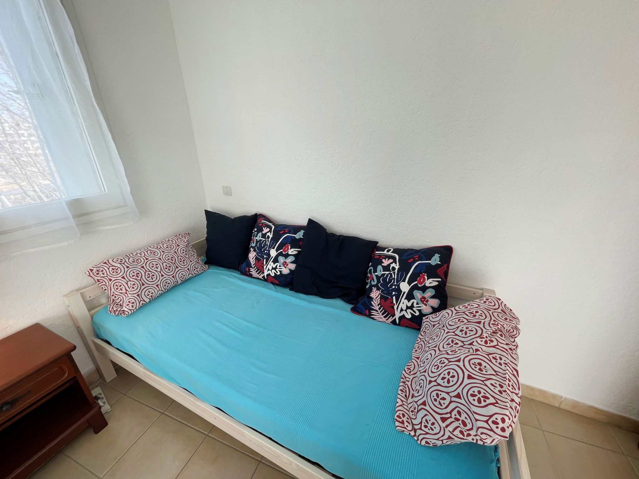 Appartement de 3 pièces 67 m2 au 3ème étage. Partiellement rénové: séjour/salle à manger avec TV (écran plat). 1 chambre avec 1 grand-lit (140 cm, longueur 190 cm). 1 chambre avec 1 lit (90 cm, longueur 190 cm), 1 grand-lit (140 cm, longueur 190 cm). Coin cuisine (four, lave-vaisselle, 3 plaques vitrocéramiques, grille-pain, bouilloire électrique, micro-ondes, congélateur, cafetière électrique). Douche, WC séparé. Chauffage électrique. Terrasse 6 m2, couverte, grande terrasse 50 m2, situation sud. Meubles de terrasse. Belle vue sur la mer. A disposition: lave-linge. Internet (Connexion WIFI, en sus). Garage, hauteur 180 cm, largeur 390 cm. Veuillez noter: maximum 1 animal/ chien de petite taille autorisé. Détecteur de fumée.