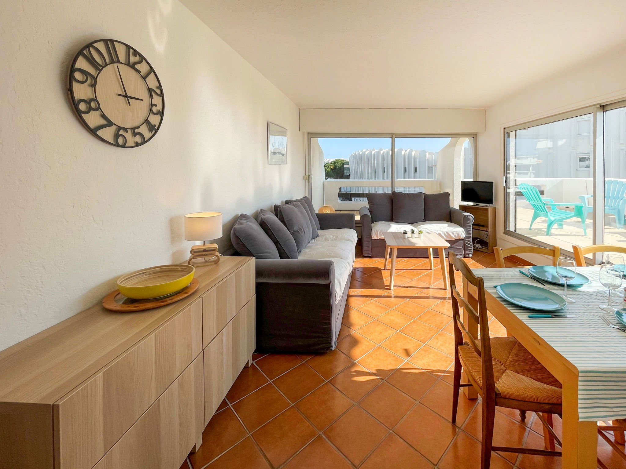 Résidence "Jardins d'Ulysse II", de 5 étages. Dans le quartier de la Motte du Couchant, à 1 km du centre, à 100 m de la mer, à 80 m de la plage. Infrastructures de la résidence: ascenseur. Centre commercial 50 m, restaurant, centre à 25 minutes à pieds, arrêt de bus 400 m, gare ferroviaire "Montpellier" 25 km, plage de sable, piscine couverte 3 km, centre thermal "Thalasso Spa" 3 km. Port plaisance 900 m, terrain de golf (18 trous) 3.5 km, ecole de voile 900 m, tennis 3 km, centre équestre 1 km. Attractions à proximité: Le Seaquarium du Grau Du Roi 10 km, Les Remparts d'Aigues Mortes 12 km, Les Saintes Maries de la Mer 40 km. Veuillez noter: Aéroport à proximité 20 km de la maison.