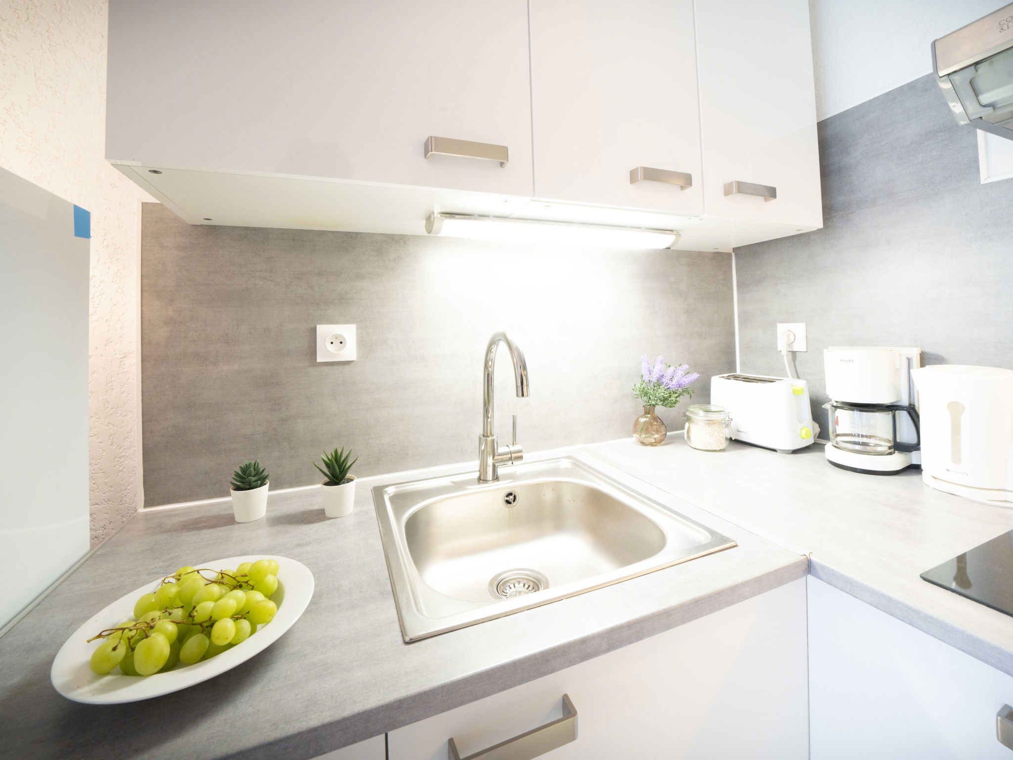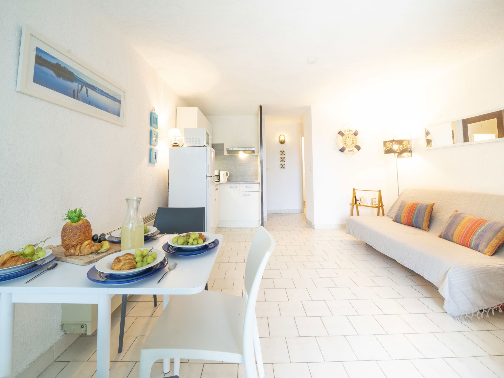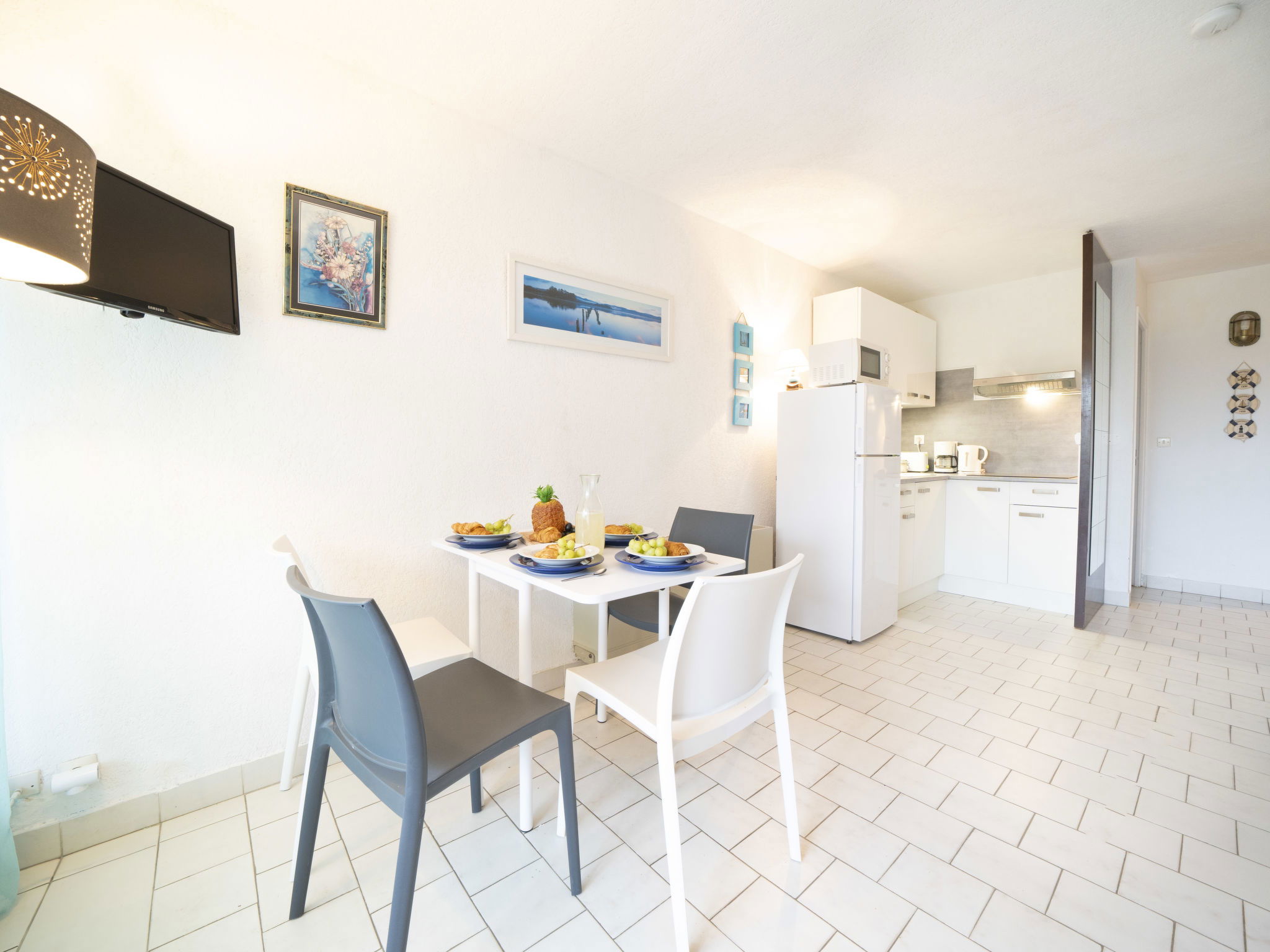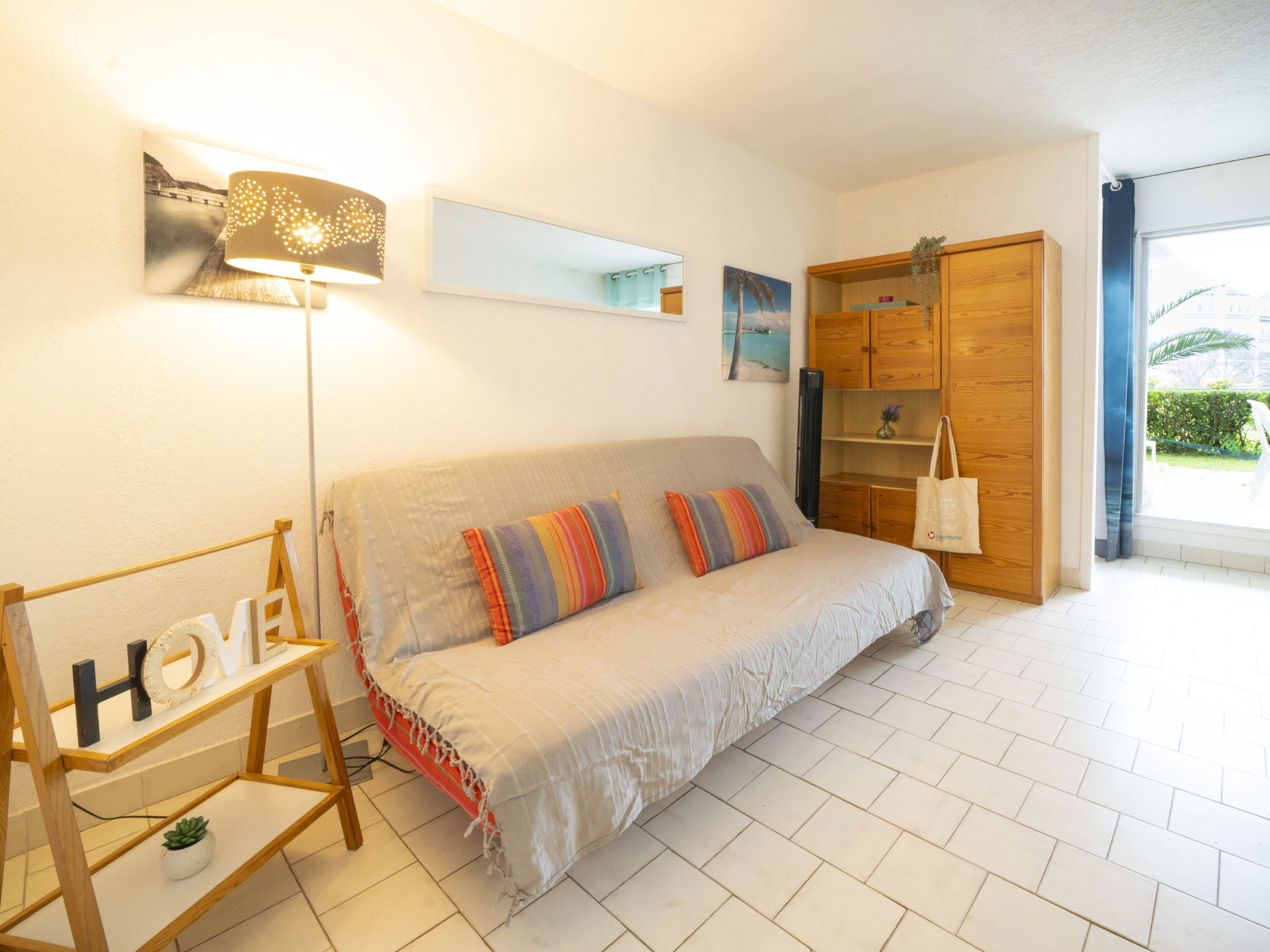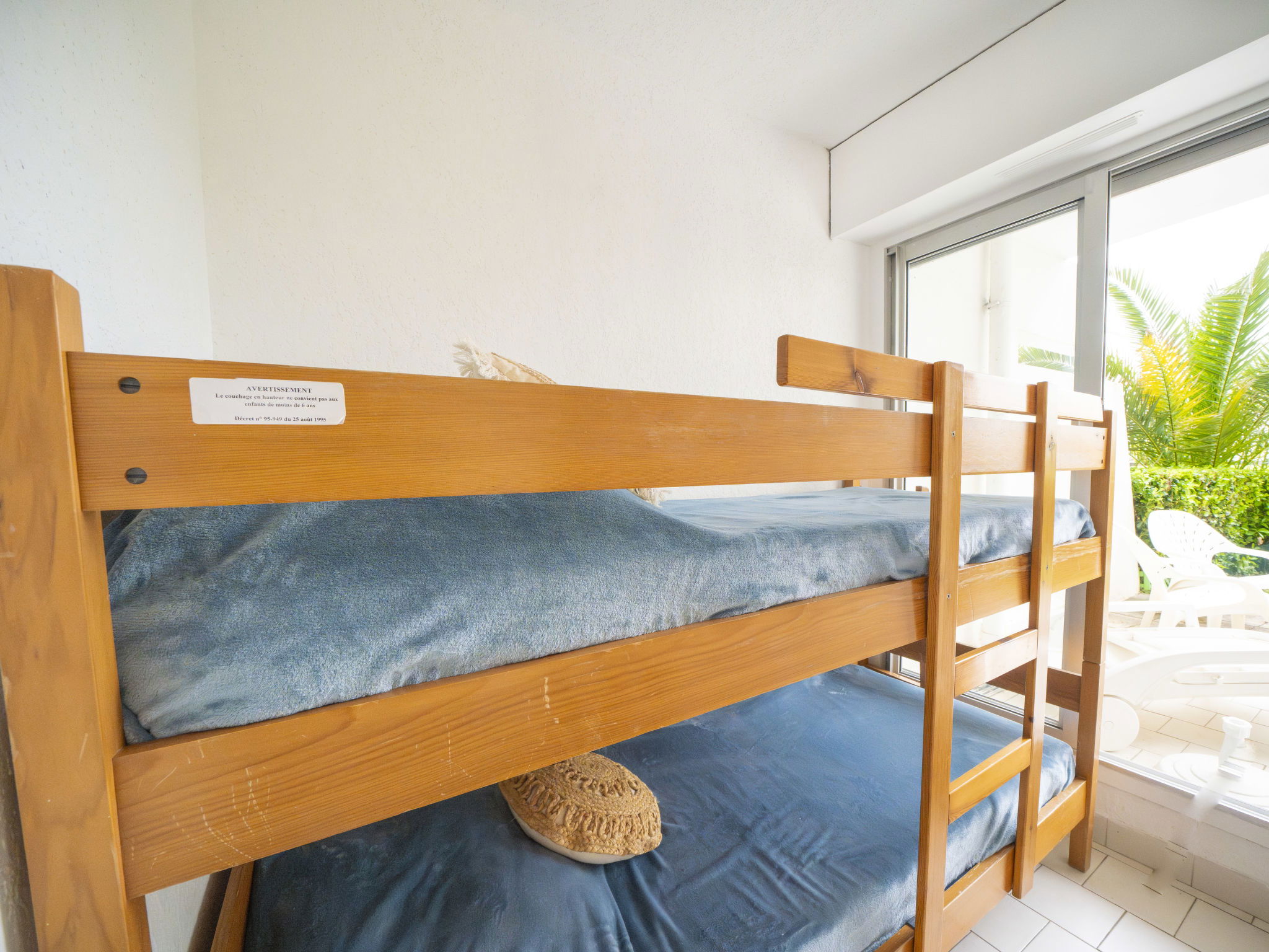 Studio 25 m2. Séjour/salle à manger avec 1 divan-lit double (140 cm, longueur 190 cm), TV (écran plat). Sortie sur le jardin. Cabine avec 1 x 2 lits superposés (80 cm, longueur 190 cm). Coin cuisine (3 plaques de cuisson, four, grille-pain, bouilloire électrique, micro-ondes, congélateur, cafetière électrique). Douche, WC séparé. Chauffage électrique. Jardinet 15 m2, situation sud. A disposition: lave-linge. Internet (Connexion WIFI, en sus). Place de parking. Veuillez noter: maximum 1 animal/ chien de petite taille autorisé. Détecteur de fumée. Au lieu d'une chambre fermée, des espaces de couchage sont situés dans une zone ouverte (galerie, alcôve...). 04 11 659 500 455