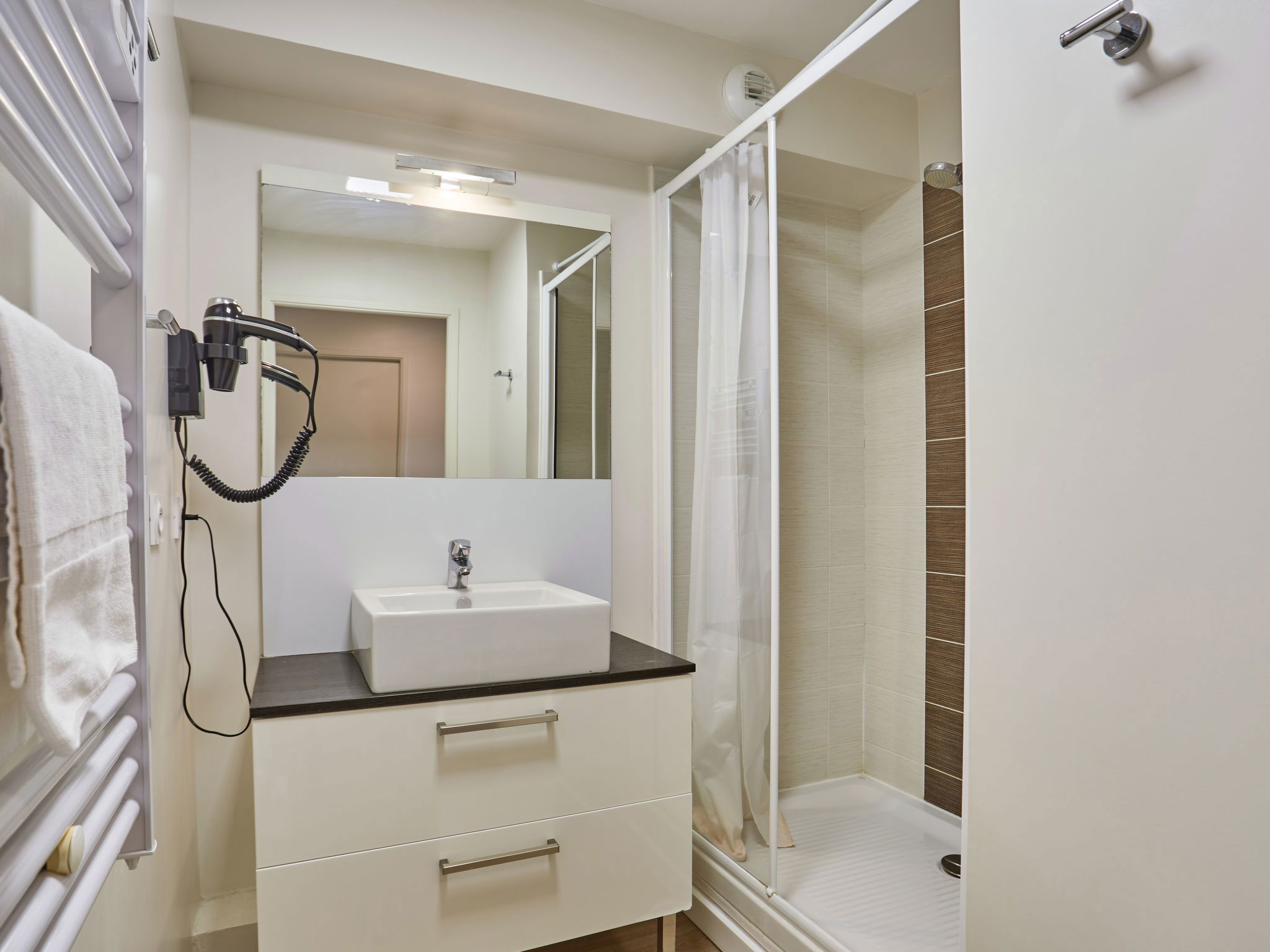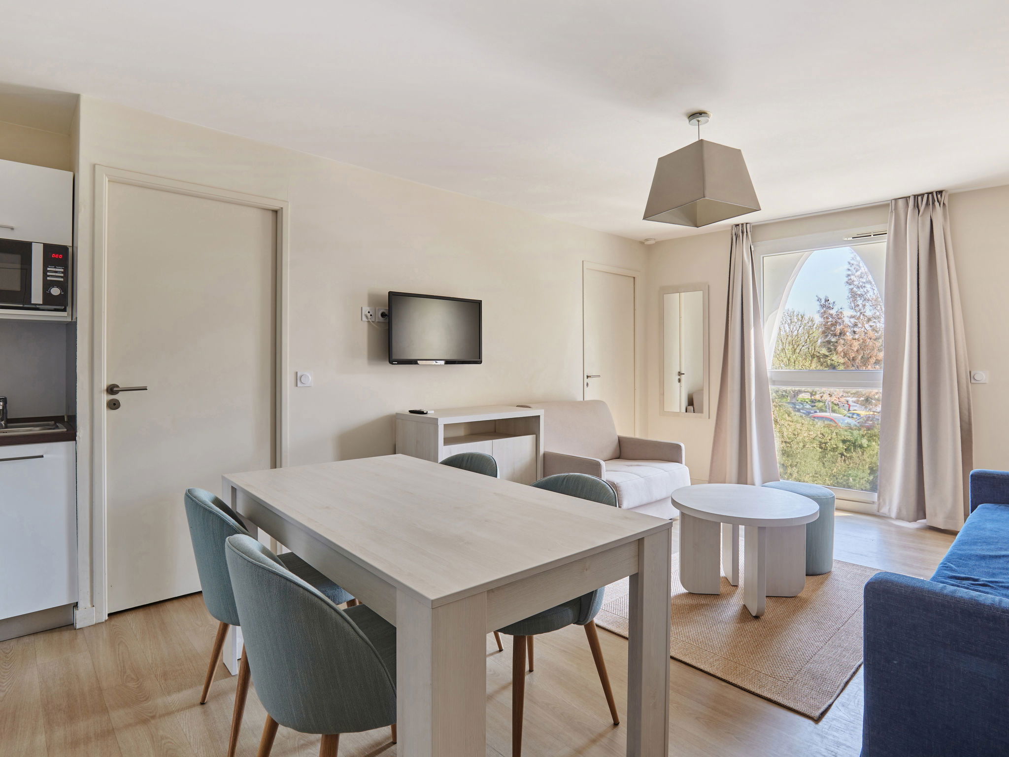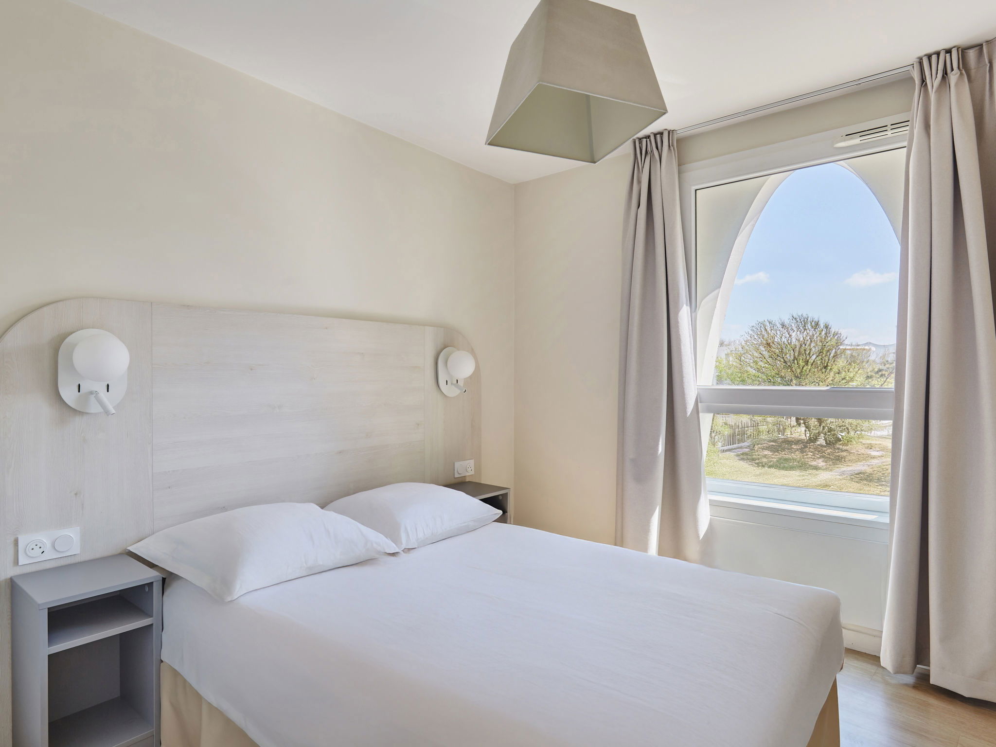 "Odalys Référence du Soleil", Appartement de 3 pièces 62 m2. Aménagement confortable: séjour/chambre à coucher avec 1 divan-lit double, 1 couchage, table pour les repas, TV et air-conditionné. Sortie sur le balcon, sur la terrasse. 1 chambre avec 1 grand-lit (160 cm), douche/WC. 1 chambre, sans fenêtre avec 1 x 2 lits superposés. Petite cuisine ouverte (lave-vaisselle, 4 plaques vitrocéramiques, bouilloire électrique, micro-ondes, cafetière électrique). Douche, WC séparé. Chauffage électrique. Balcon. Mobilier de balcon. A disposition: chaise haute pour enfant, lit bébé, sèche-cheveux. Internet (Connexion WIFI, gratuit). Veuillez noter: logement non-fumeur. Maximum 1 animal/ chien autorisé. Détecteur de fumée, extincteur.