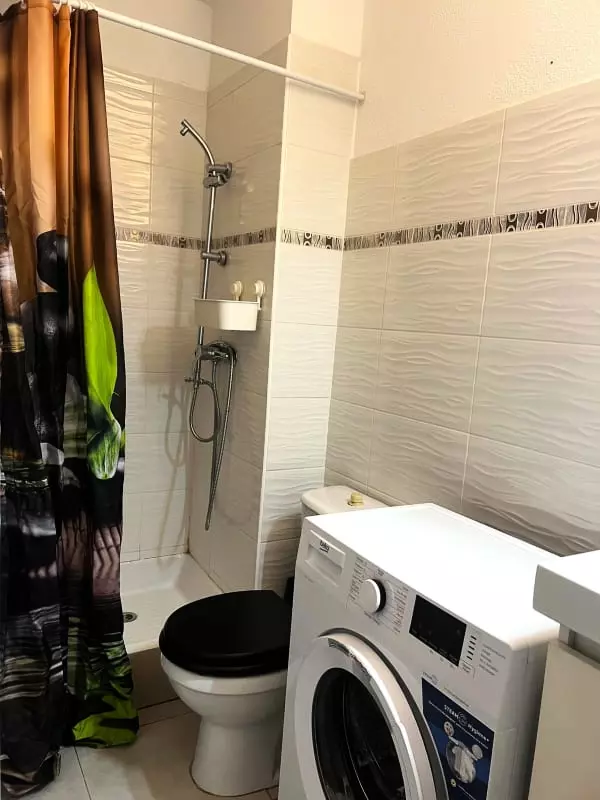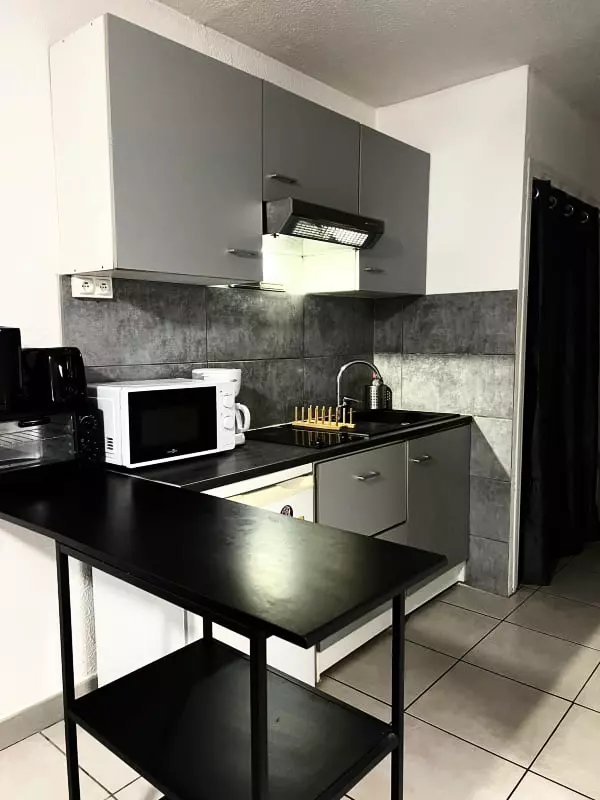 Vous disposerez d’une salle de bain, ainsi que d’une cuisine équipée avec four, micro-ondes et machine à café pour préparer vos repas en toute simplicité. Un lave-linge est également à votre disposition, un véritable atout pour les séjours prolongés.
