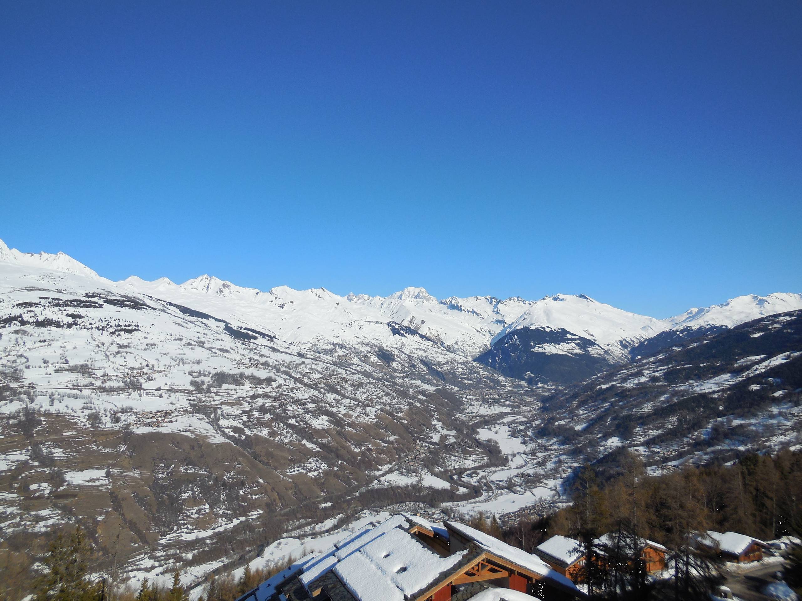 Le balcon avec vue sur le Mont Blanc et la vallée est exposé Nord. Le casier à skis est dans la résidence.