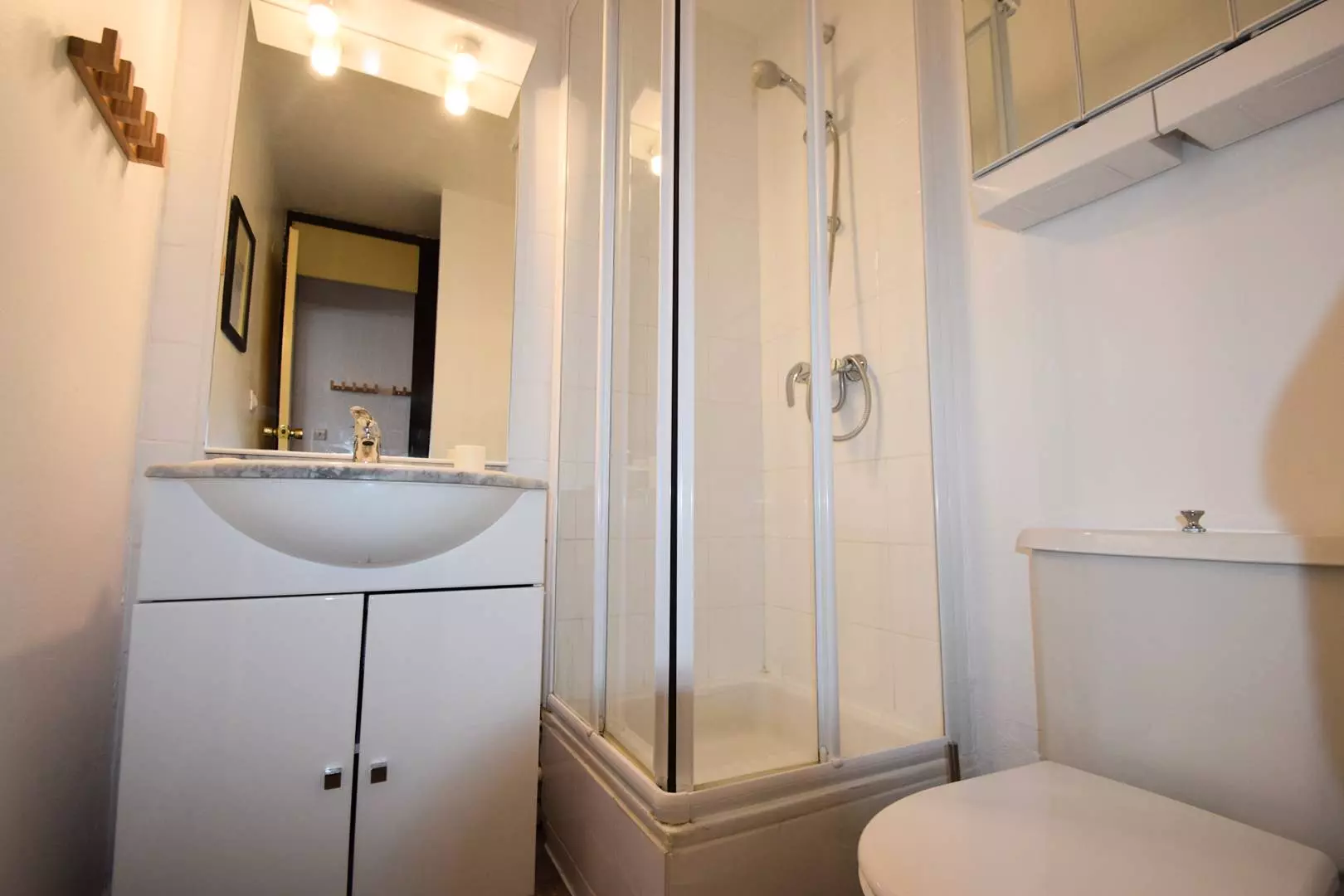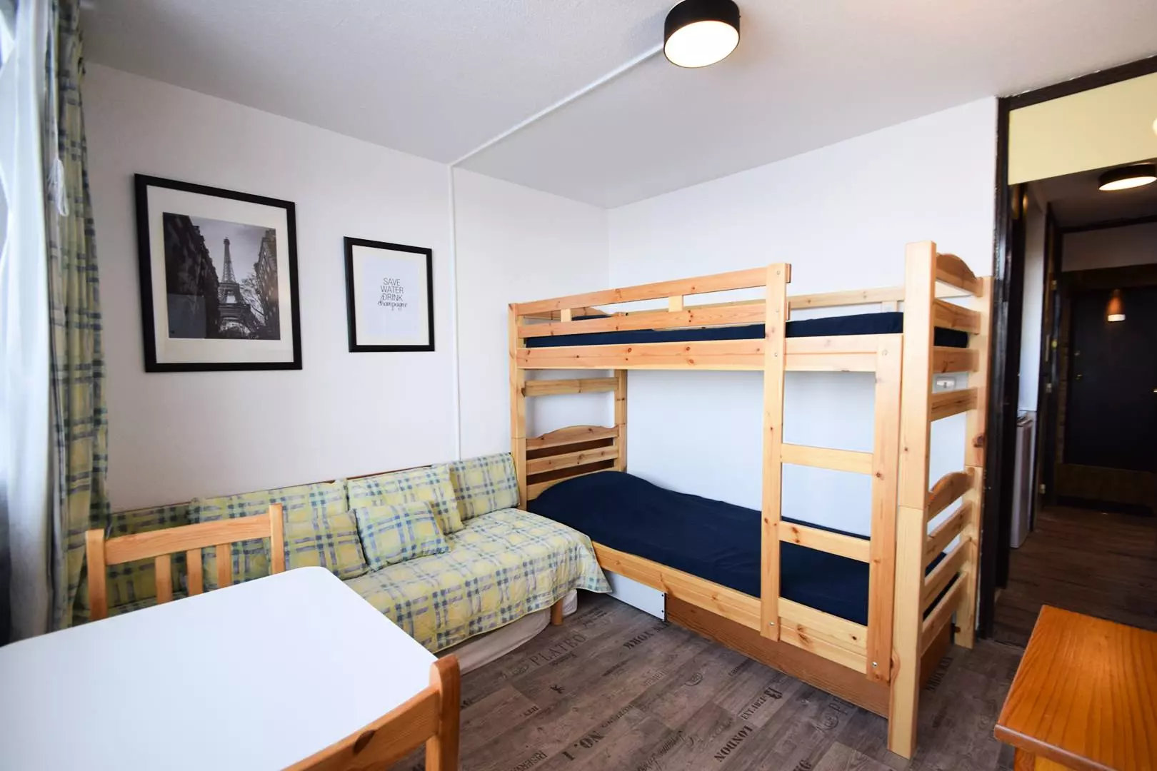 Studio 2/3 pers, 15m2, exposé Nord vue sur la vallée et le Mont Blanc, avec balcon, au 3ème étage, Cuisine : dans couloir, 2 plaques élect, réfrigérateur, four micro-ondes Séjour : coin repas, 1 lit banquette 1 pers et 2 lits superposés-Télévision, Salle de bains : cabine de douche, WC inclus - Les sols : plastique sauf séjour : moquette - Literie :couettes et couvertures - Ménage de fin de séjour, draps, serviettes et forfaits ski sont en option - Appt non fumeur - Studio avec très belle vue sur le Mont Blanc