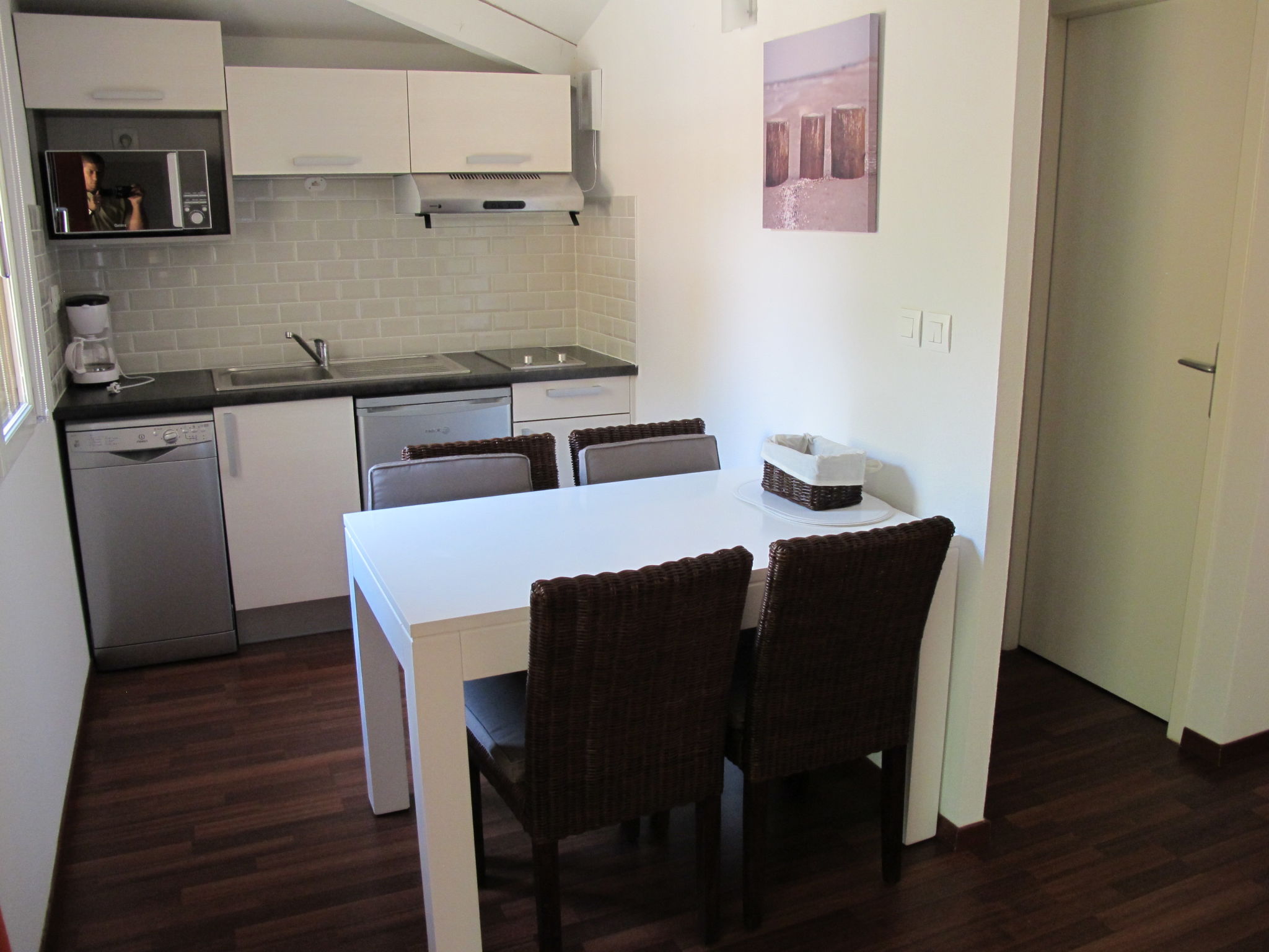 "Les Rives du Lac", Appartement de 2 pièces 37 m2. Logement idéal pour 2 adultes. Aménagement fonctionnel et moderne: séjour/chambre à coucher avec 1 divan-lit double (135 cm), table pour les repas et TV (satellite). 1 petite chambre avec 1 grand-lit (160 cm). Petite cuisine ouverte (lave-vaisselle, 2 plaques vitrocéramiques, grille-pain, bouilloire électrique, micro-ondes, cafetière électrique). Bain/WC. Chauffage électrique. Balcon ou terrasse. Meubles de terrasse, mobilier de balcon. A disposition: Internet (Connexion WIFI, en sus). Veuillez noter: logement non-fumeur. Maximum 1 animal/ chien autorisé. Détecteur de fumée. Les appartements sont situés au rez-de-chaussée ou à l'étage (accès par un escalier extérieur).
