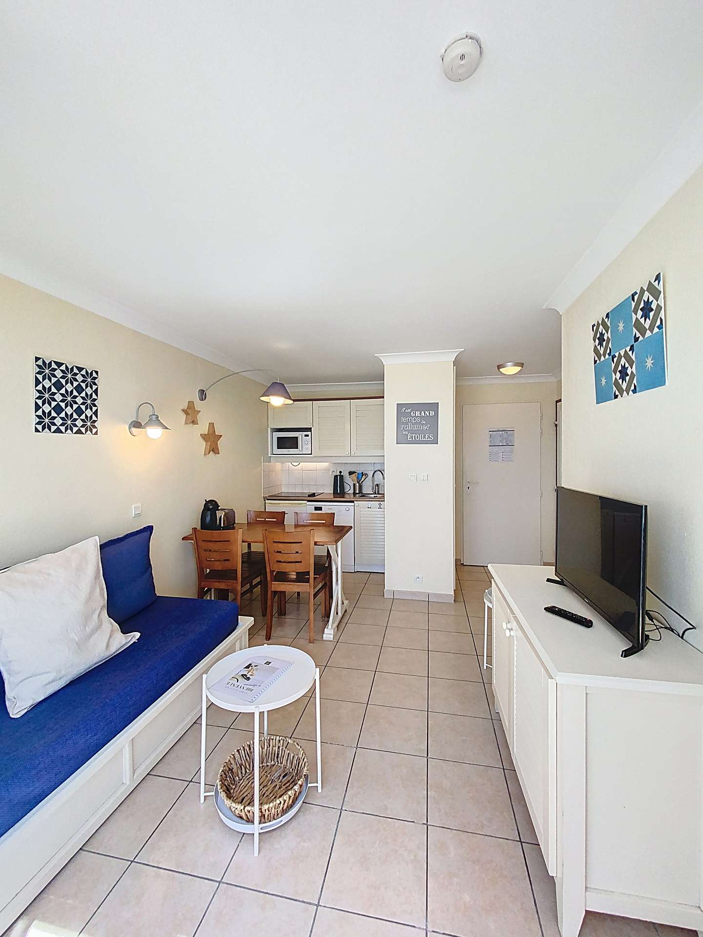 Résidence "Bleu Marine" face Océan, secteur sud de Lacanau, exposé ouest, agréable appartement, 24m², pour l'accueil de 4 personnes au sein d'une résidence de tourisme, calme, sécurisée, avec piscine (ouverte du 15 juin au 15 septembre) et laverie (aux horaires d'ouverture accueil et selon tarif en vigueur). Hébergement situé au second étage, avec ascenseur, d'un bâtiment de 3 étages. Bénéficiez d'un accès direct à la plage depuis la résidence. La pièce à vivre, avec kitchenette, est équipée d'une banquette gigogne (80 +70 cm ou couchage 150 cm au choix), elle ouvre sur un balcon avec mobilier de jardin. La chambre est équipée d'un lit double, les sanitaires d'une baignoire avec vasque et WC indépendants. Un parking gratuit est accessible au pied de la résidence. Votre animal de compagnie est bienvenu. Rejoignez la plage à 50 m, les commerces, restaurants, glaciers à 500 m, le golf à 2 km et le lac à 5 km -(REF 01395)