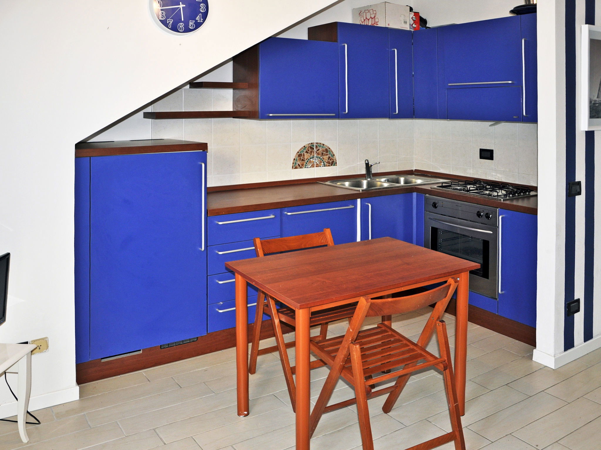 Studio 40 m2, au rez-de-chaussée. Aménagement moderne: séjour/chambre à coucher avec 1 lit, 1 divan-lit double, 1 lit gigogne, table pour les repas et TV (satellite). Sortie sur la terrasse. Cuisine ouverte (four, 4 feux). Douche/bidet/WC. Chauffage au gaz (en sus), air-conditionné (en sus). Petite terrasse, situation est, jardin, situation ouest, pelouse. Meubles de terrasse. A disposition: lave-linge. Internet (Connexion WIFI, gratuit). Place de parking (1 Voiture). Veuillez noter: logement non-fumeur. Maximum 1 animal/ chien de petite taille autorisé. La répartition des lits est flexible: Il y a plus de couchages que le nombre maximum de personnes admis dans la location. Ce nombre maximum doit néanmoins être respecté. IT023043B4JW8CZHPD