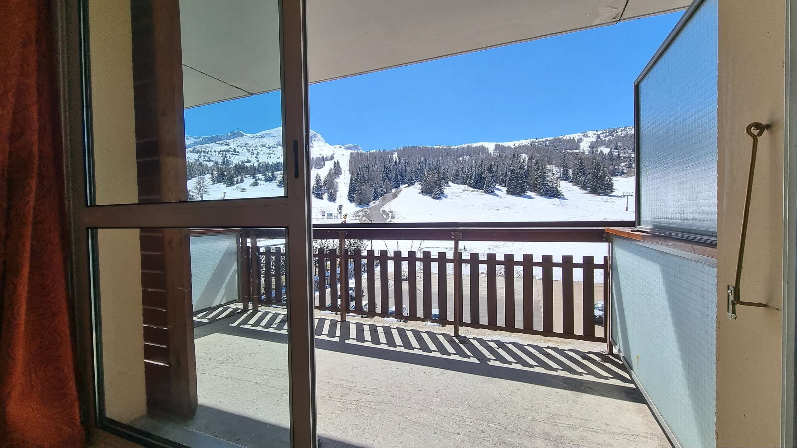 Il offre une jolie vue sur le front de neige ainsi que les pistes