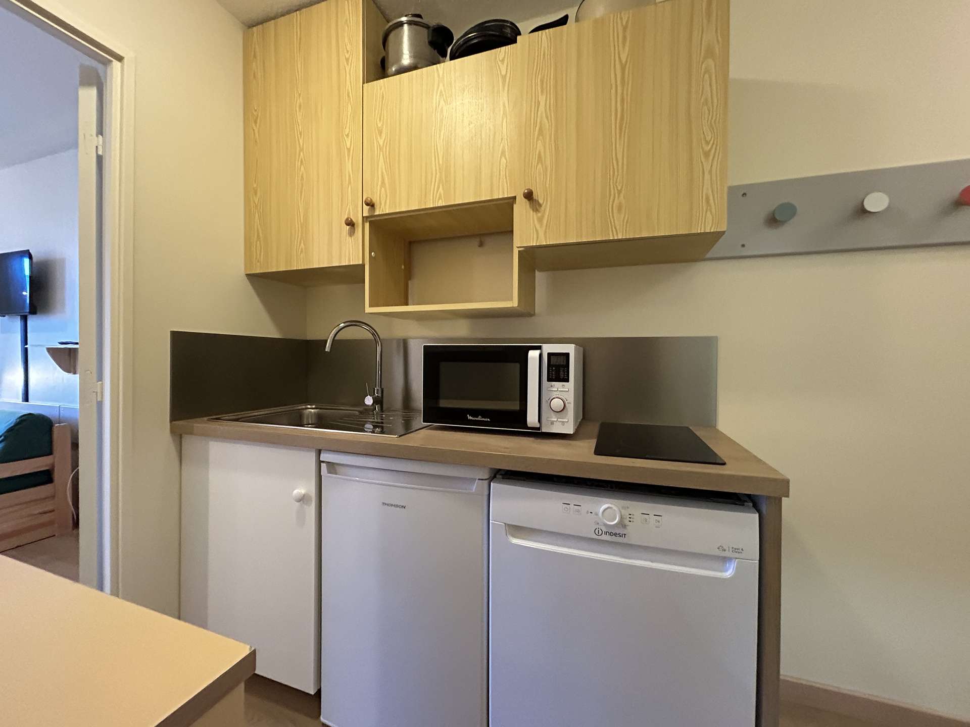 Il comprend une entrée, une chambre avec 2 lits simples, une cuisine séparée, équipée d'un four, de plaques électriques, d'une cafetière électrique, d'un lave vaisselle, ...
