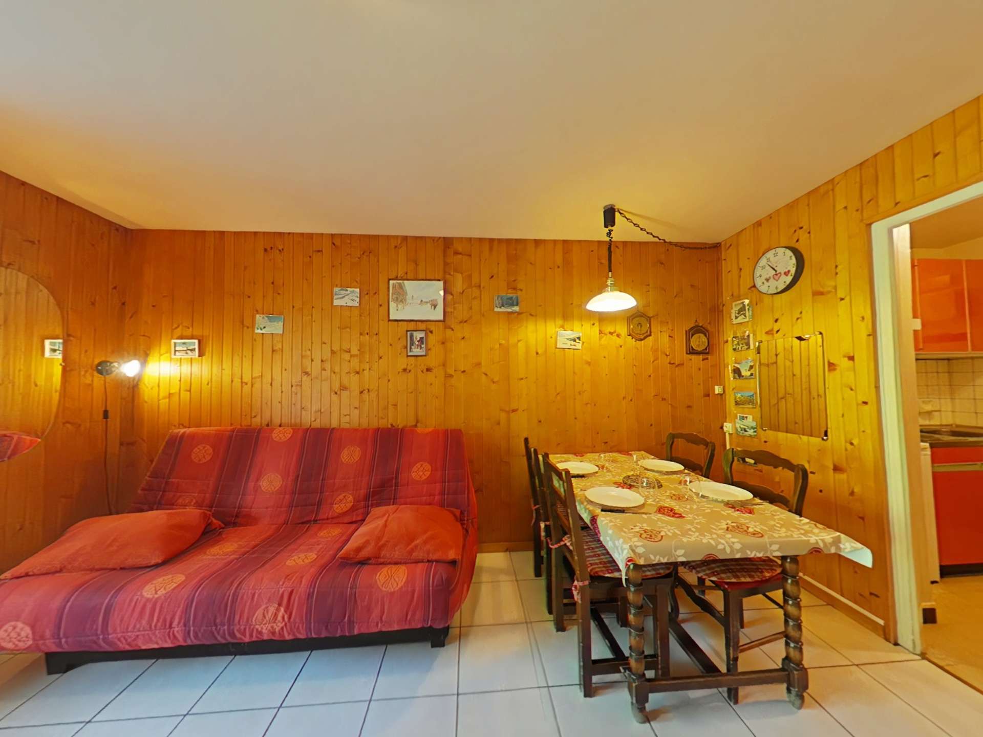 Cet appartement de vacances situé au rez de chaussée, comprend un séjour avec un canapé convertible pour 2 personnes et 2 lits superposés , une télévision, un coin cuisine équipé, une salle de bain avec WC. Un balcon sud avec vue sur le domaine skiable et un casier à ski. Parking de la résidence emplacement non défini devant la résidence et arrêts navettes à proximité.
