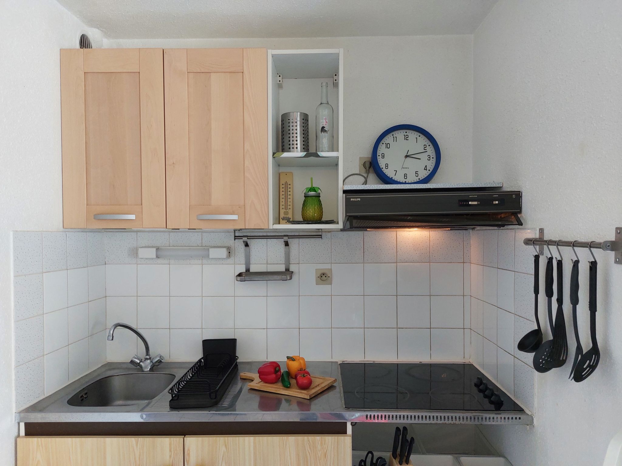 Appartement de 2 pièces 30 m2 au 2ème étage. Séjour/salle à manger avec 1 divan-lit (120 cm, longueur 180 cm), TV. 1 chambre avec 1 grand-lit (140 cm, longueur 190 cm). Cabine avec 1 lit (90 cm, longueur 190 cm). Coin cuisine (mini-four, four, 4 plaques vitrocéramiques, micro-ondes, congélateur, cafetière électrique). Salle de bains, WC séparé. Chauffage électrique. Situation ouest. Loggia. Vue sur la piscine. A disposition: Internet (Connexion WIFI, en sus). Garage à 30 m. Veuillez noter: maximum 1 animal/ chien autorisé. Détecteur de fumée. Au lieu d'une chambre fermée, des espaces de couchage sont situés dans une zone ouverte (galerie, alcôve...). 301330013870B