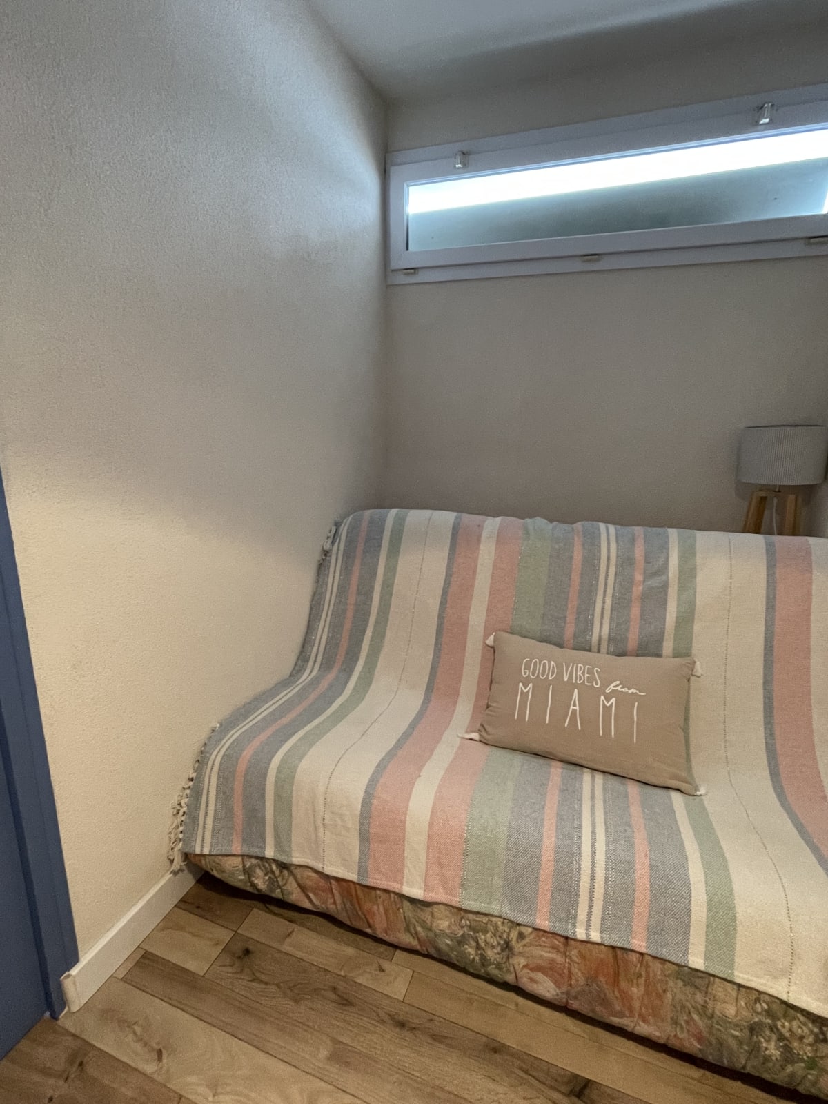 L’appartement Le Flamant est situé au 2ᵉ et dernier étage (sans ascenseur) d’une résidence calme et sécurisée. Il dispose de deux chambres accueillantes :